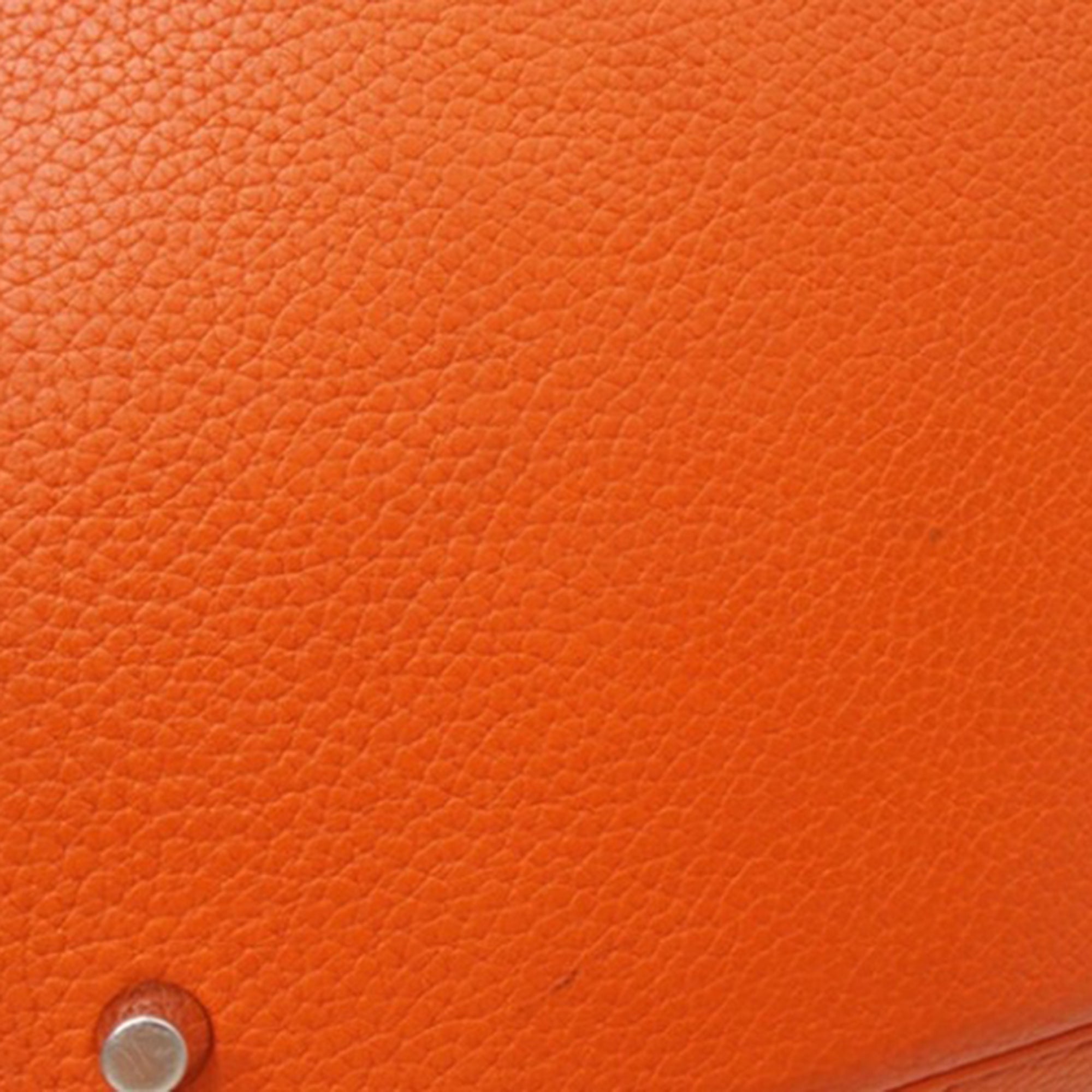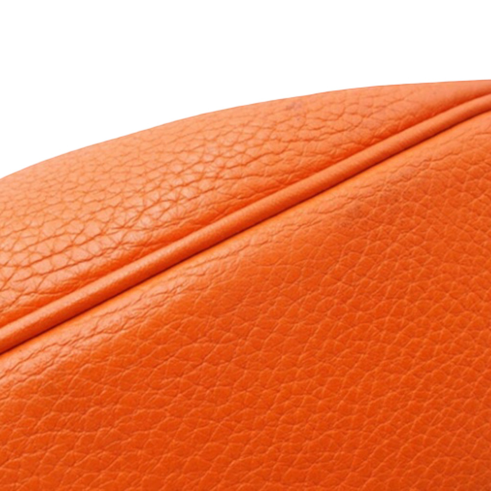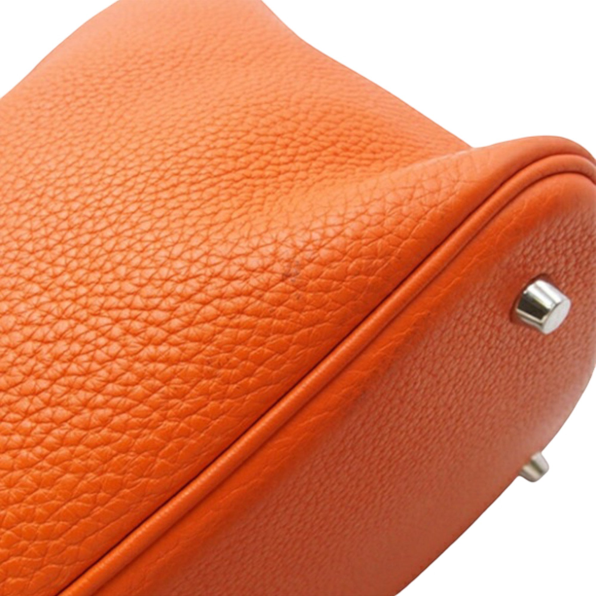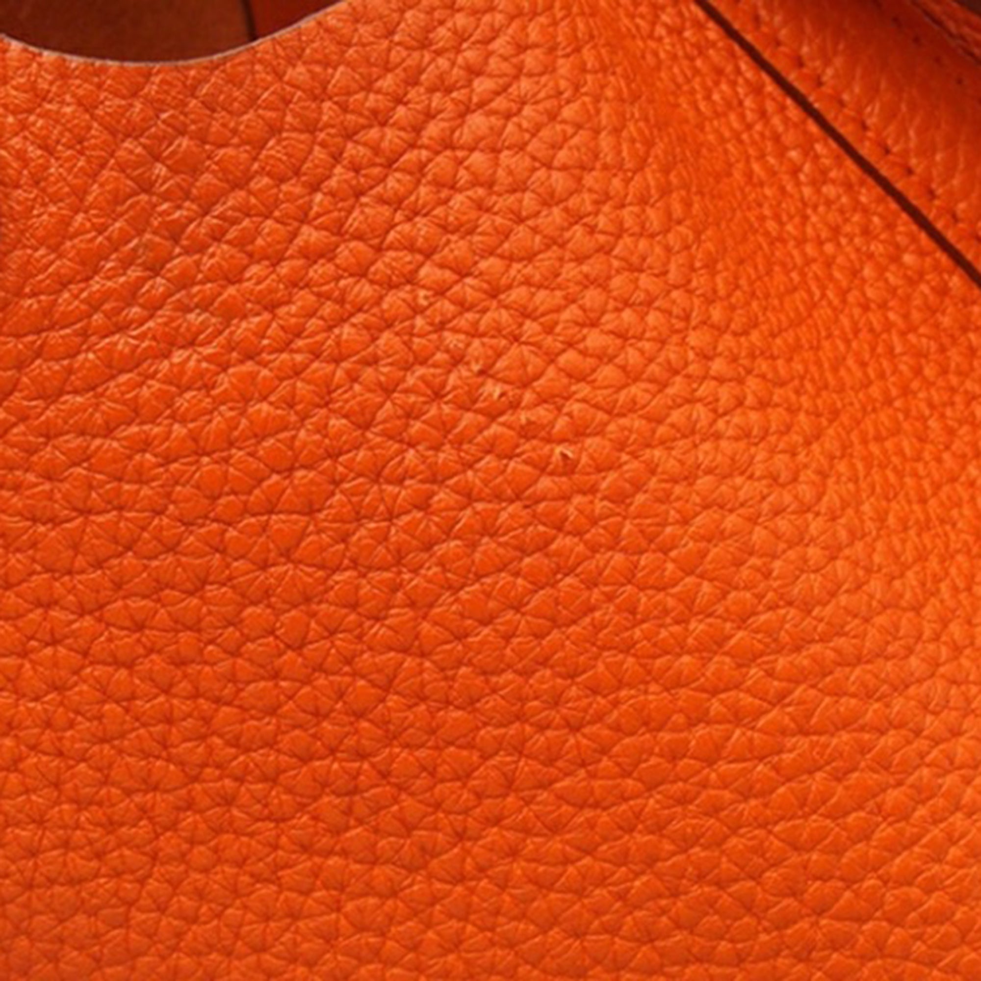 This Picotin 22 features a Clemence leather body in Orange color, flat leather handles, and an open top with a pull through strap and lock closure. Retail Price: 6000.00
