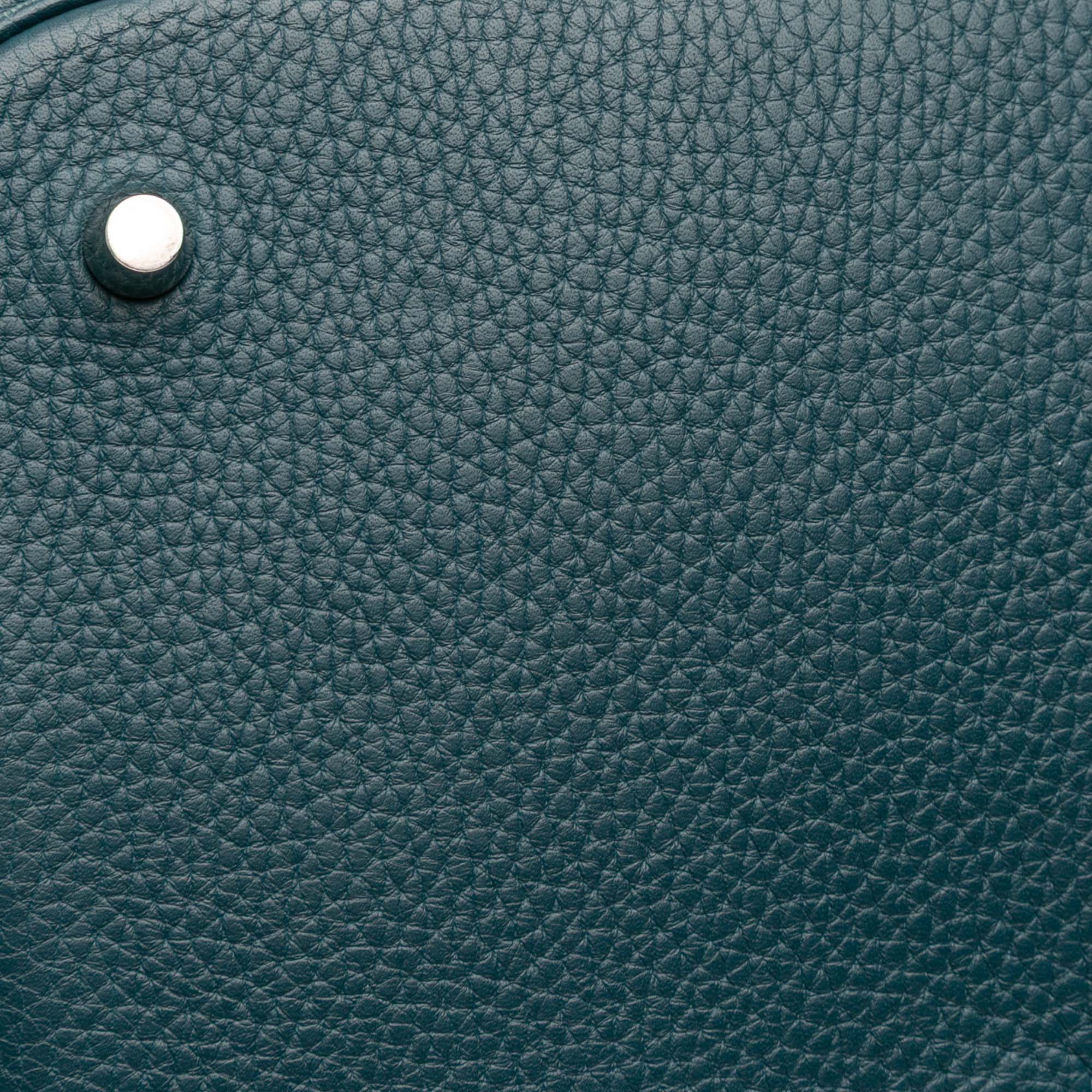 This Picotin 26 features a Clemence leather body in Vert Cypress color, flat handles, and an open top with a flat strap and buckle closure. Retail Price: 3025.00