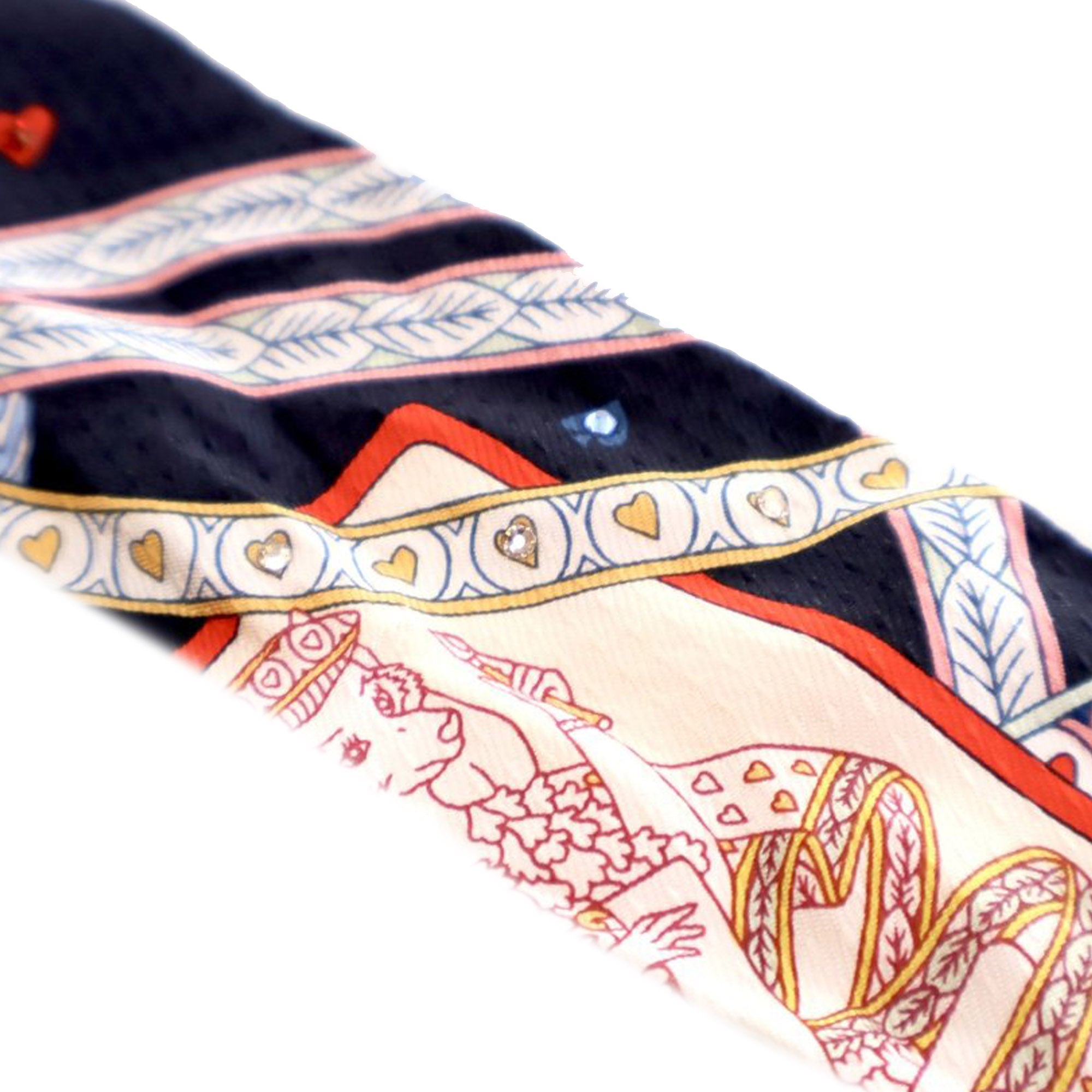 This twilly scarf features a Dame De Coeur print in 100% silk. Inclusion: box. Retail Price: 700.00
