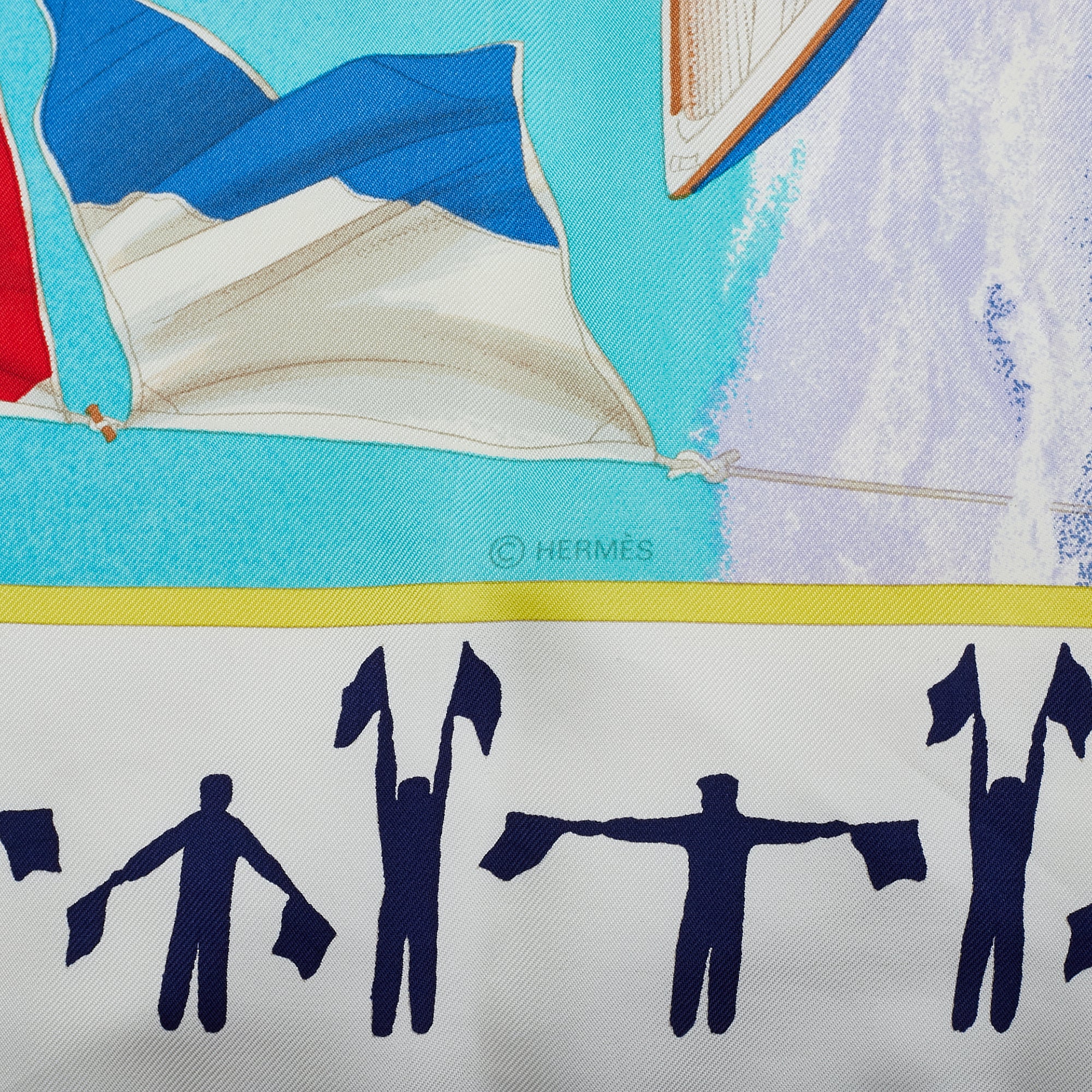 The En Course scarf features a print on 100% silk. Retail Price: 450.00