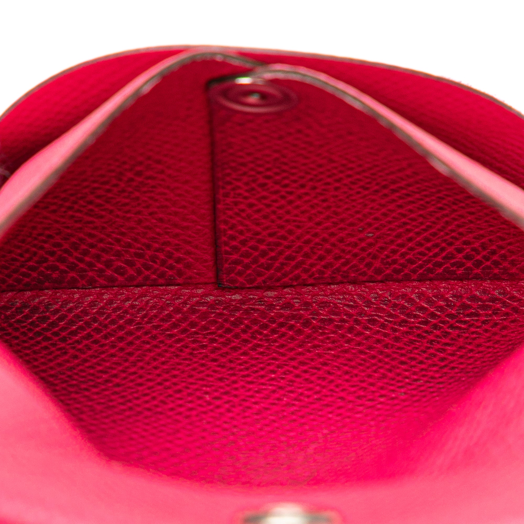 This coin pouch features an Epsom leather body in Rose Shocking color, and a snap button closure. Inclusion: box. Retail Price: 470.00