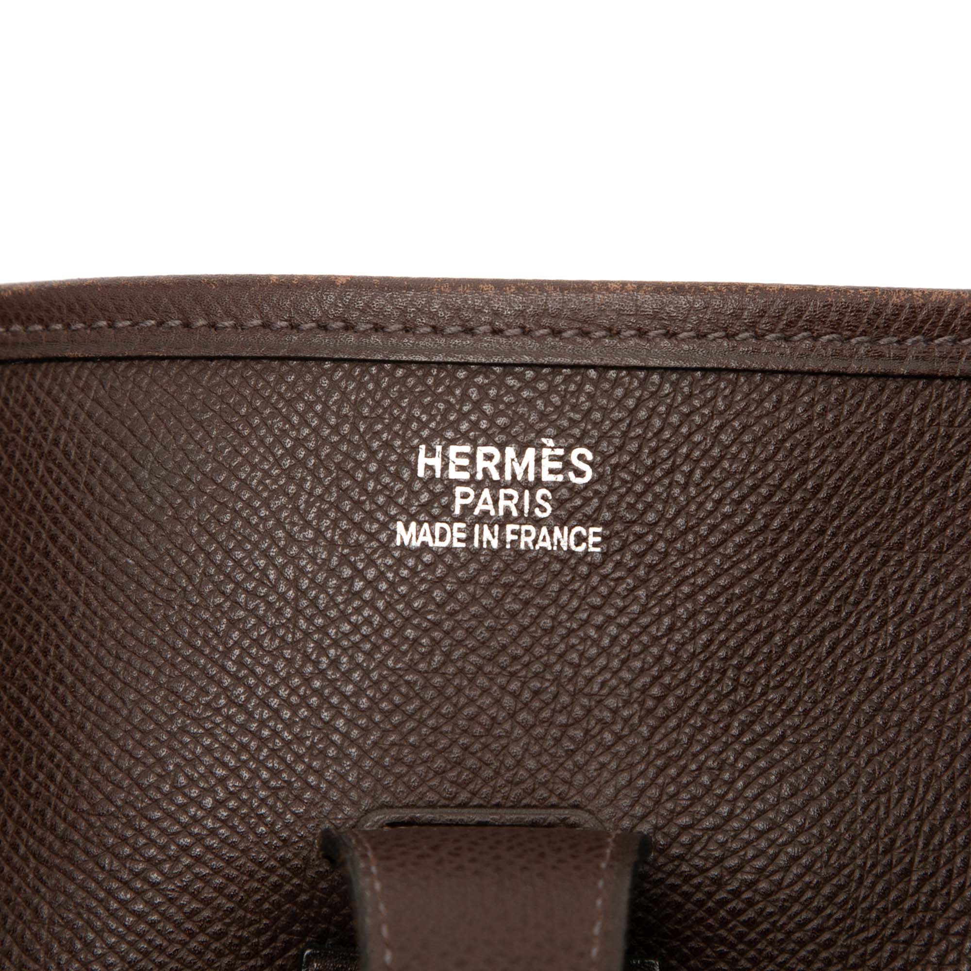 This Evelyne II GM features an Epsom leather body in Ebene color, a back exterior slip pocket, a flat strap, and an open top with a flat strap closure. Inclusion: Dust bag. Retail Price: 3000.00