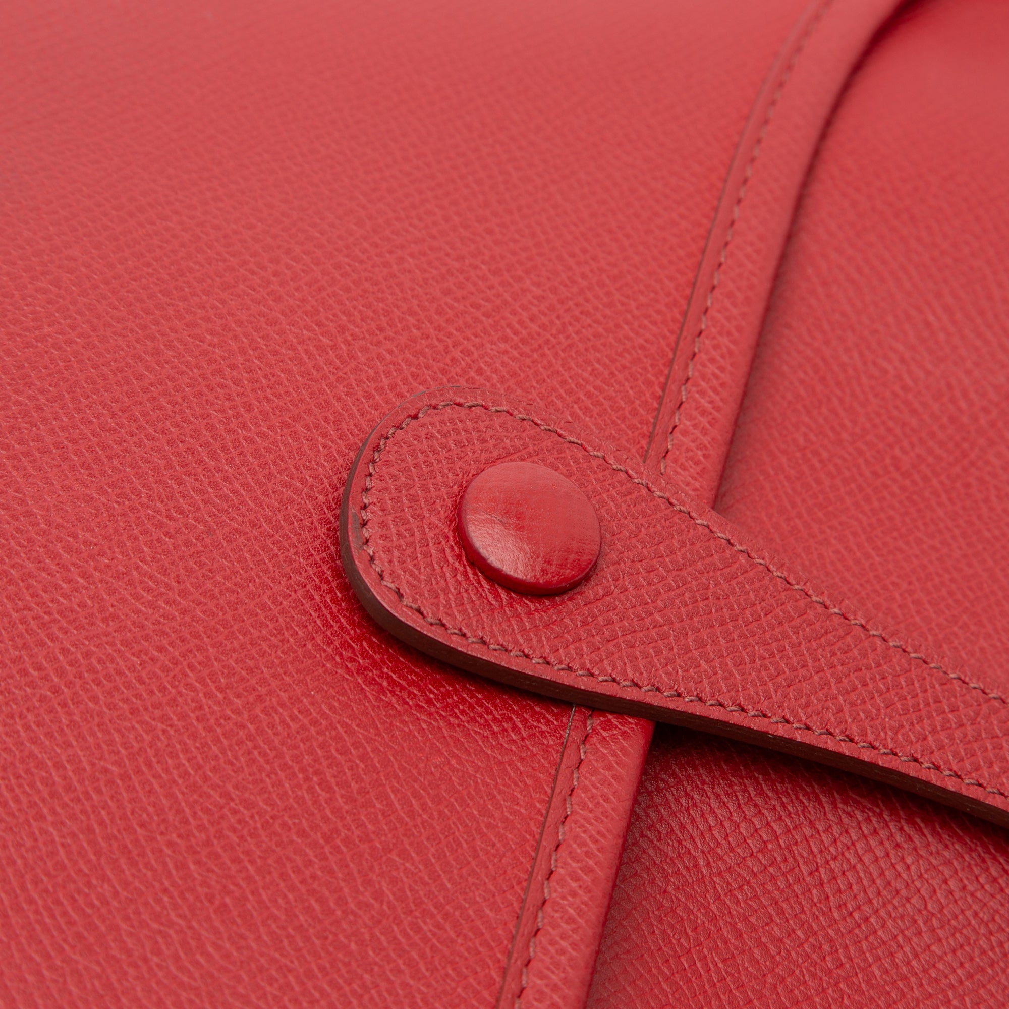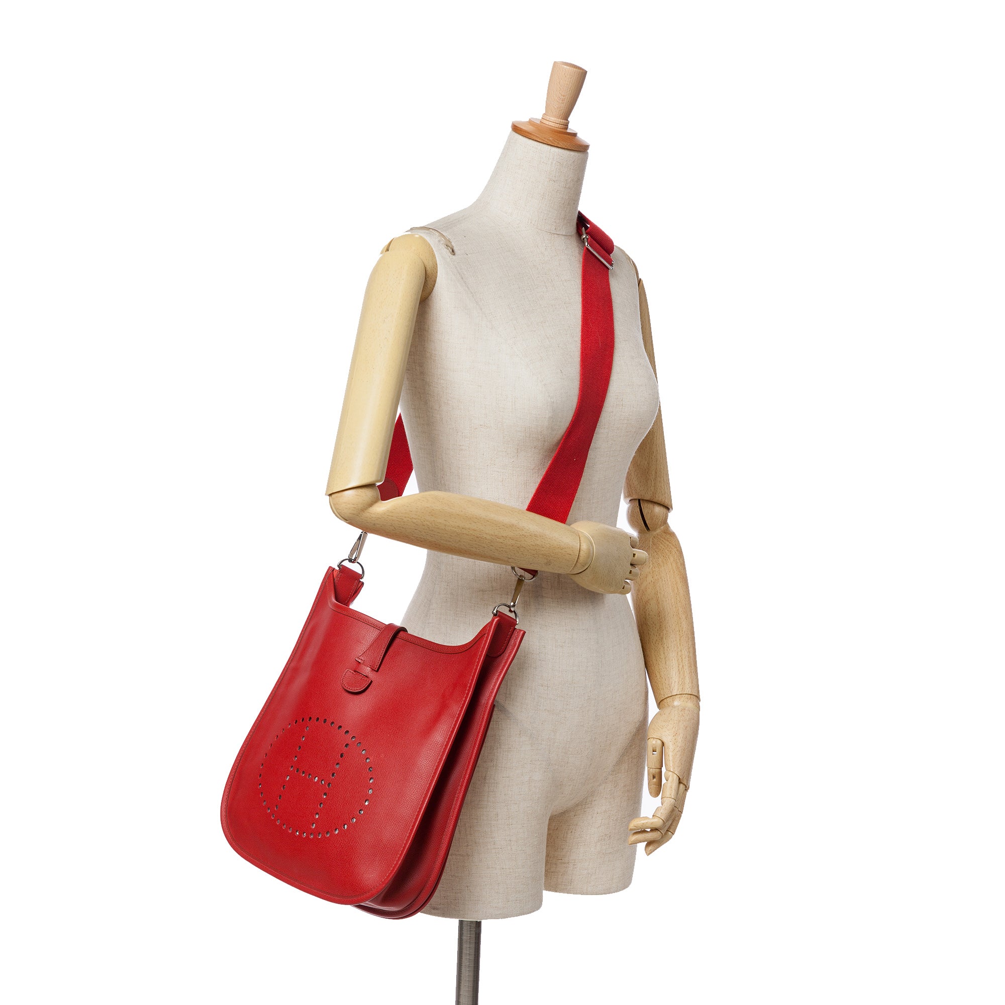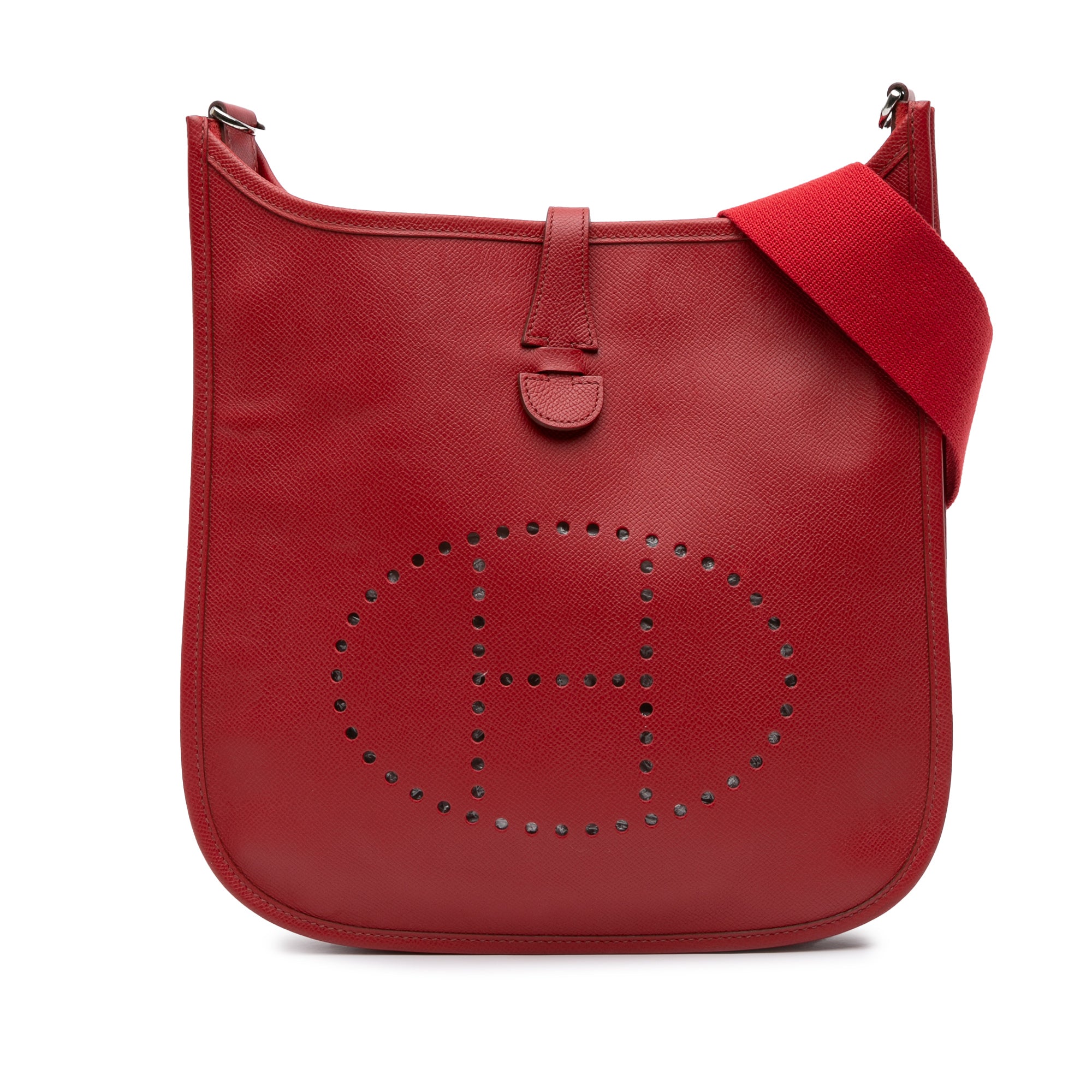 The Evelyne III features a leather body, an adjustable and detachable flat canvas strap, a top flap tab closure, and an exterior back slip compartment. Retail Price: 3650.00
