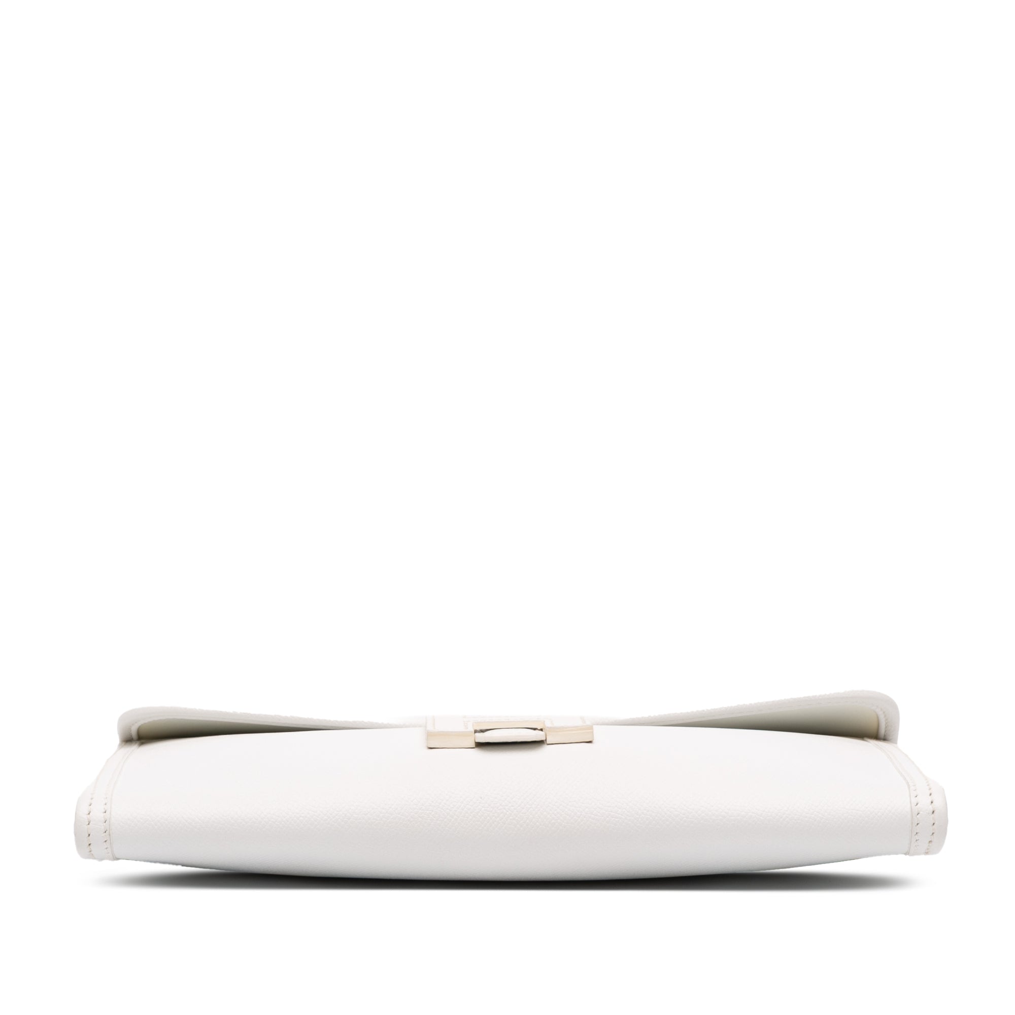 This Jige Elan features an Epsom leather body in White color, and a front flap with a pull through closure. Retail Price: 3675.00