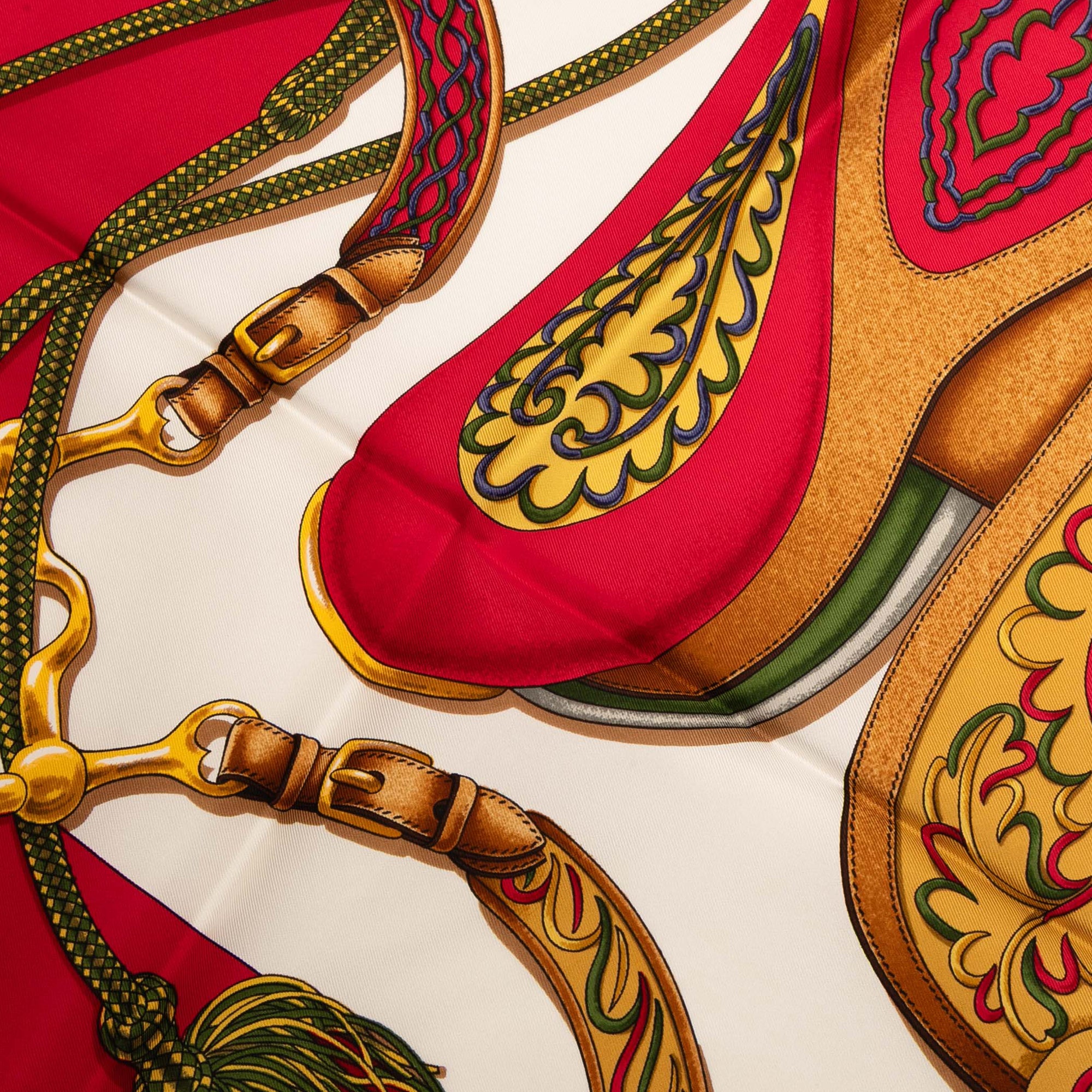 This scarf features a Festival des Amazones print on 100% silk. Inclusion: box. Retail Price: 1450.00
