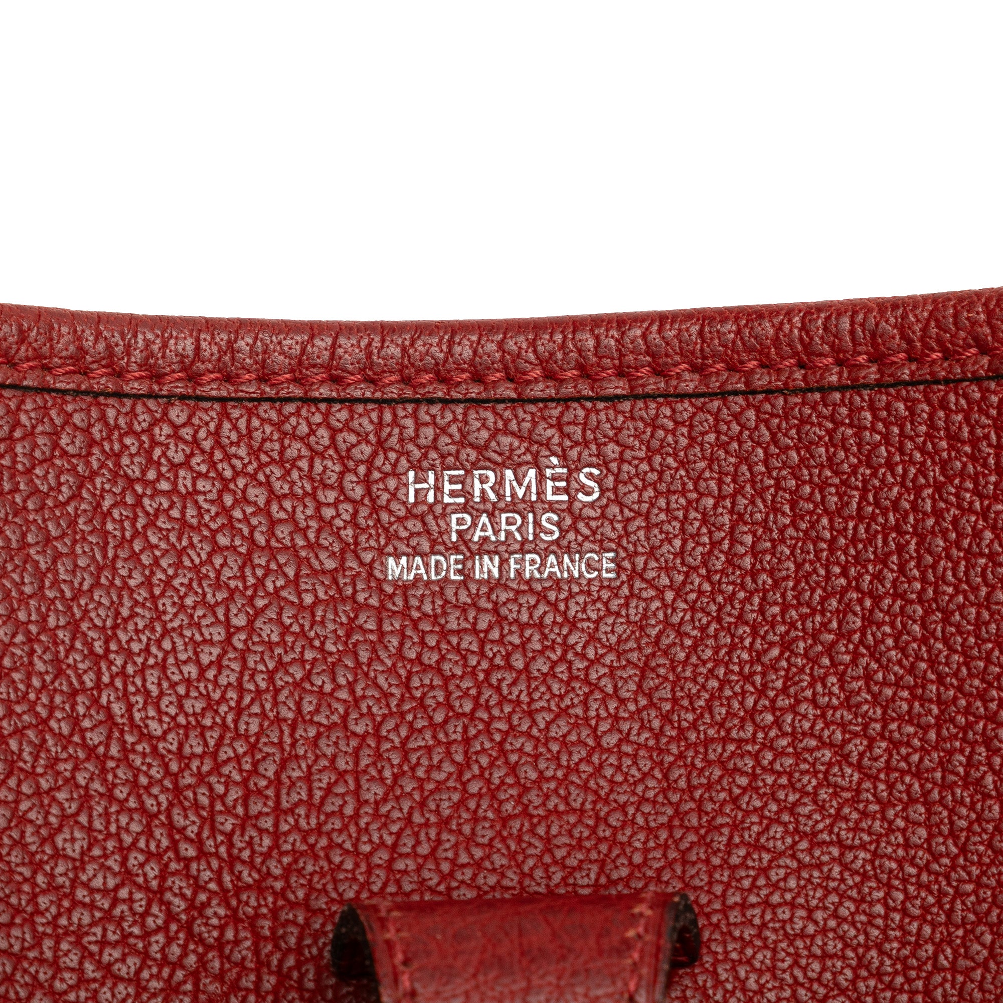 This Evelyne GM features a Fjord leather body in Rouge Vif color, a removable flat canvas strap, and an open top with a tuck closure. Inclusion: Dust bag, box. Retail Price: 3750.00