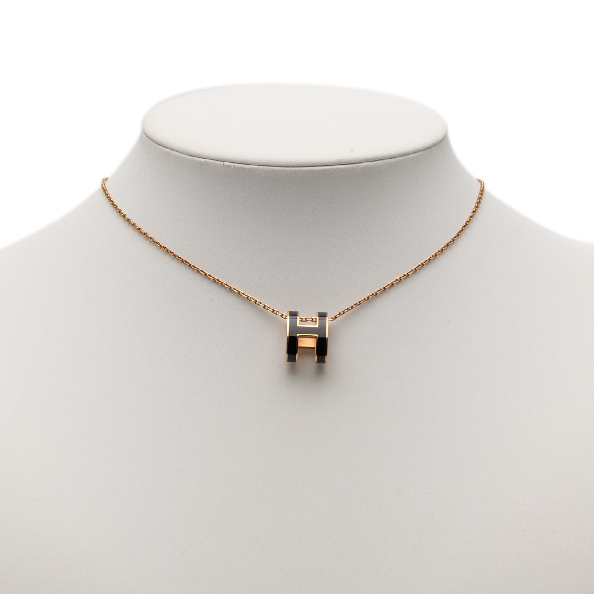 Hermès Gold Plated Enamel Pop H Pendant Necklace