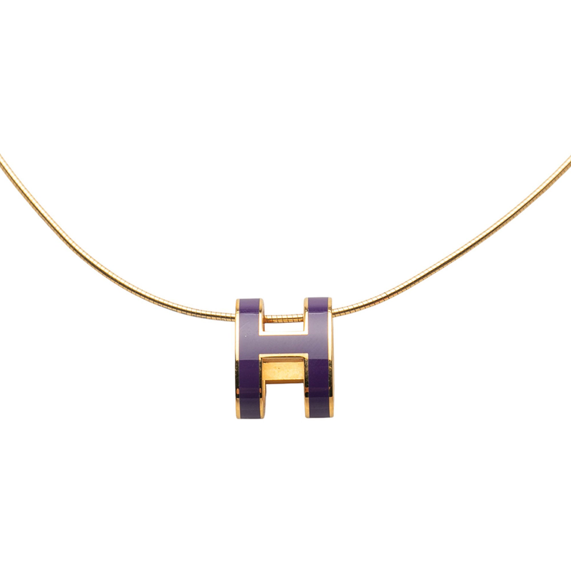 Hermès Gold Plated Enamel Pop H Pendant Necklace