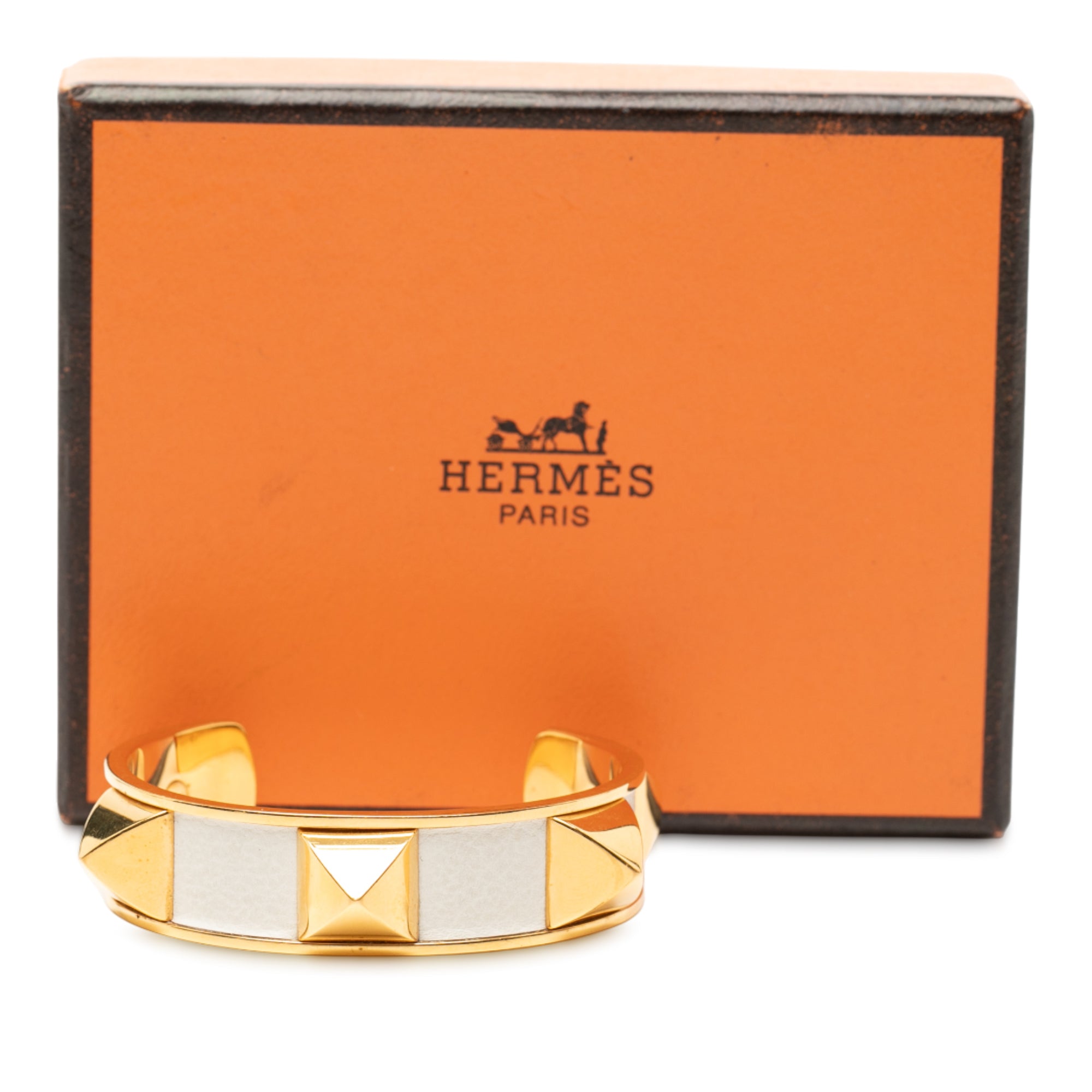 This bracelet features a gold-tone metal and leather body. Inclusion: box. Retail Price: 750.00