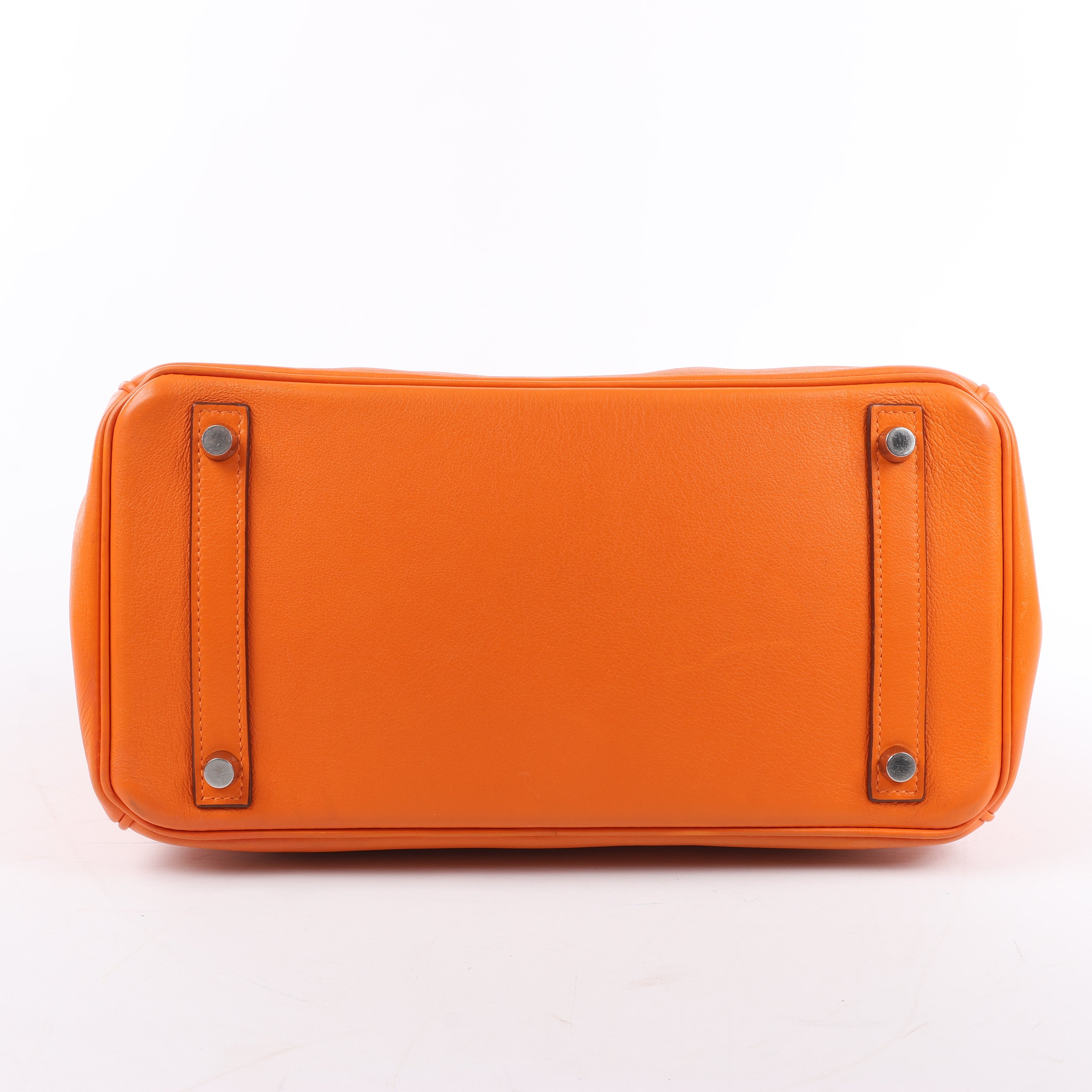 Hermès Birkin 30 in vibrant Veau Swift orange with silver hardware, year □J (2006). A timeless symbol of luxury with impeccable craftsmanship and bold elegance—perfect for collectors and connoisseurs alike.
