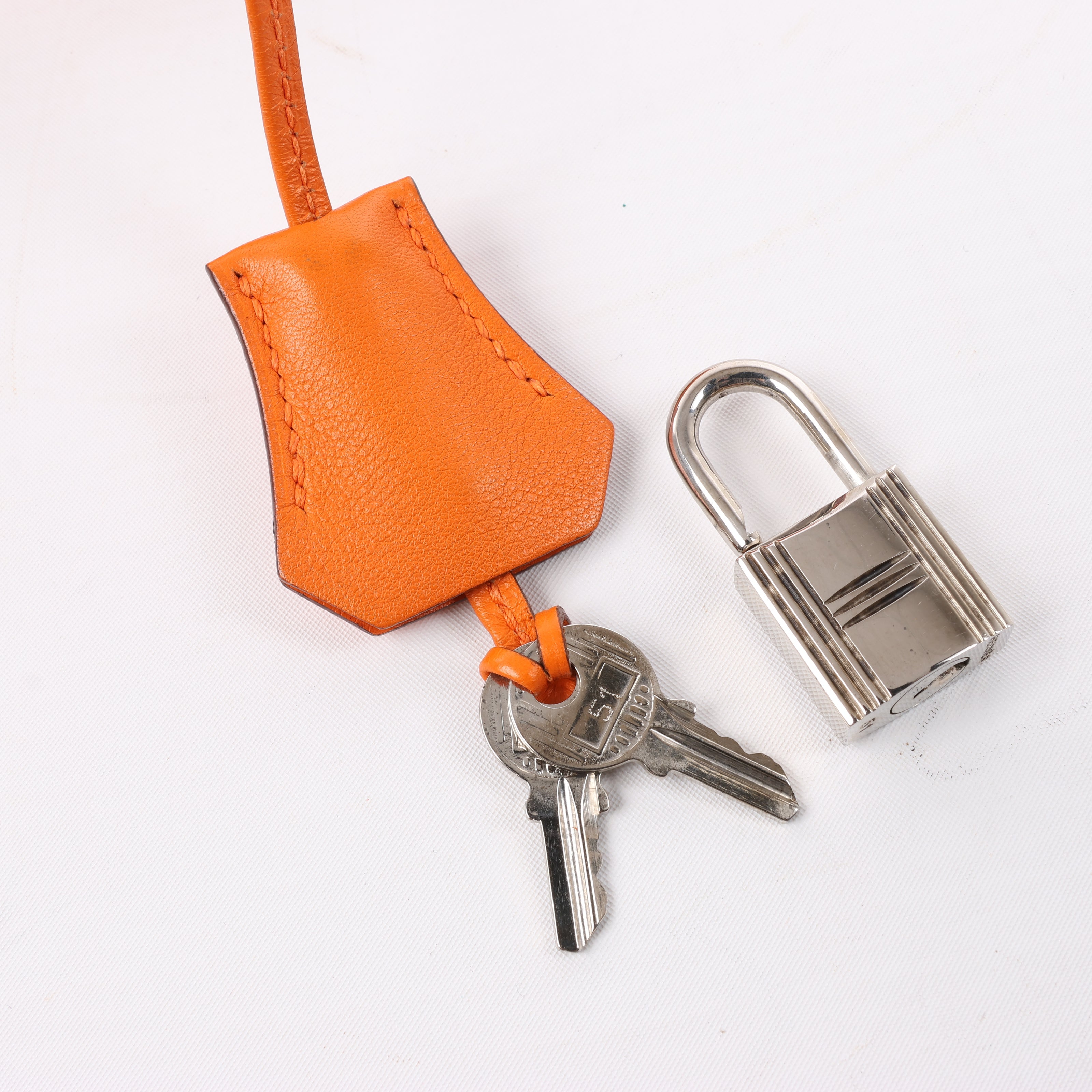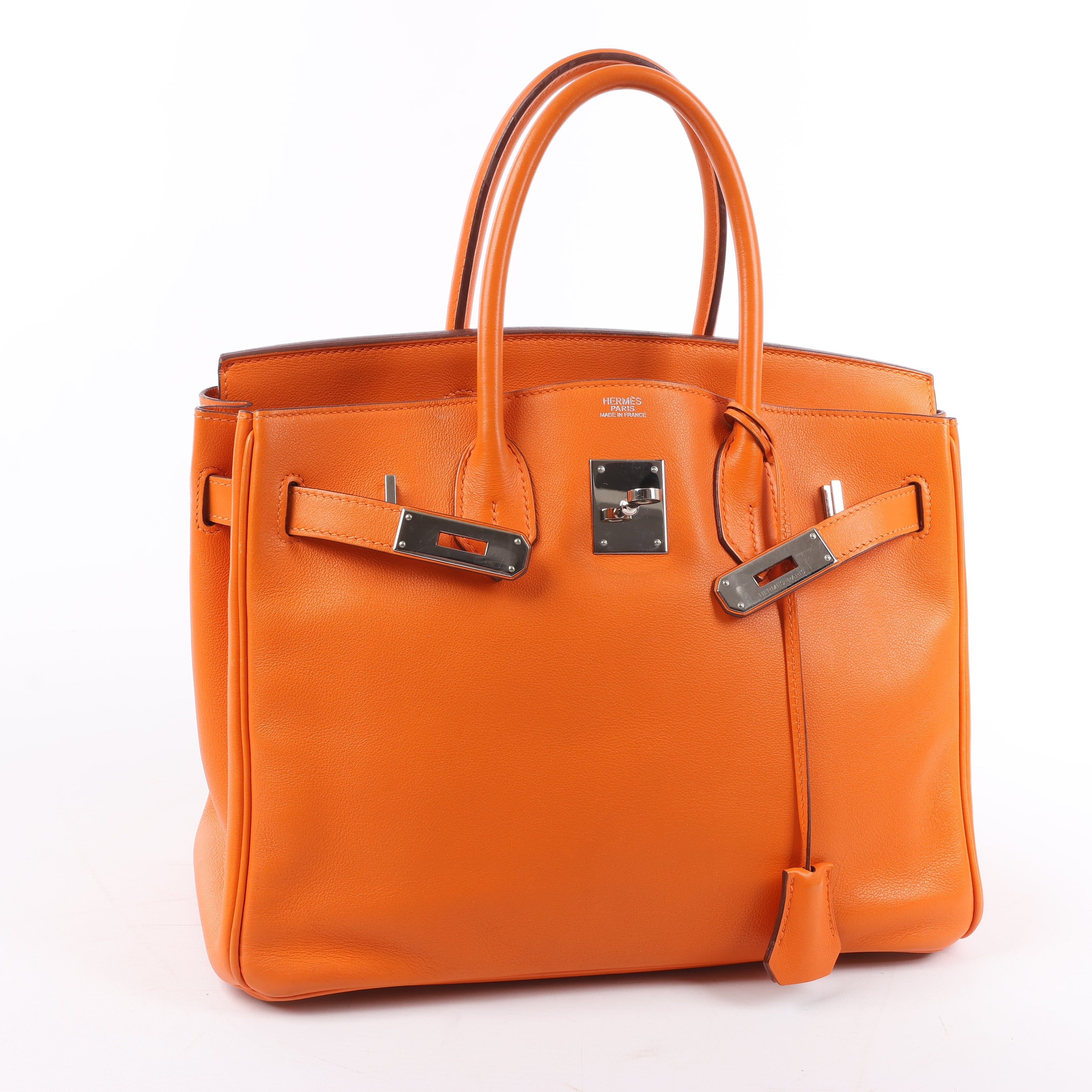 Brand: HERMES Model: Birkin 30Size: 30Width: 30 cm Height: 21 cmExterior Condition: Excellent Interior Condition: ExcellentCondition Details: The exterior leather is clean and beautiful, has light creases, but overall is in excellent condition. The hardware is bright and crisp with seamless surface scratches. The handles are in great condition. The interior is in great condition with some scratches. Overall this Birkin has been gently carried and is still in excellent condition. □J: 2006Colour: OrangeInterior Colour: OrangeHardware Colour: SilverMaterial: LeatherComes With: Padlock with keys, Entrupy certificate