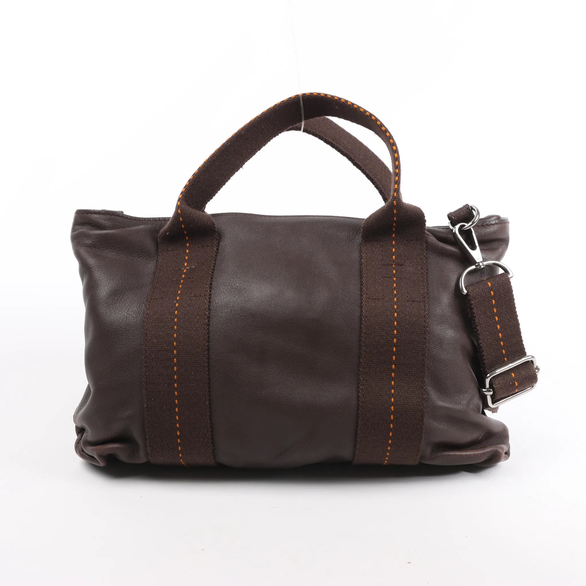 Hermes Hermes Caravan Horizontal PM Veau Derma Chocolat Silver Metal Fittings 2Way Handbag