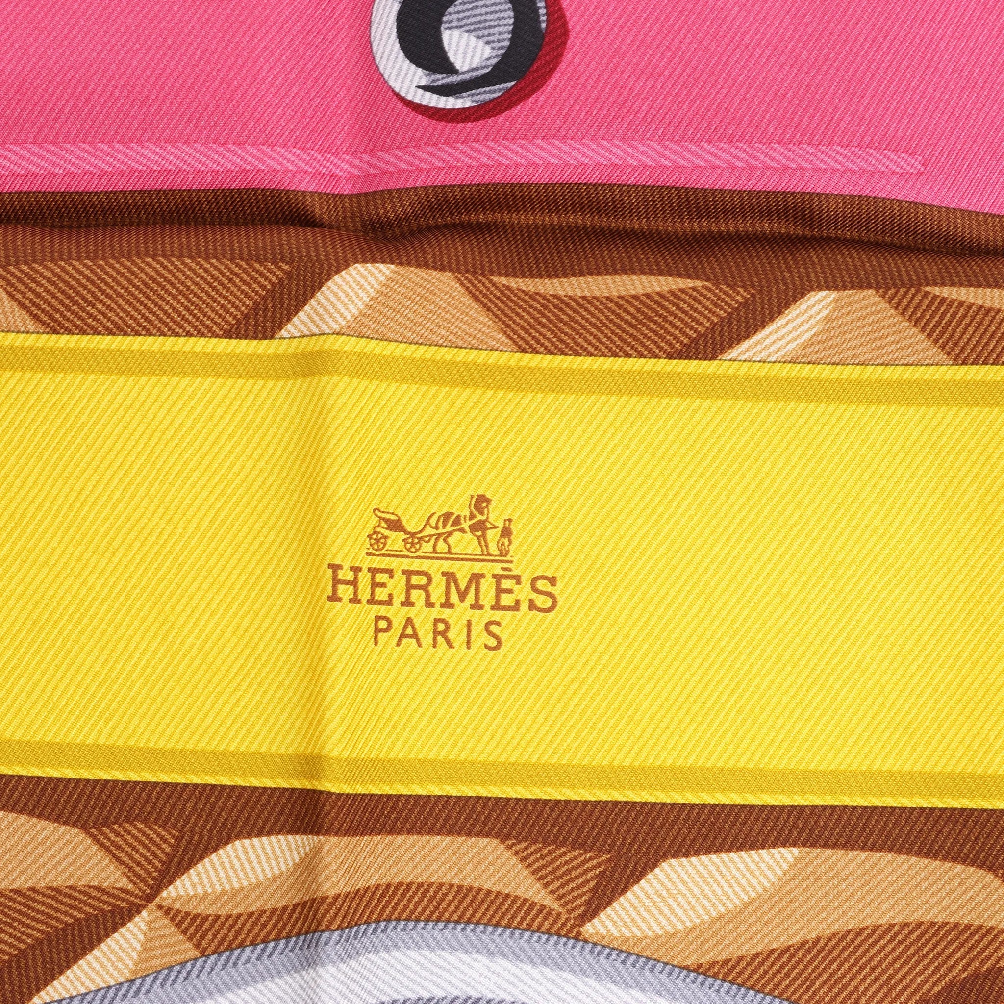 Brand: HermesModel: Carre 90Size: 90x90 cm Condition: Never worn with tagCondition Details: -Main Colour: OrangeColours: Yellow, Brown, Yellow, PinkMain material: SilkManufactured In: FranceComes With: Brand tag