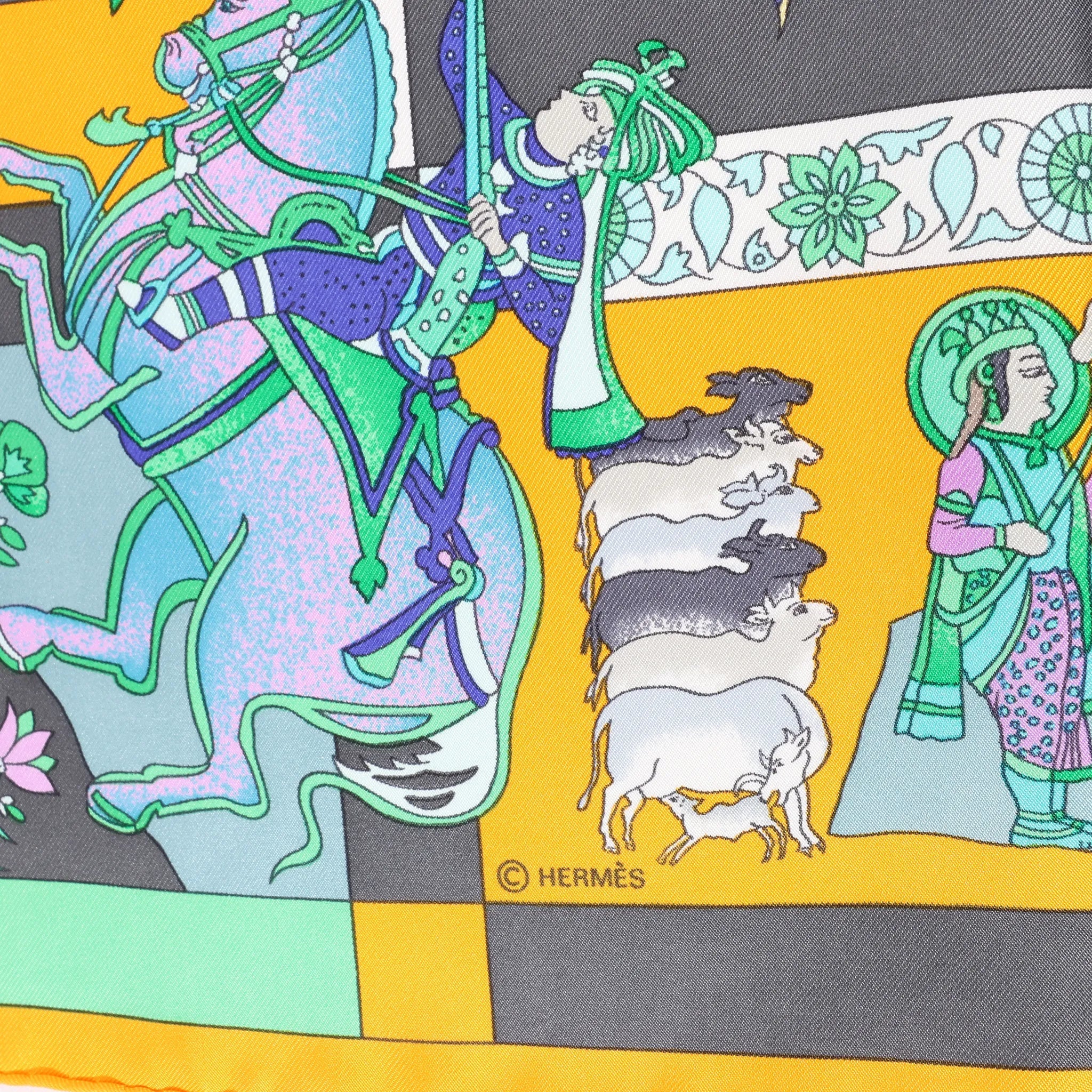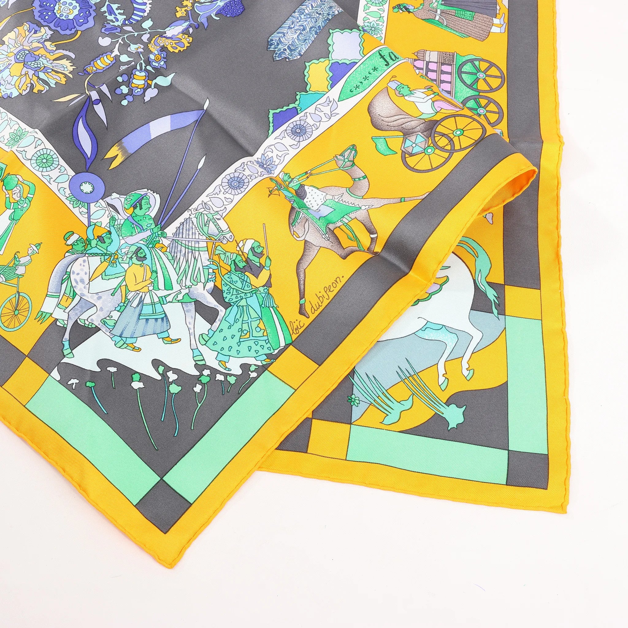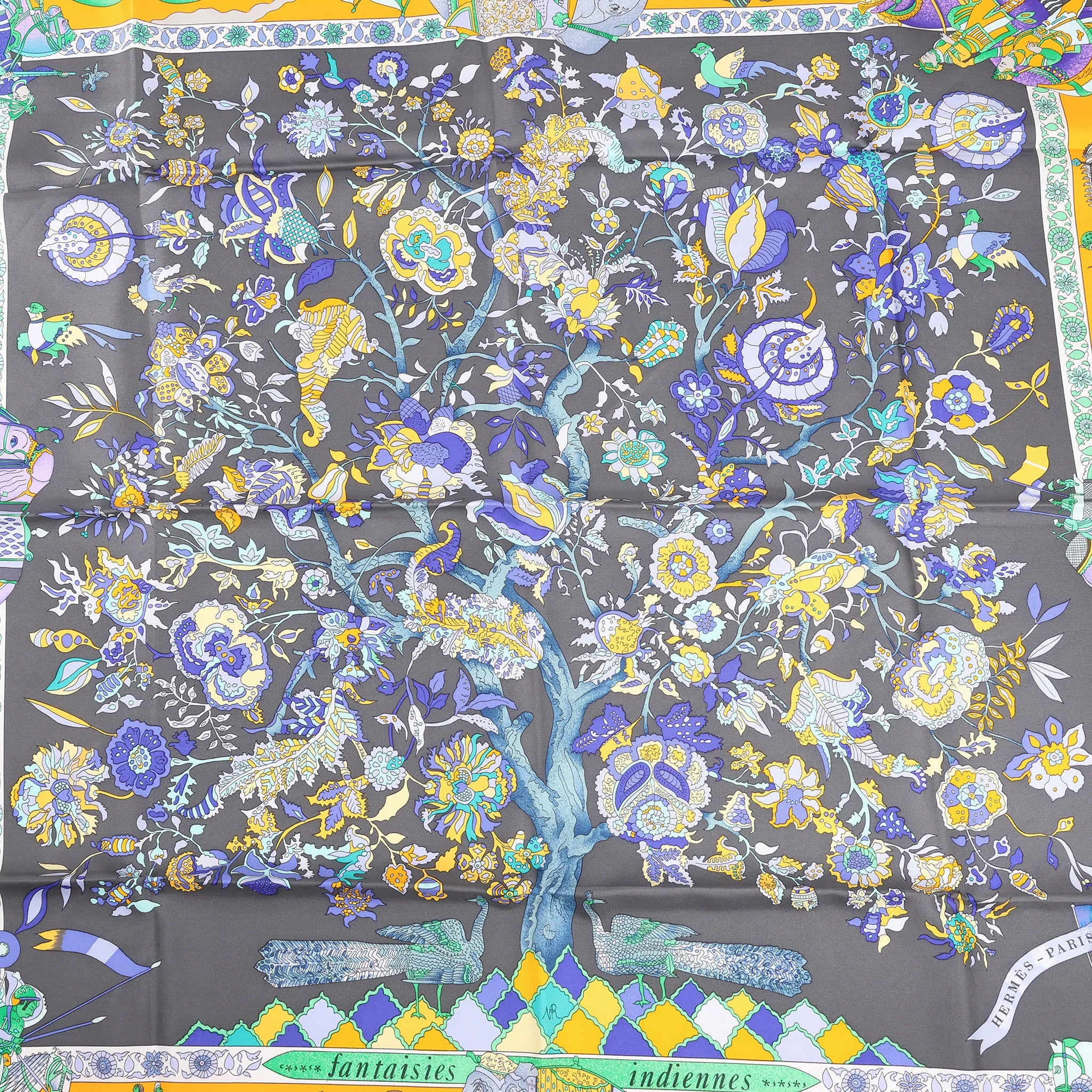 Hermes Hermès Carré 90 "Fantaisies Indiennes" Silk handkerchief in Navy Blue x Yellow
