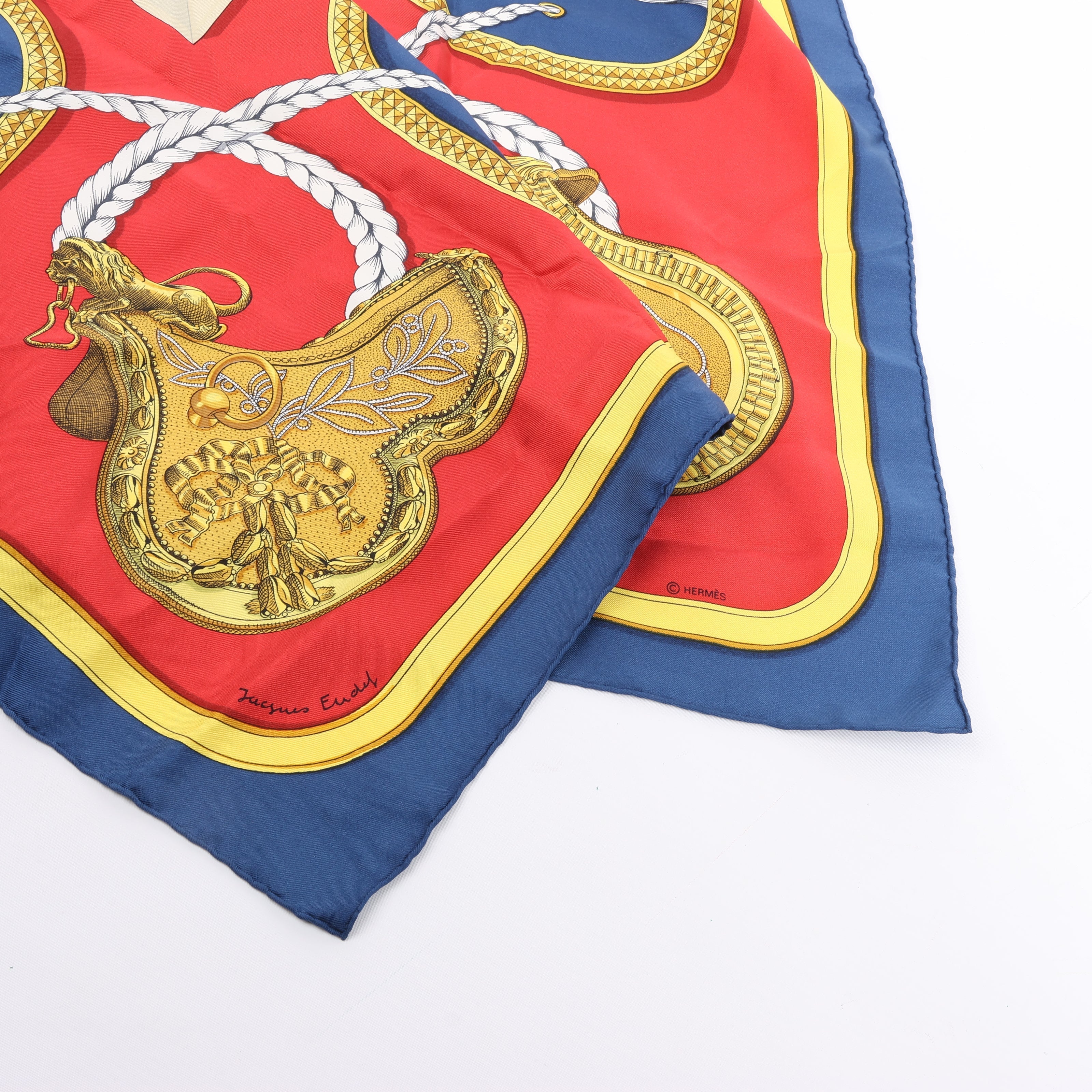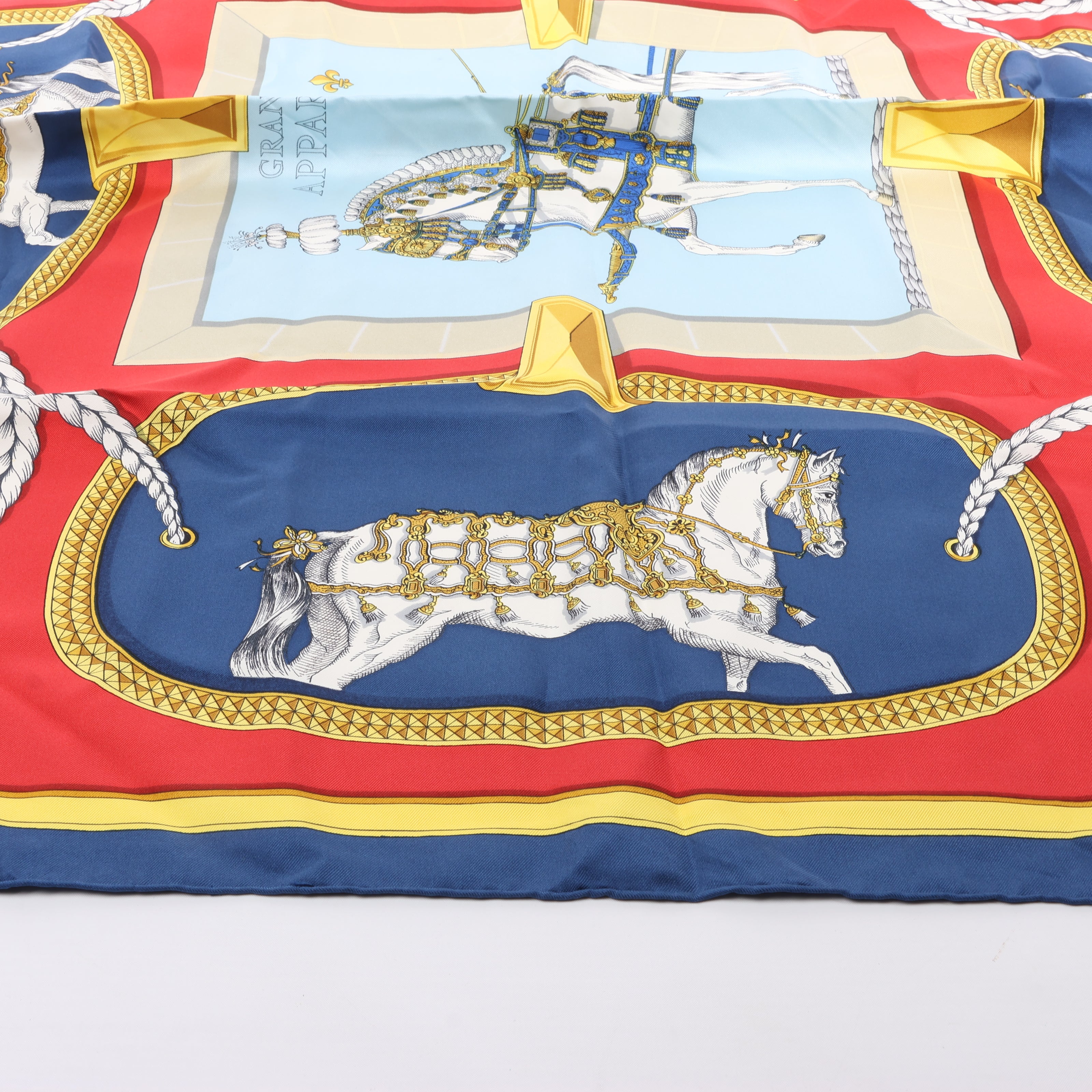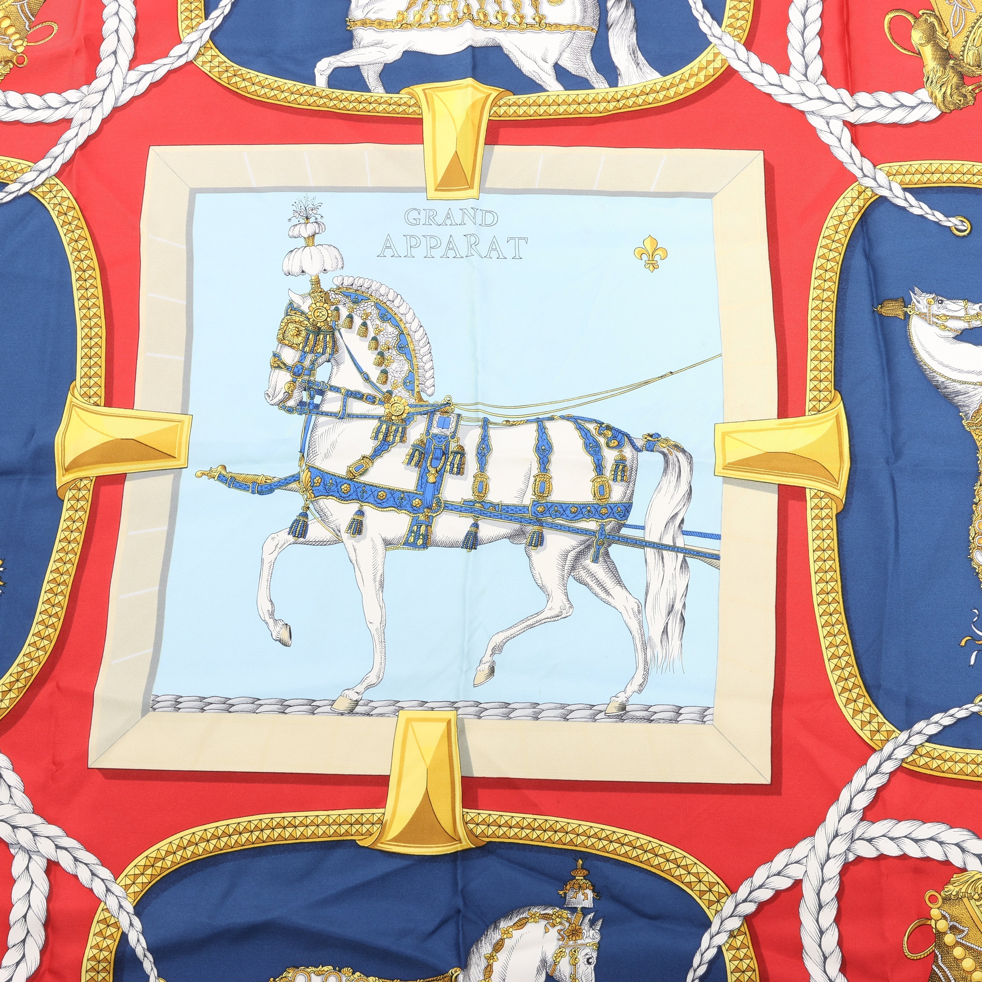 Hermes Hermès Carré 90 "GRAND APPARAT" 100% Silk Scarf in Navy x Red