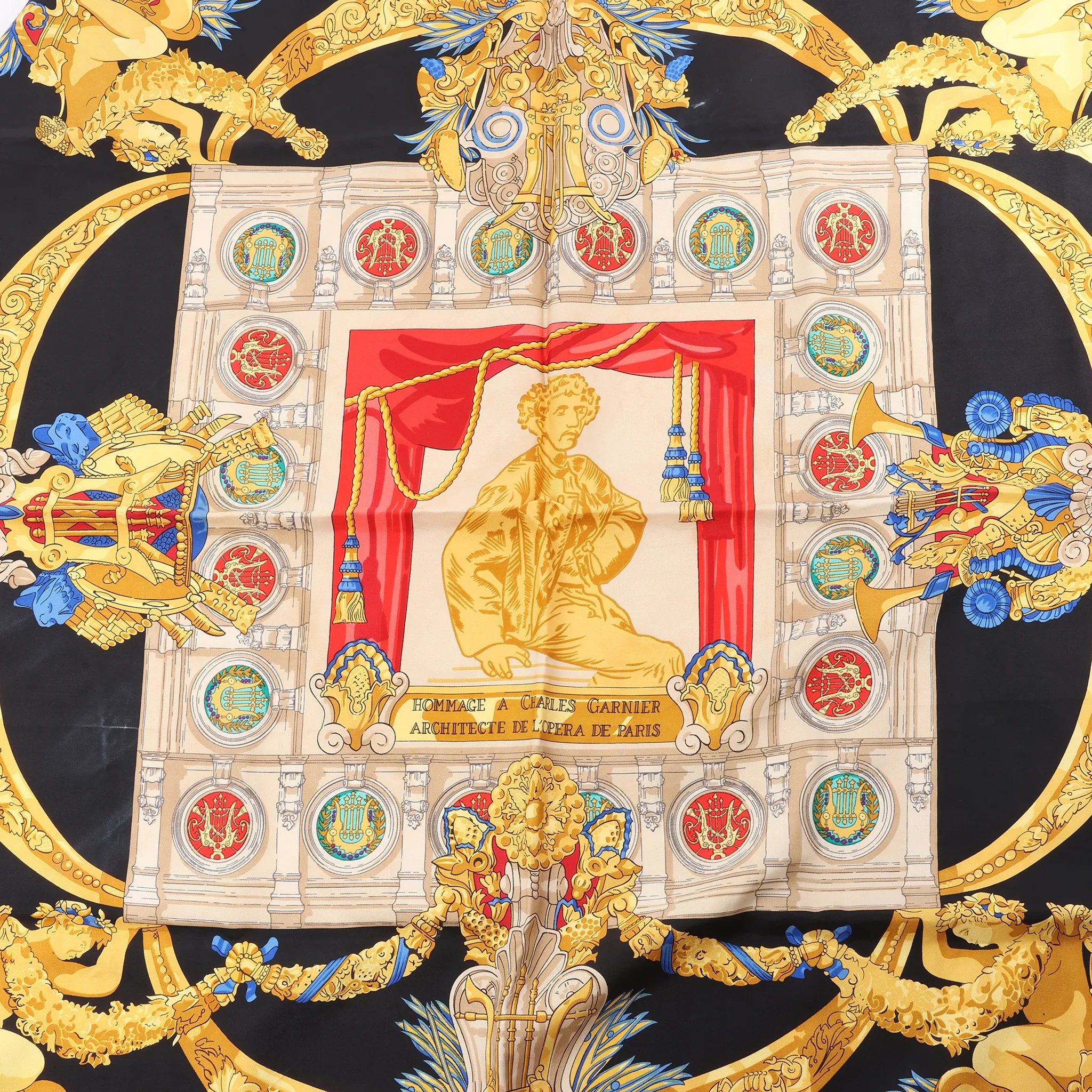 Hermes Hermès Carré 90 "HOMMAGE A CHARLES GARNIER" Silk handkerchief in Black