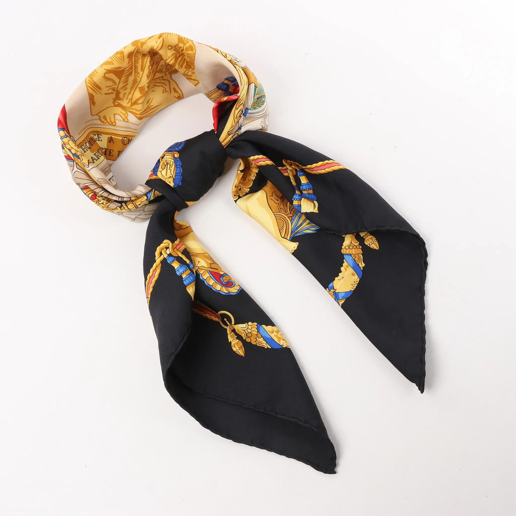 Brand: HermesModel: Carre 90Size: 90x90 cm Condition: ExcellentCondition Details: Gently worn - please see photos for details.Main Colour: BlackColours: Gold, Red, BeigeMain material: SilkManufactured In: FranceComes With: -