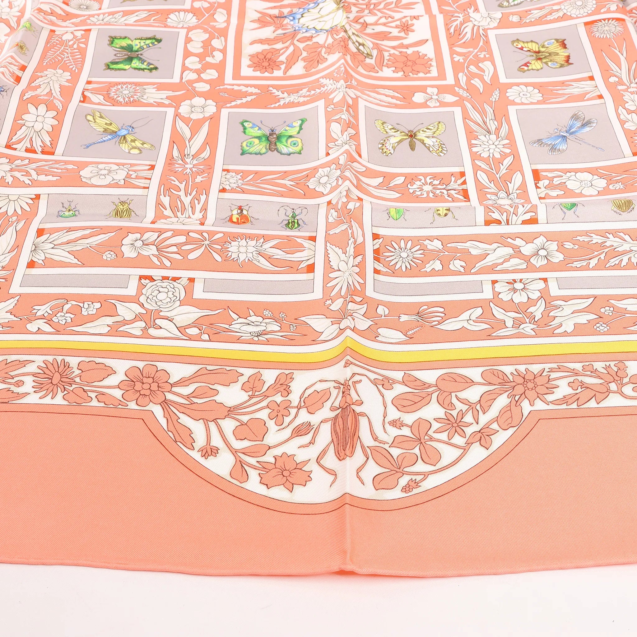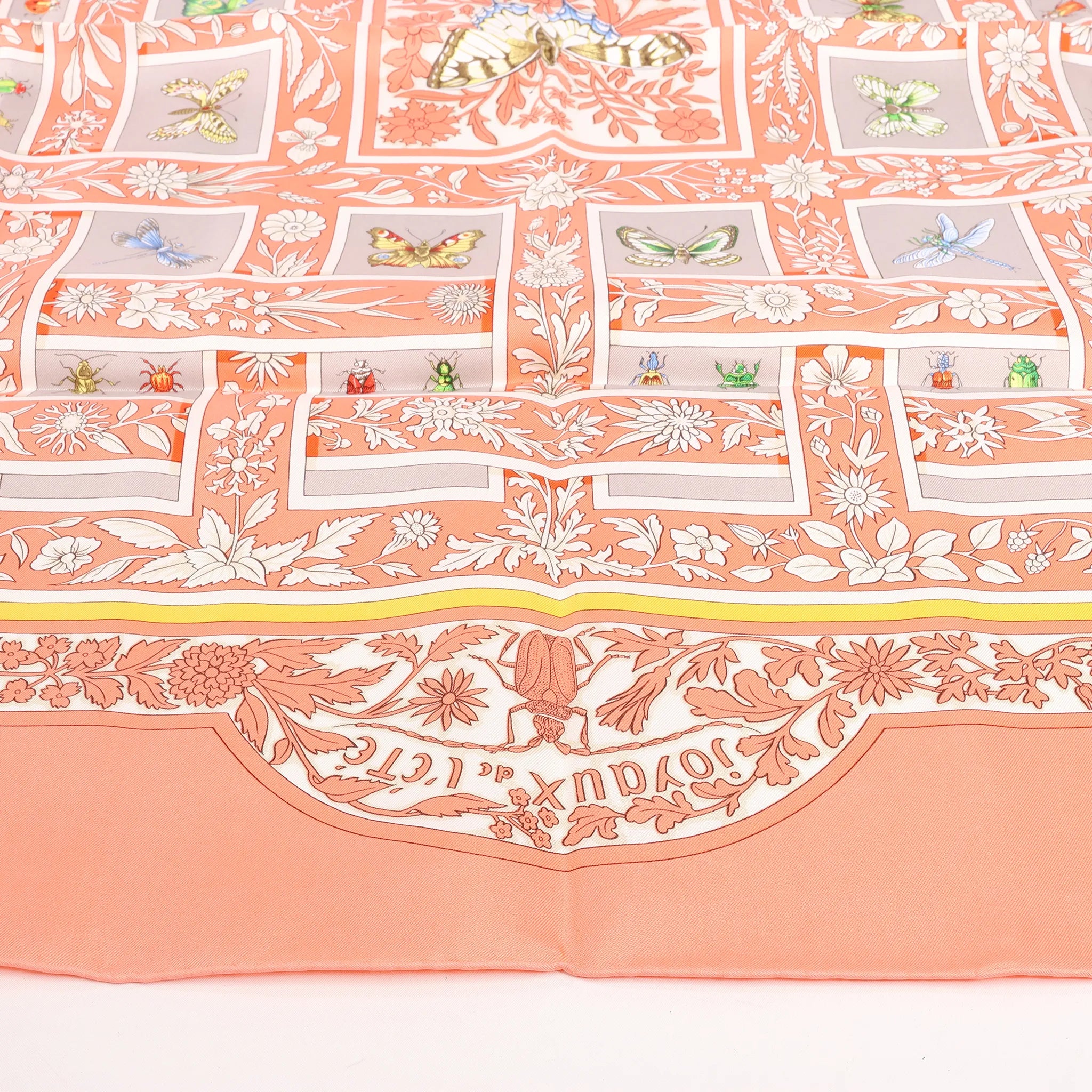 Add a touch of elegance with the Hermès Carré 90 "Joyaux de l'Été" silk scarf in pink. Crafted from luxurious silk, this French-made accessory features intricate butterfly and floral motifs, perfect for timeless, feminine style.