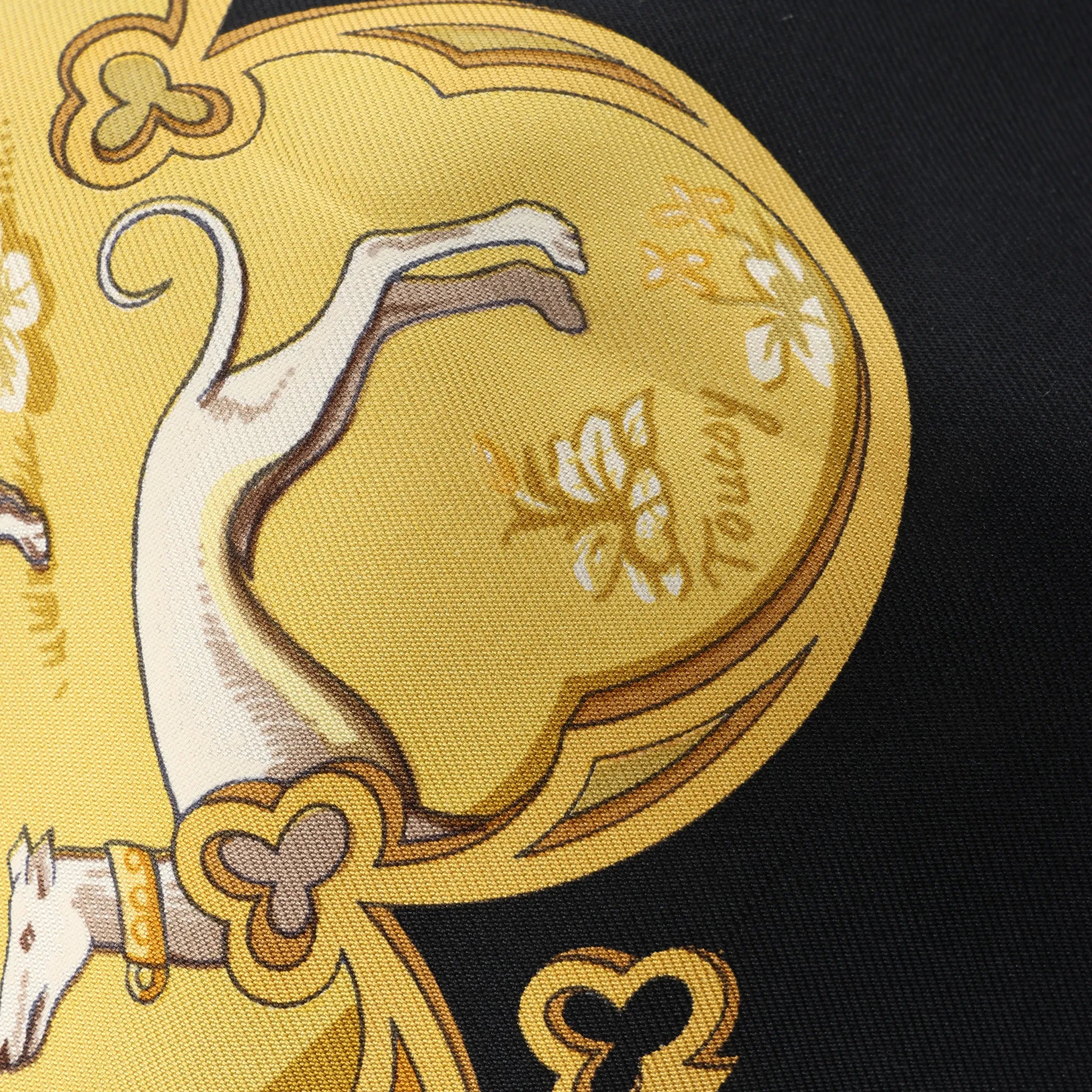 Hermes Hermès Carré 90 "LA VIE a CHEVAL" Silk handkerchief in Black x Yellow