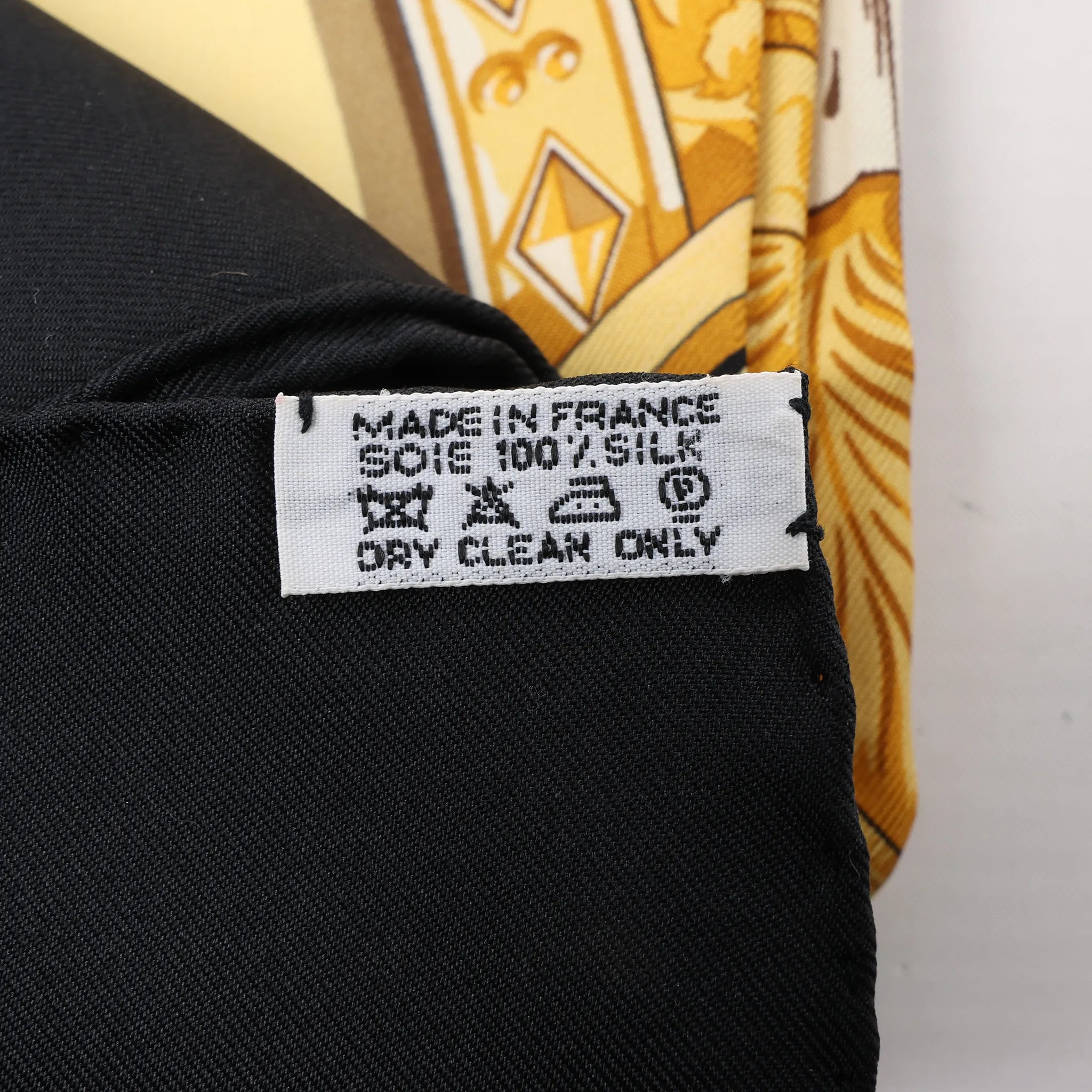 Brand: HermesModel: Carre 90Size: 90x90 cm Condition: Never wornCondition Details: -Main Colour: BlackColours: YellowMain material: SilkManufactured In: FranceComes With: -