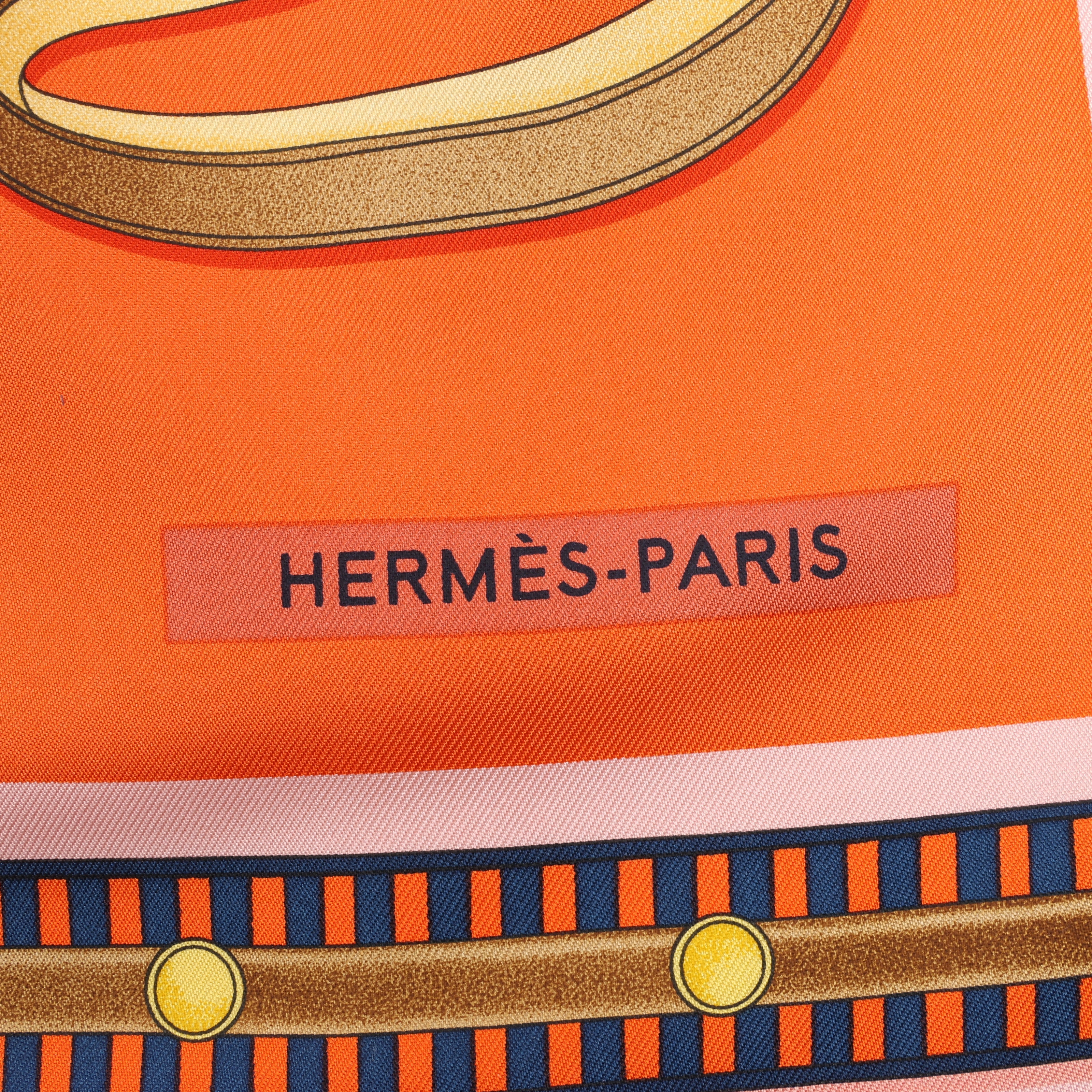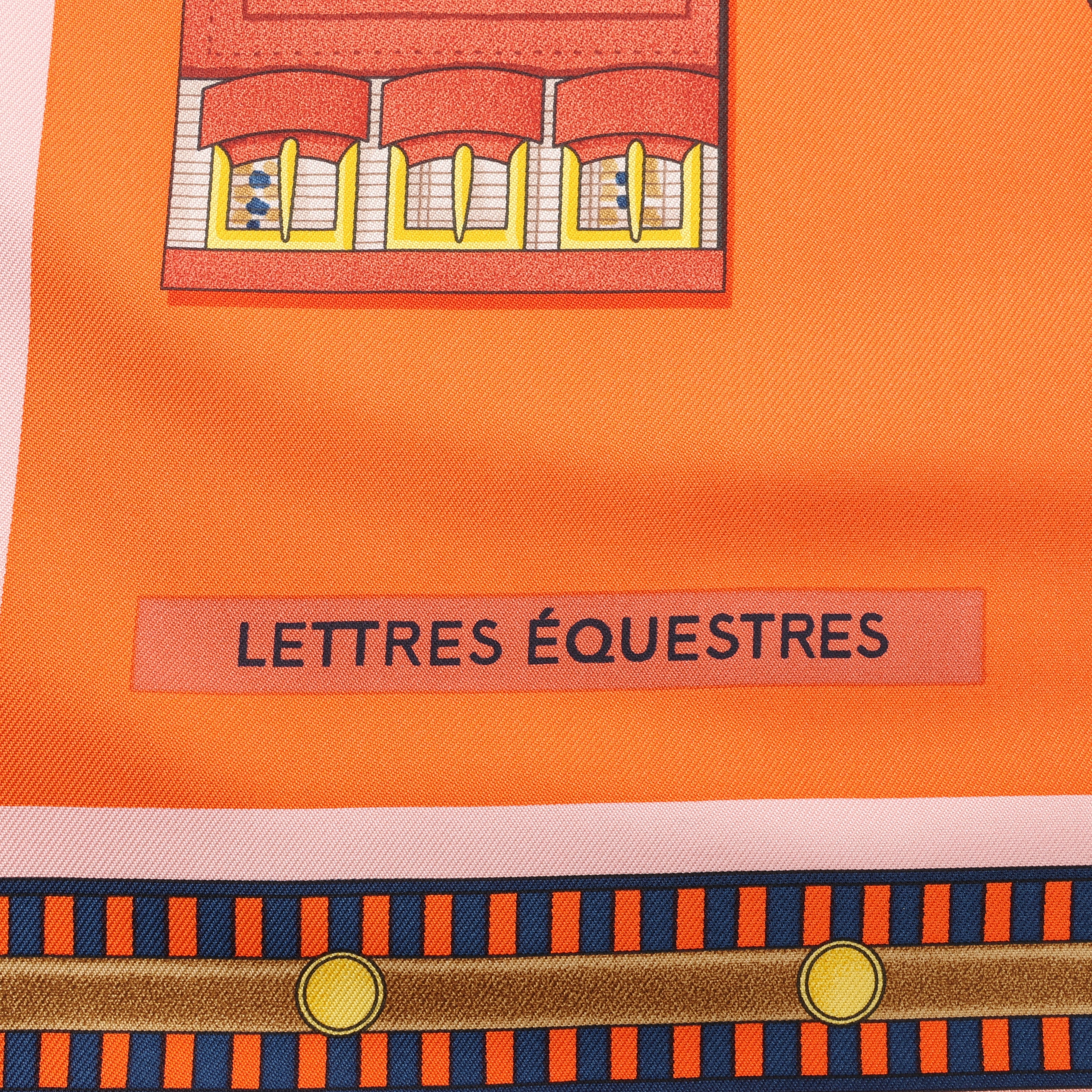 Hermès Carré 90 "LETTRES EQUESTRES" 100% Silk Scarf in Orange Secondhand