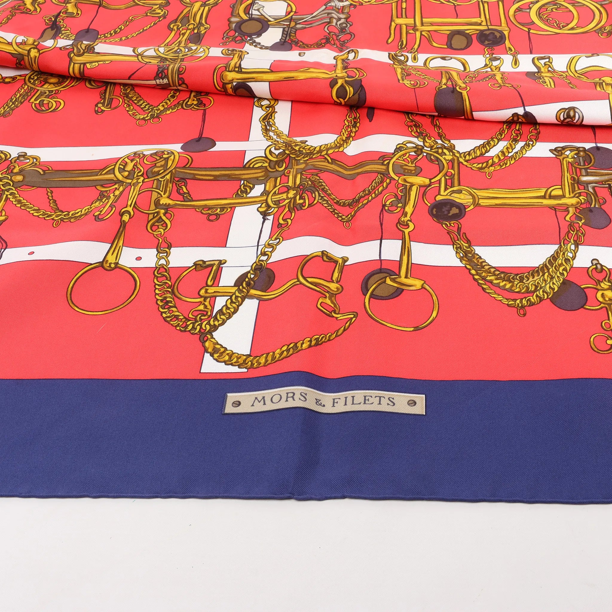 Hermes Hermès Carré 90 "MORS&FILETS" Silk handkerchief in Red x Navy Blue