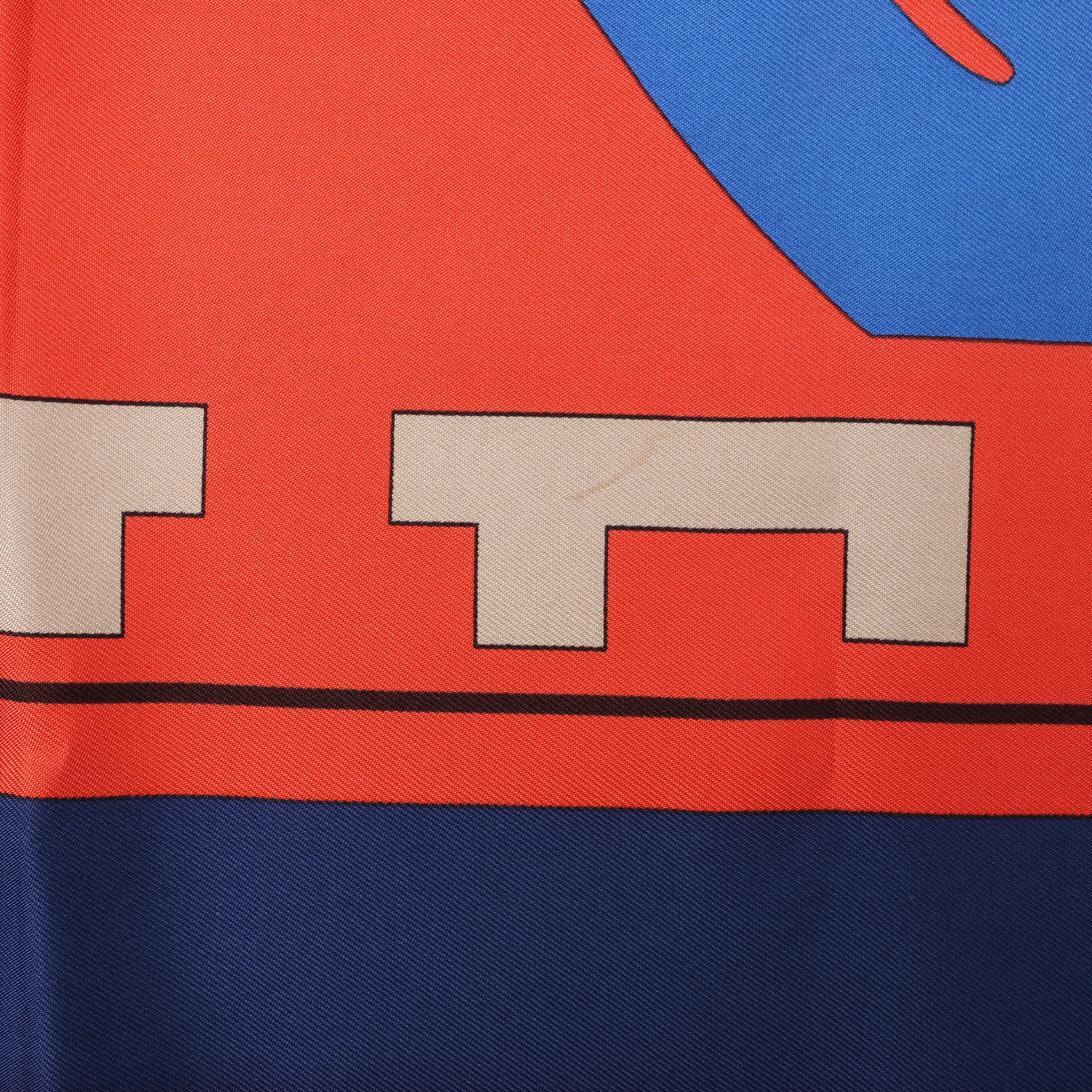Brand: HermesSize: 90x90 cm Condition: ExcellentCondition Details: Has stainsMain Colour: OrangeColours: Red, NavyMain material: 100% silkManufactured In: FranceComes With: -