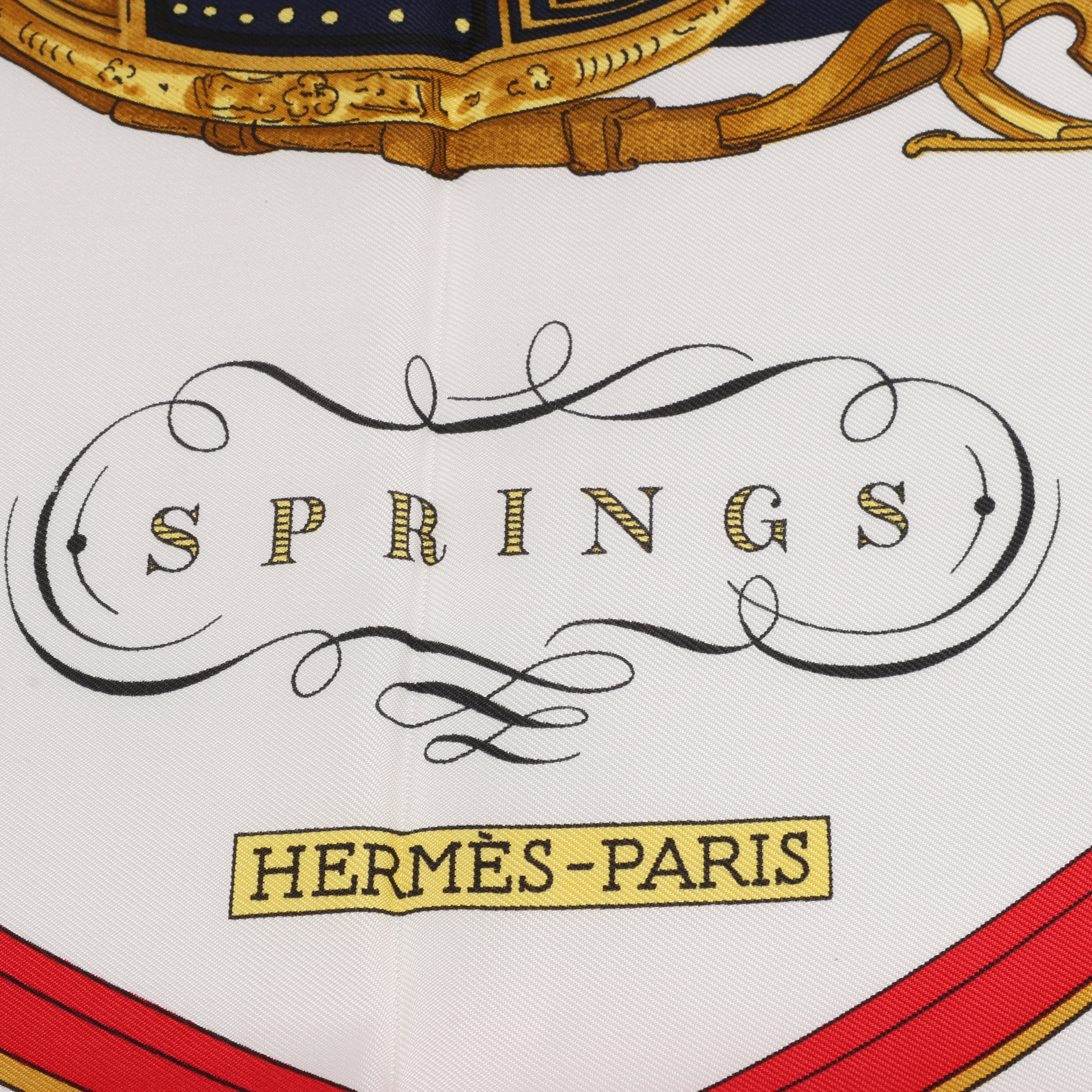Elevate your style with the Hermès Carré 90 "Springs" silk scarf. Crafted from luxurious 100% silk, this exquisite design showcases intricate equestrian-inspired motifs in vibrant hues. A timeless accessory that adds sophistication and elegance to any ensemble.