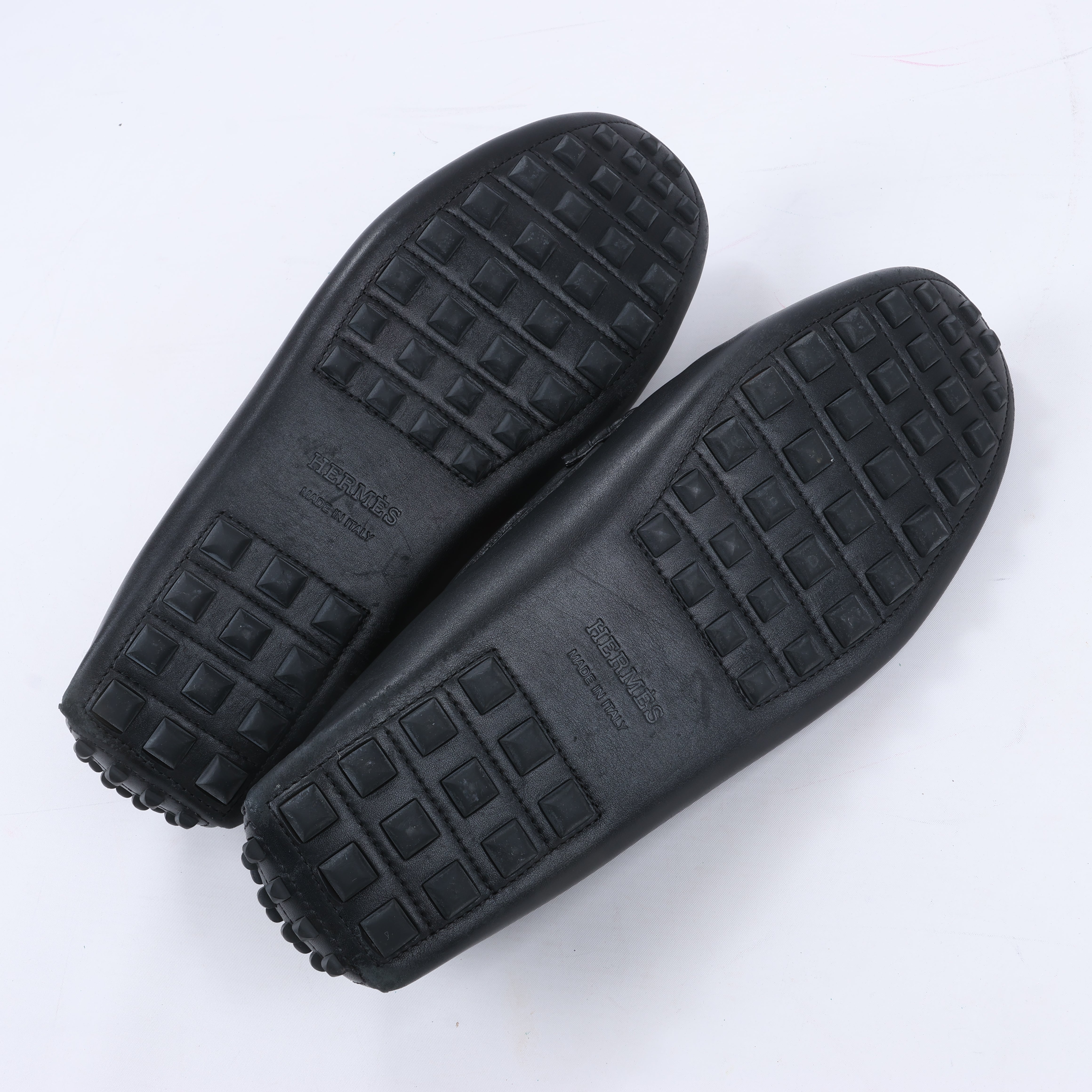 Hermes HERMES Irving Leather Driving Moccasins in Black Collier de Chien for Men, Size 42 EU