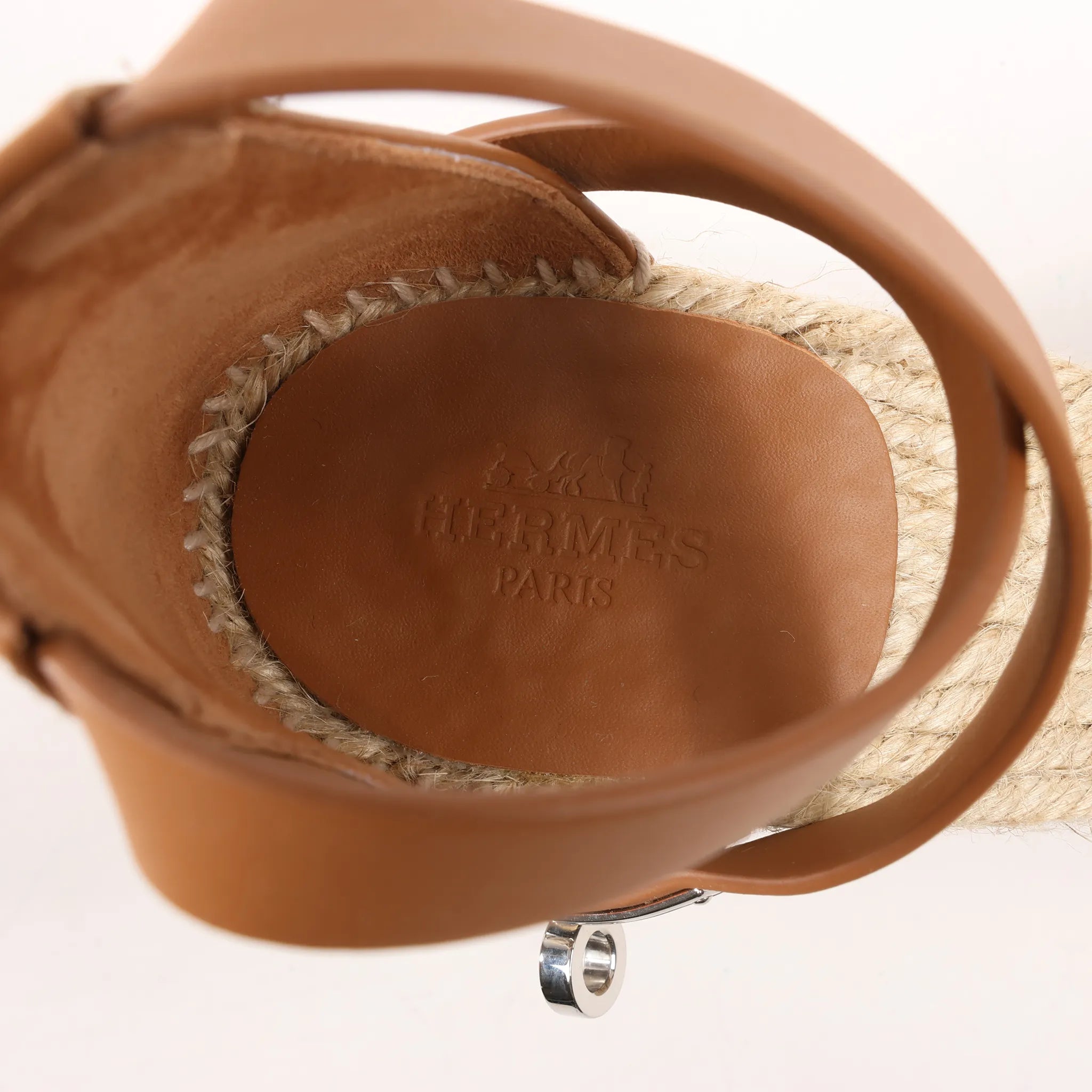 Hermes Hermès Kelly Tivoli Denim Wedge Sole Espadrilles Sandals in Light Blue, Size 37 EU