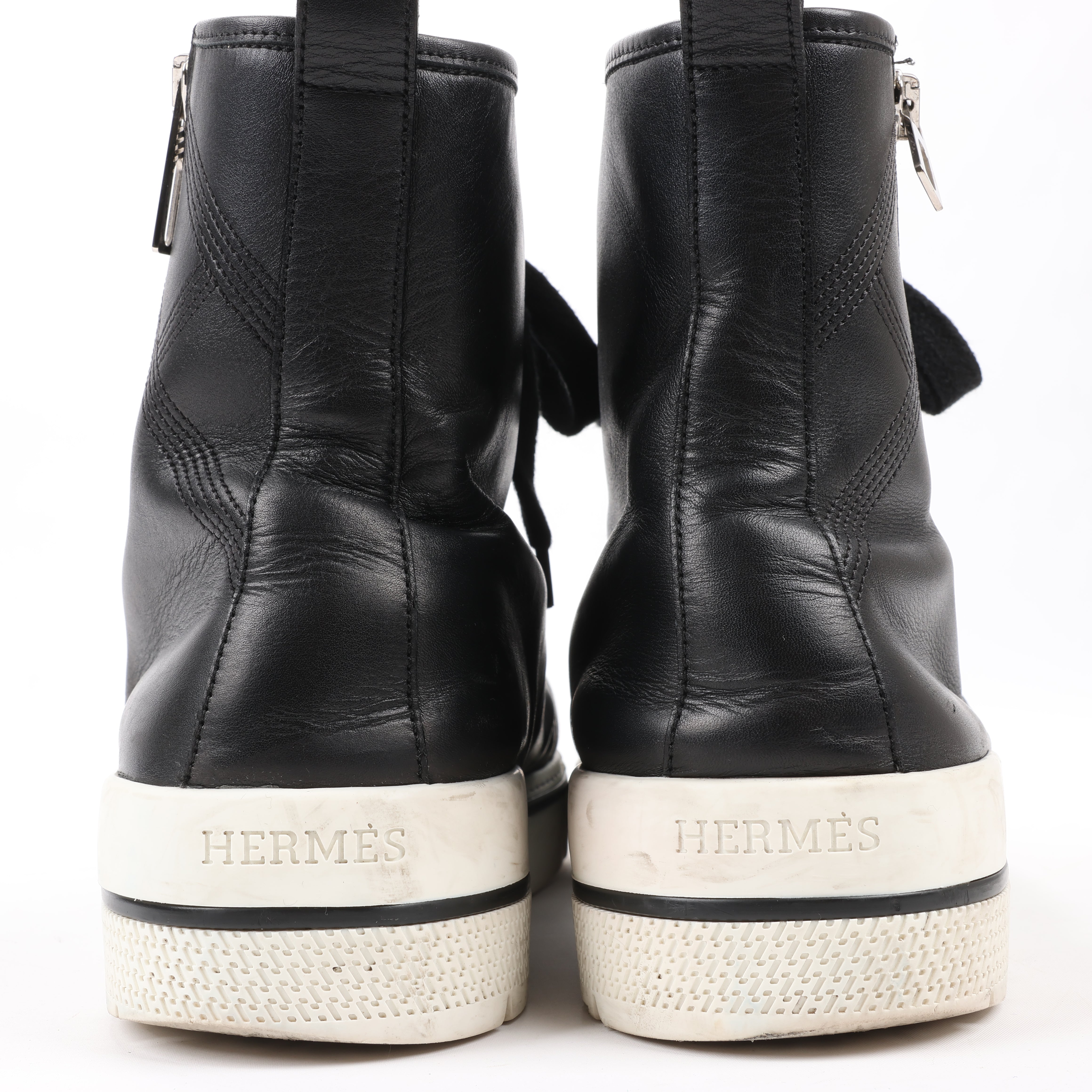 Hermes Hermès Leather High-Top Side Zip Sneakers in Black, Size 42 EU 182355ZH