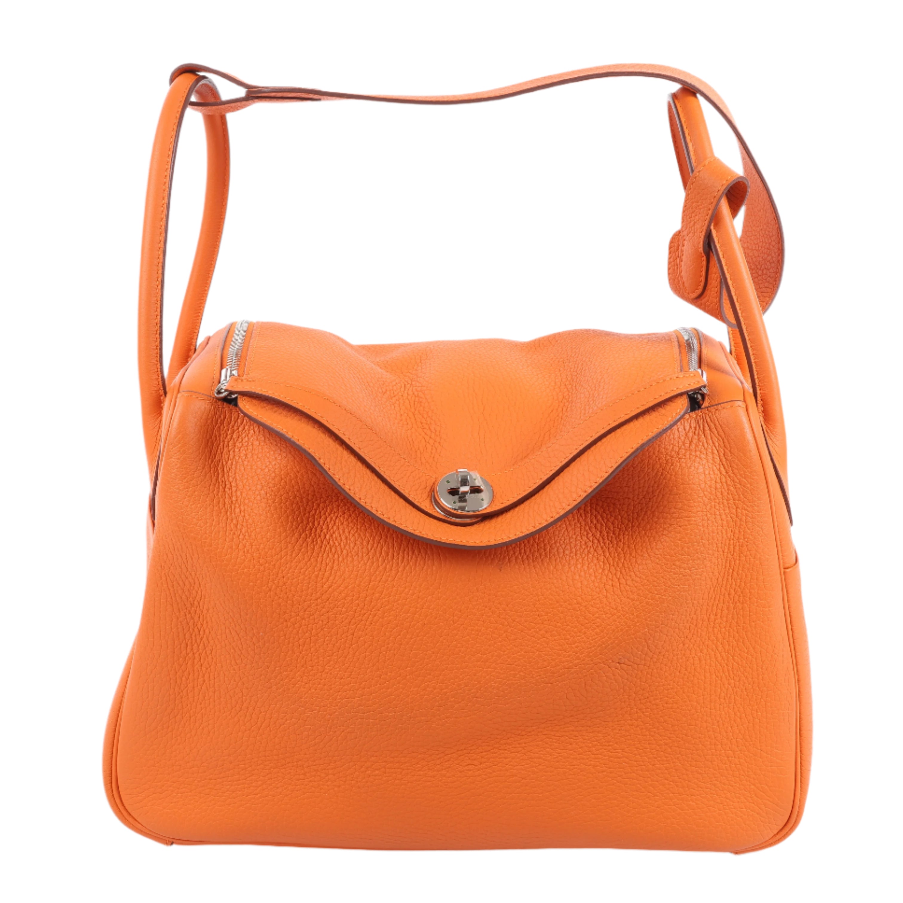 Brand: HERMES Model: LindySize: 34Width: 30 cm Height: 22 cmExterior Condition: ExcellentInterior Condition: ExcellentCondition Details: The exterior leather is clean and in excellent condition, but has some discoloration spots and scratch. The handles are clean and firm. Hardware remains shiny and crisp. The interior is remains good condition with light scratches.Colour: OrangeInterior Colour: OrangeHardware Colour: SilverMaterial: LeatherComes With: Box, Dustbag, papaer, rain protection