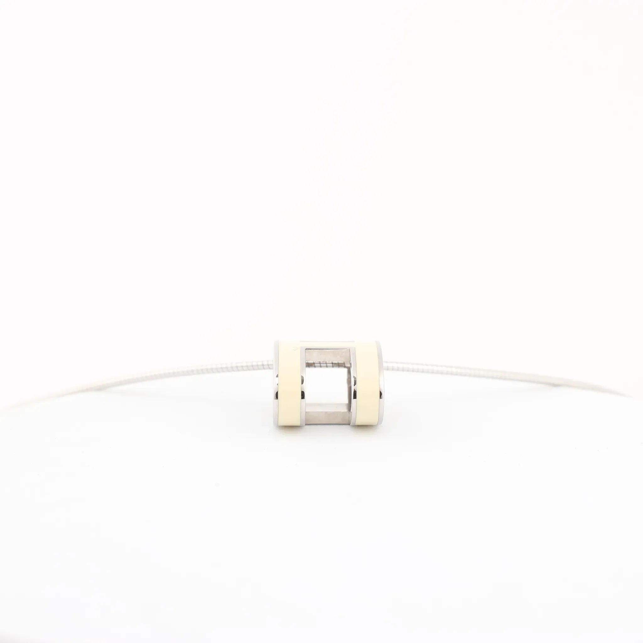 Brand: HermesModel: Pop HCircumference: 41 cmPendant size: 1.2 x 2.0 cmMaterial: SilverCondition: ExcellentCondition Details: Pre-Owned Jewelry with light scratches. Has just been serviced and cleaned at jewelers. Before purchasing, please refer to the images for the exact condition of the item.Colour: Silver, EcruComes With: Box, brand paper