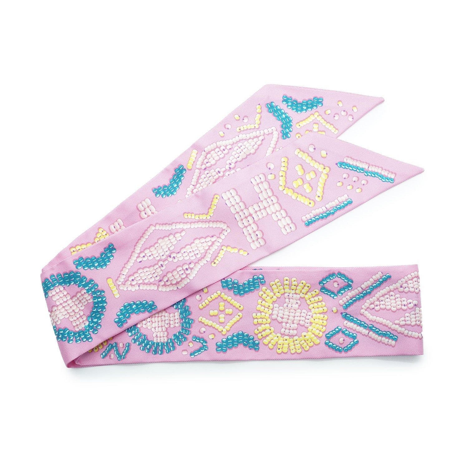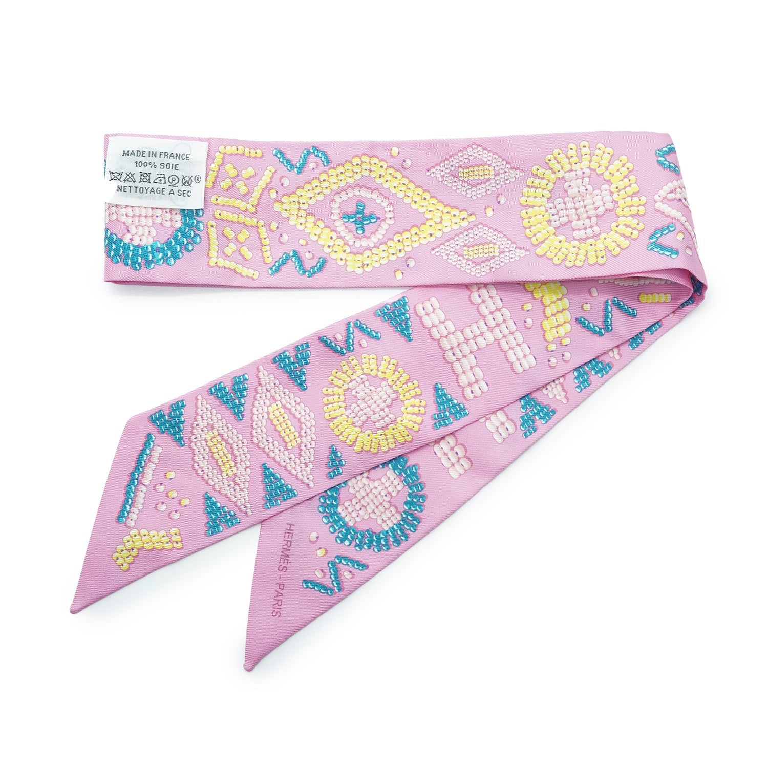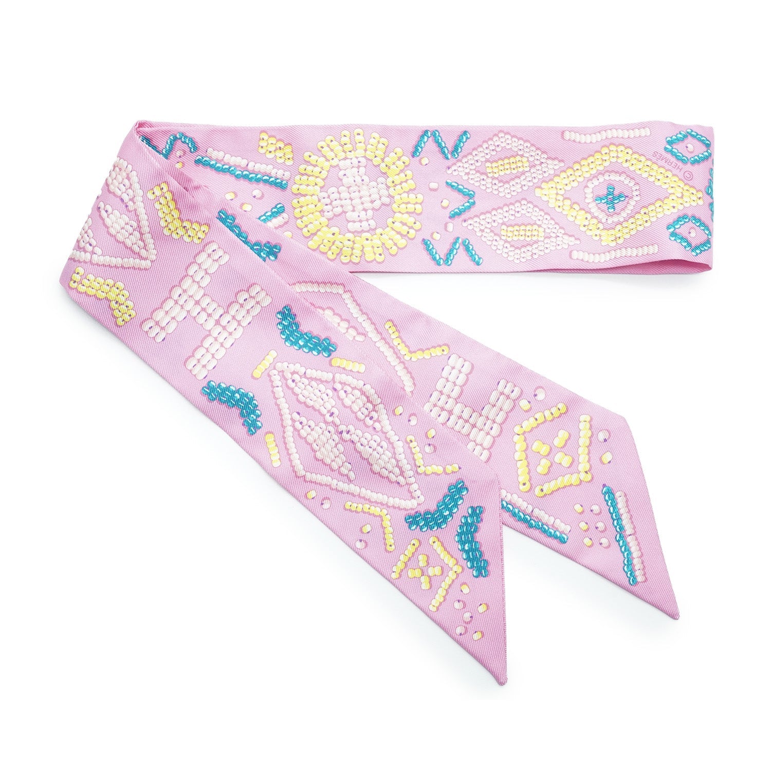 Hermes Kelly en Perles Rose Bonbon Silk Twilly
