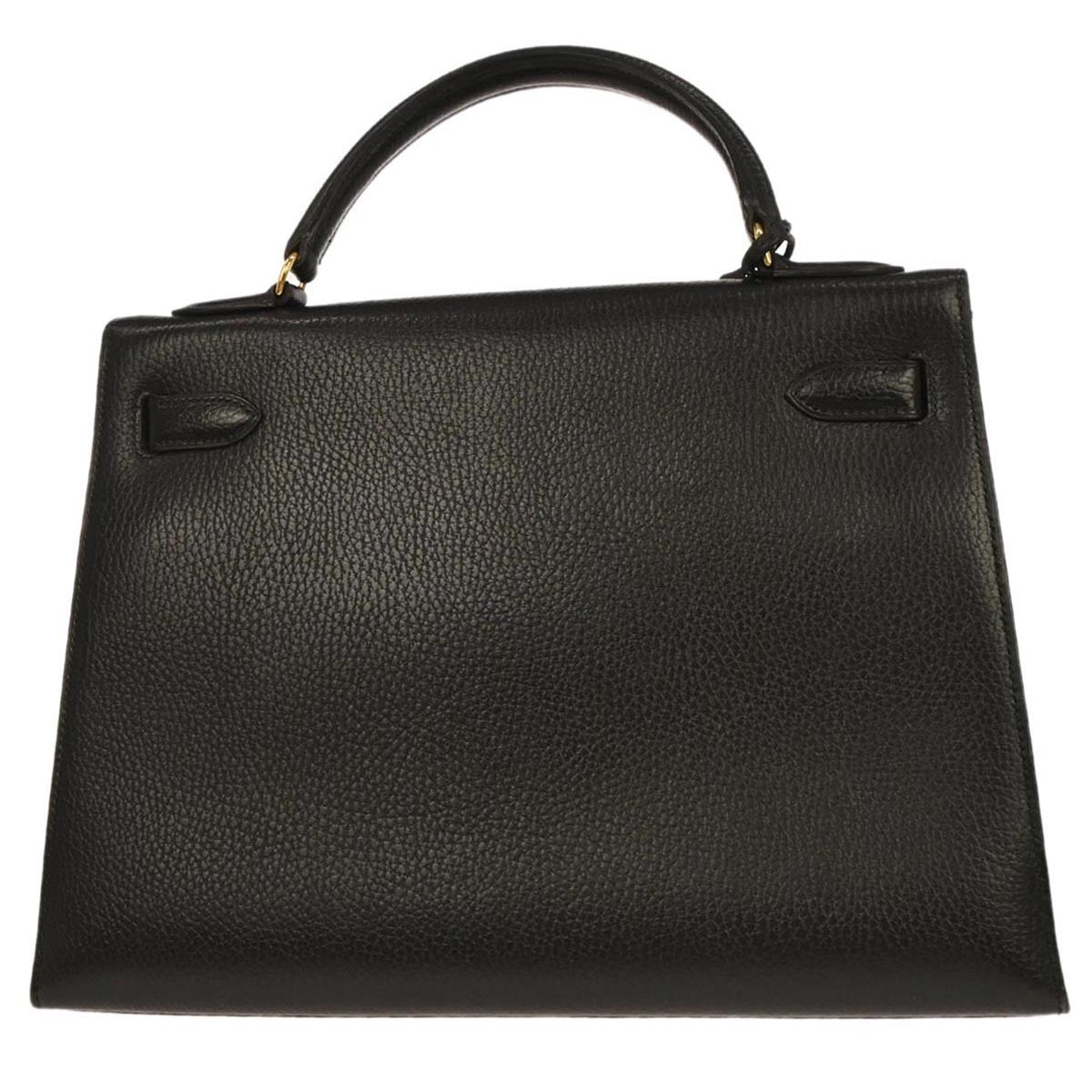 Hermes Kelly Handbag Black Ardennes with Gold Hardware