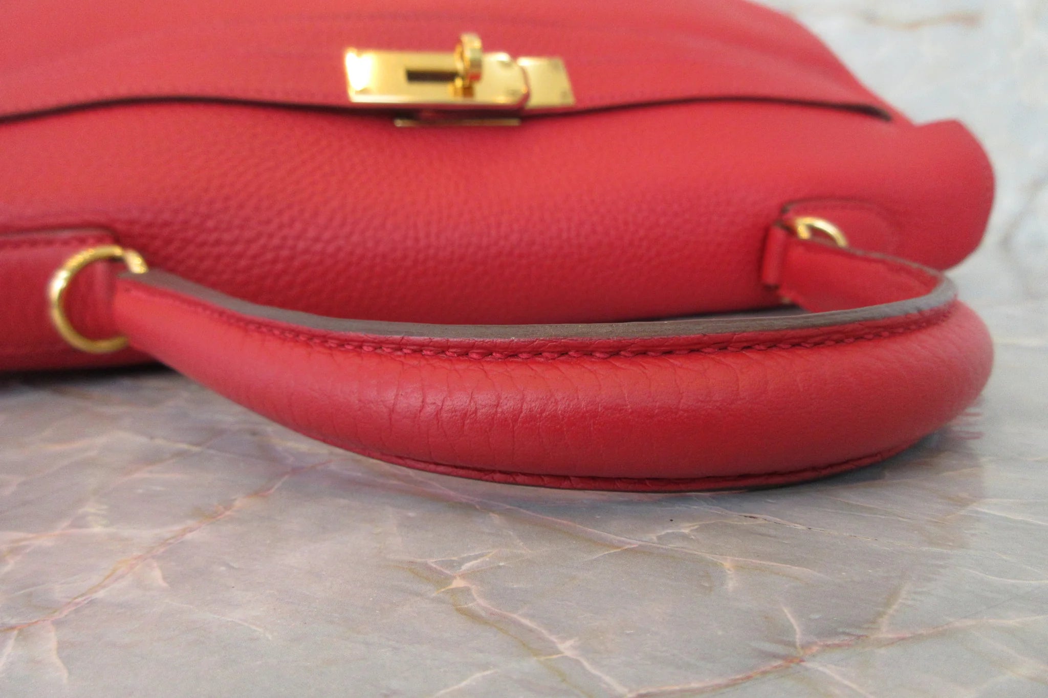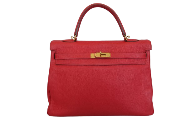 Hermes Kelly Handbag Red Clemence with Gold Hardware