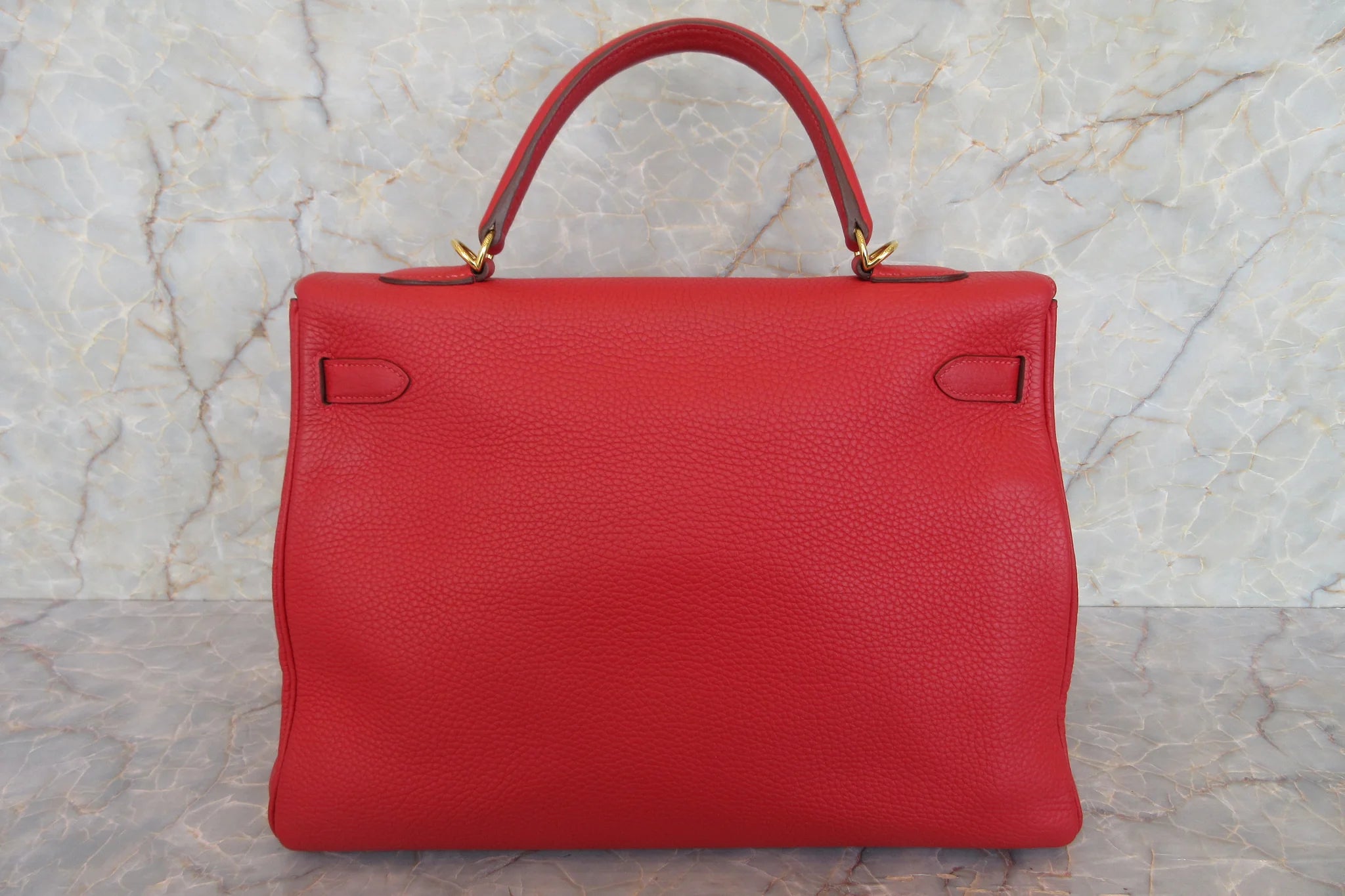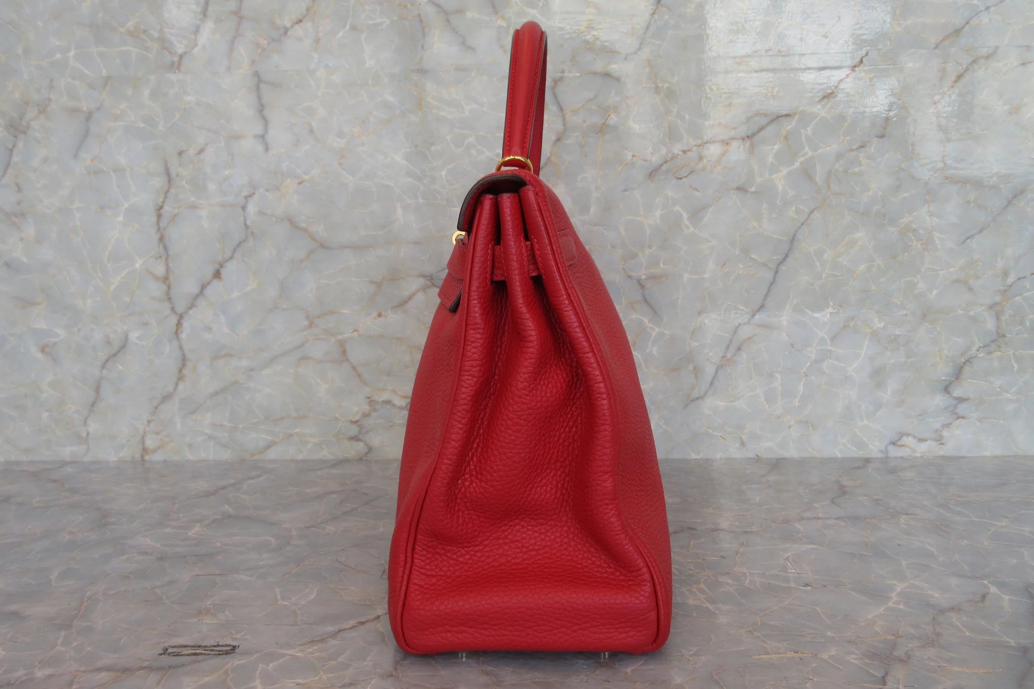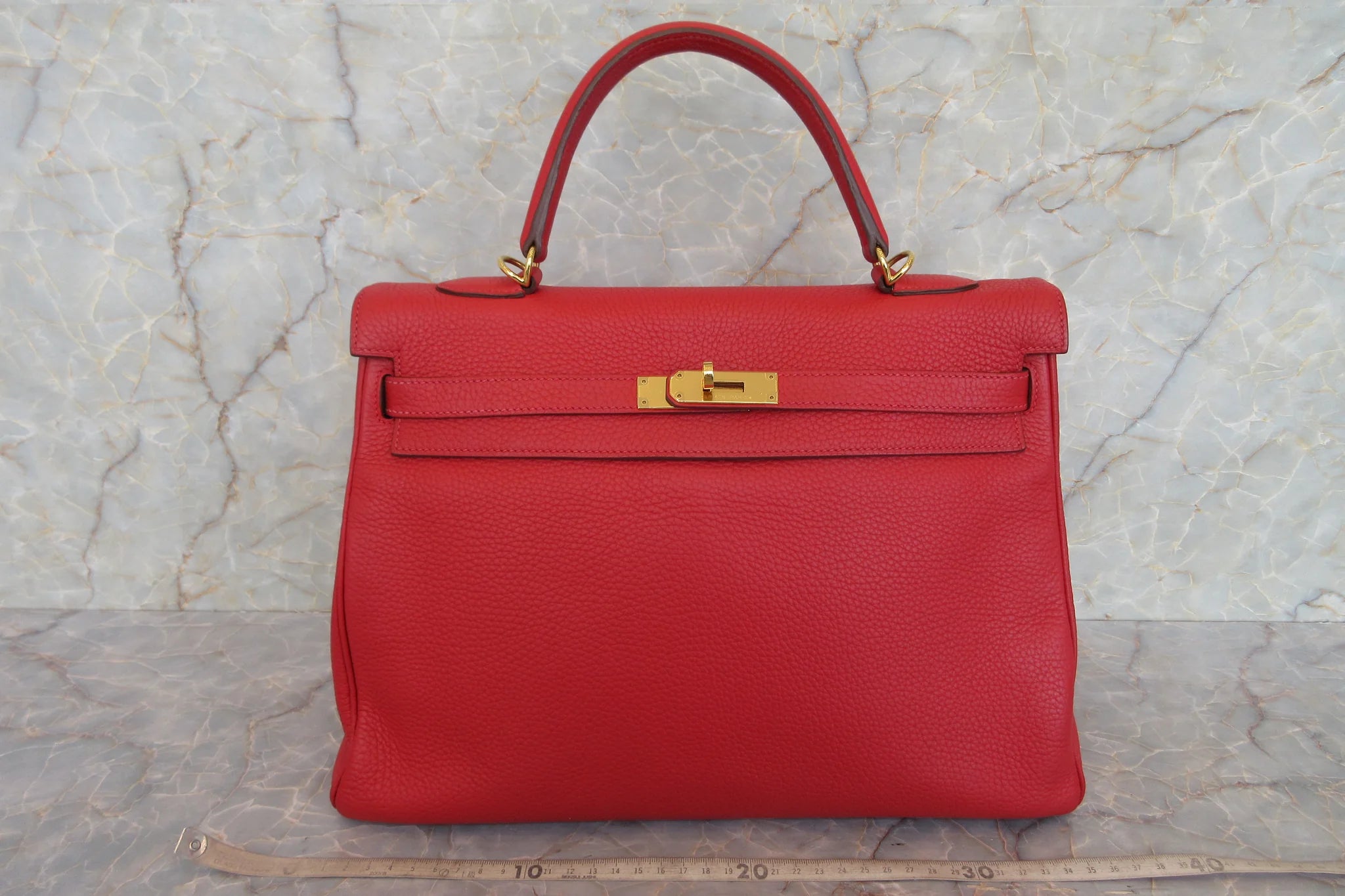 Brand : Hermes Model : Kelly handbag Style : Red clemence with gold hardware Dimensions (W x H x D) : 35cm x 25cm x 13cm Serial number : Square q stamp (2013) Inclusions : Dust bag,strap