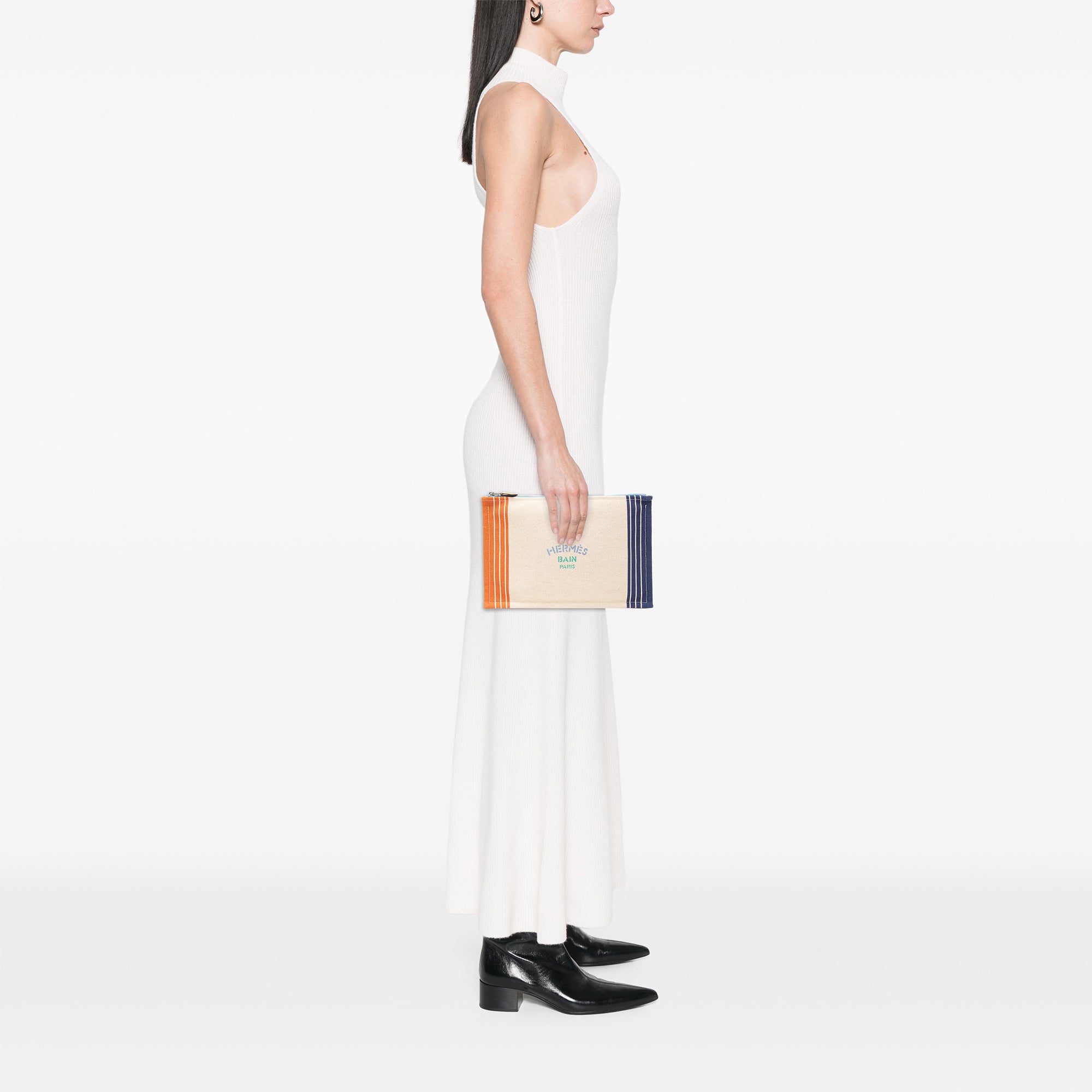 The Maillon Marin case features an H Canvas body and a top zip closure. Retail Price: 565.00