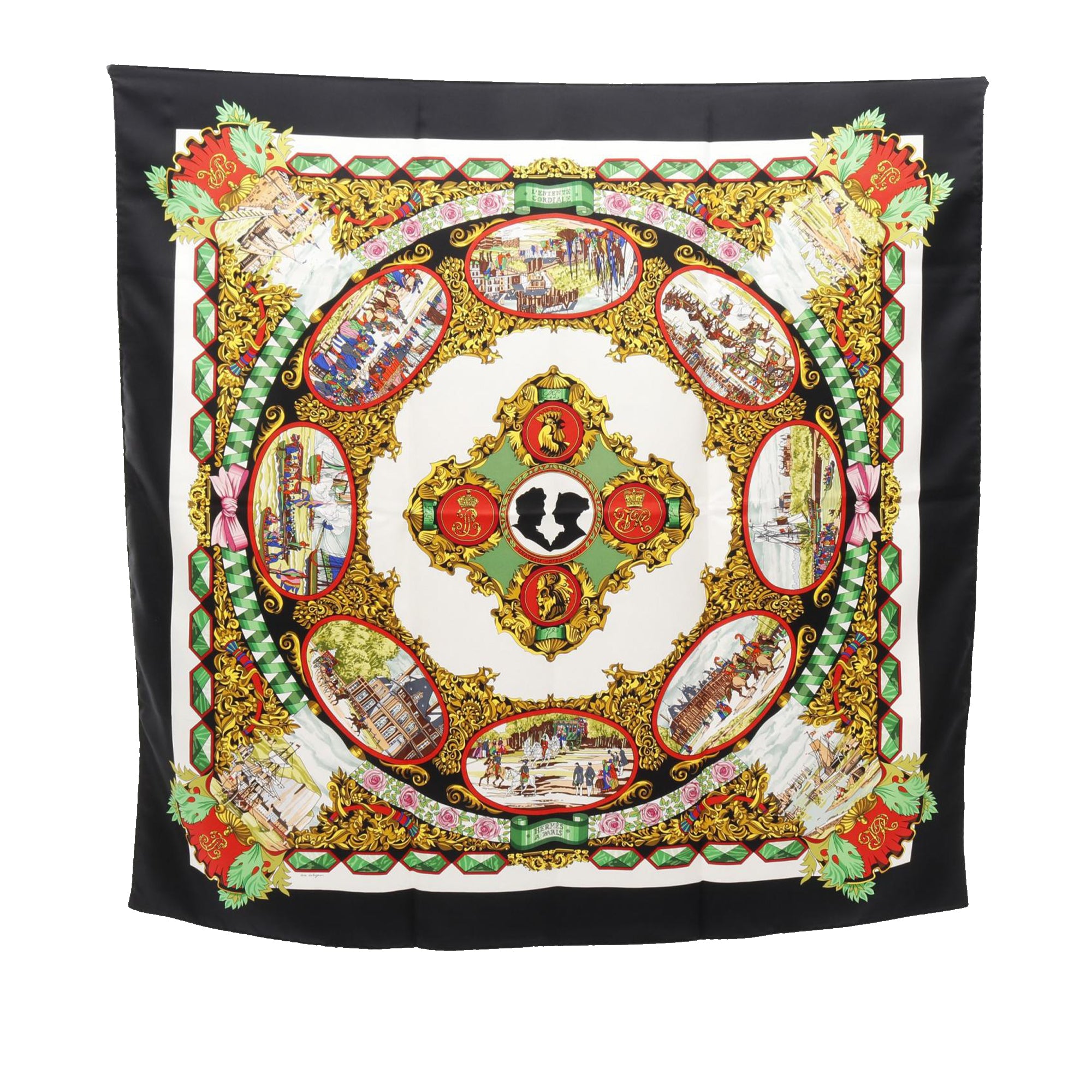 This scarf features the L'Entente Cordiale print on 100% silk. Retail Price: 800.00