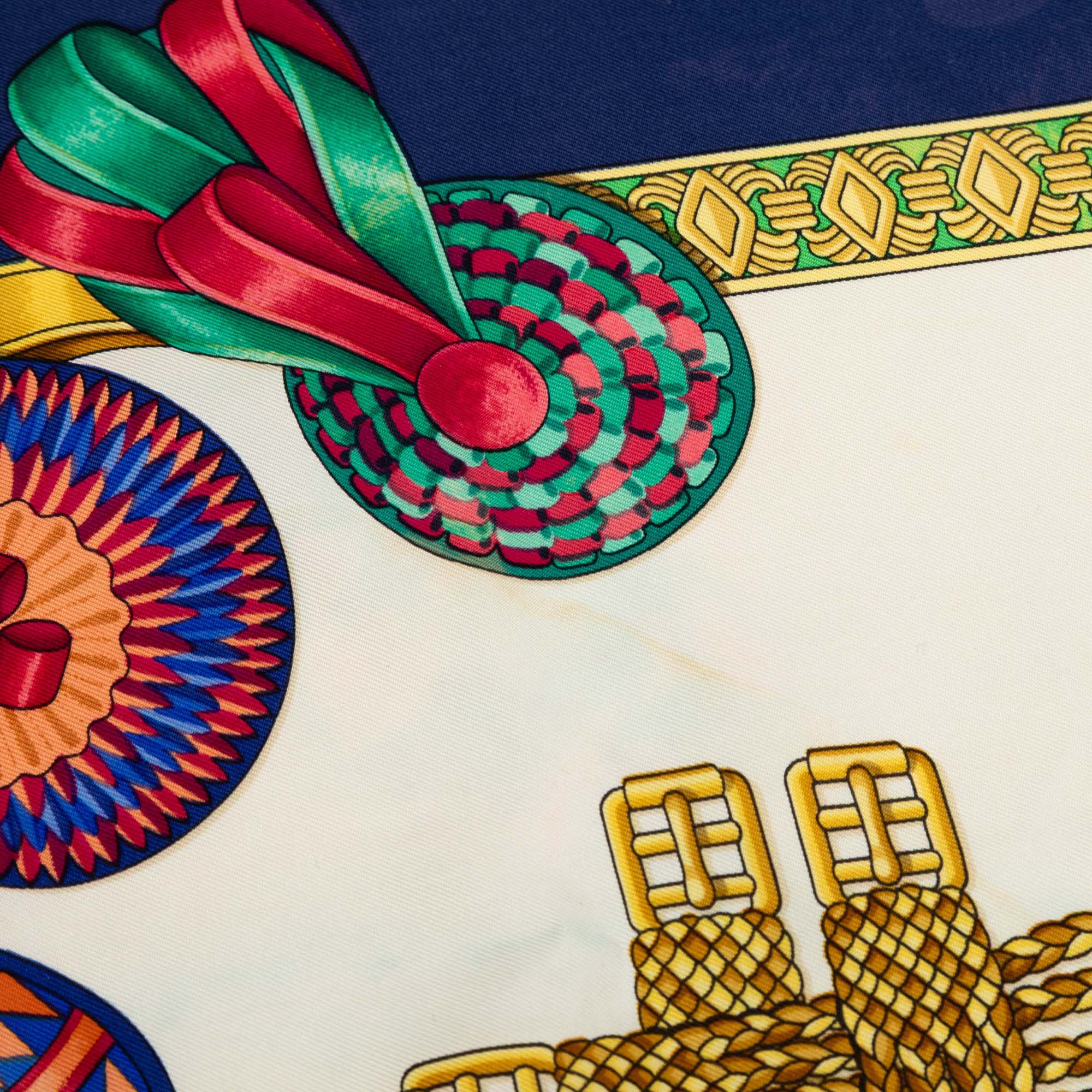 This scarf features the Les Rubans du Cheval print on 100% silk. Retail Price: 620.00