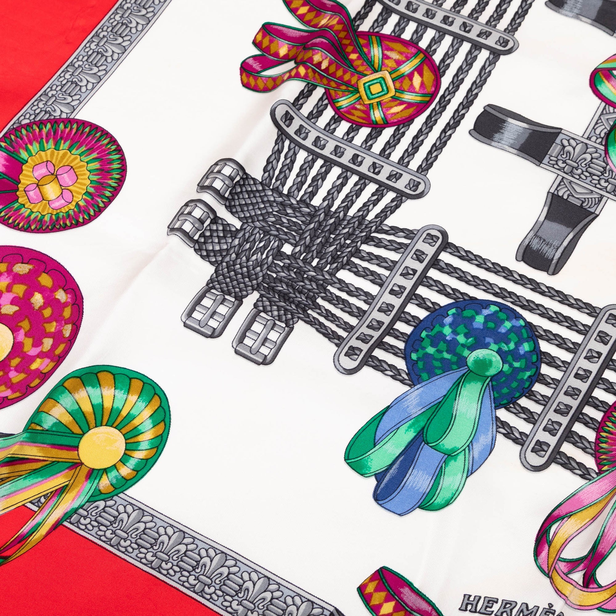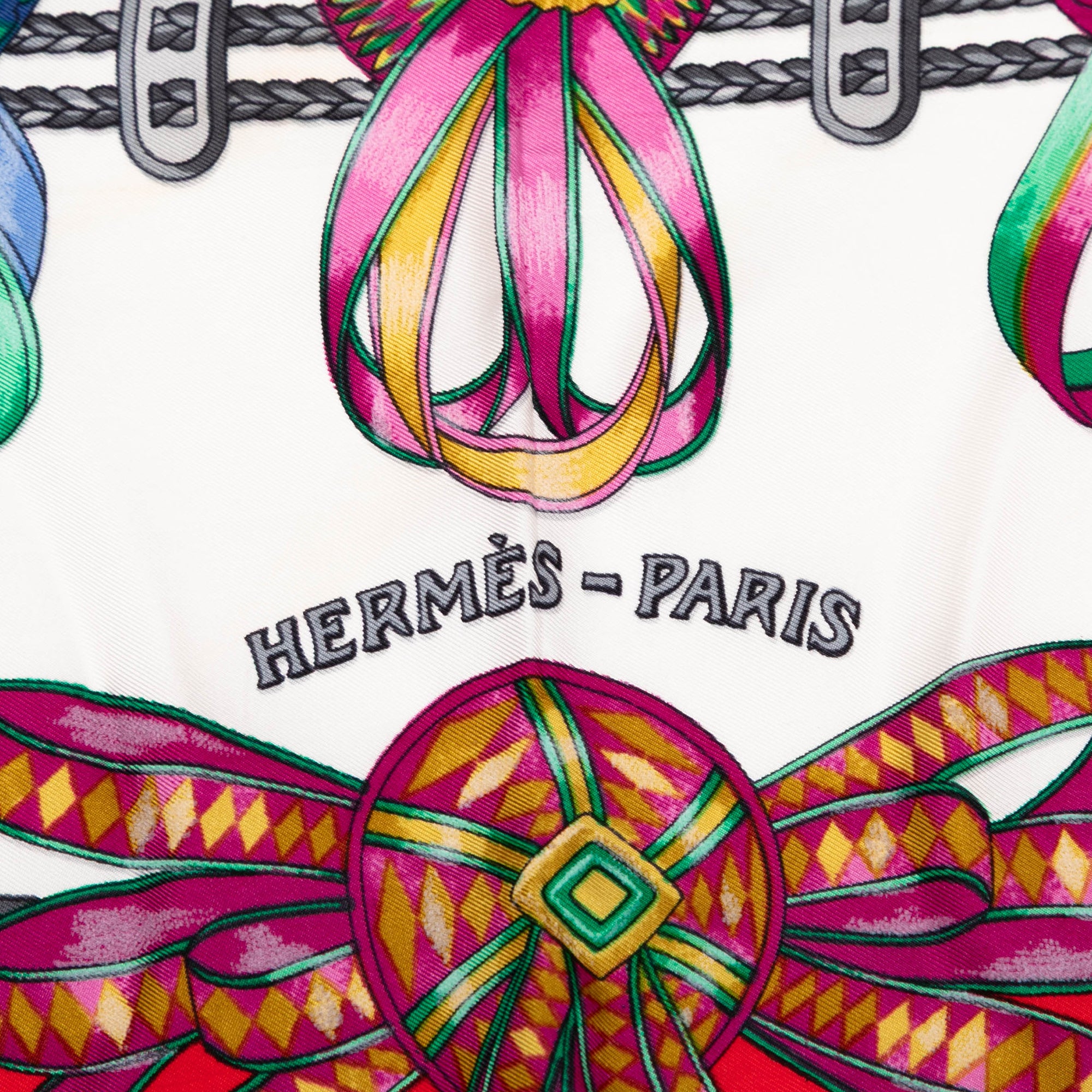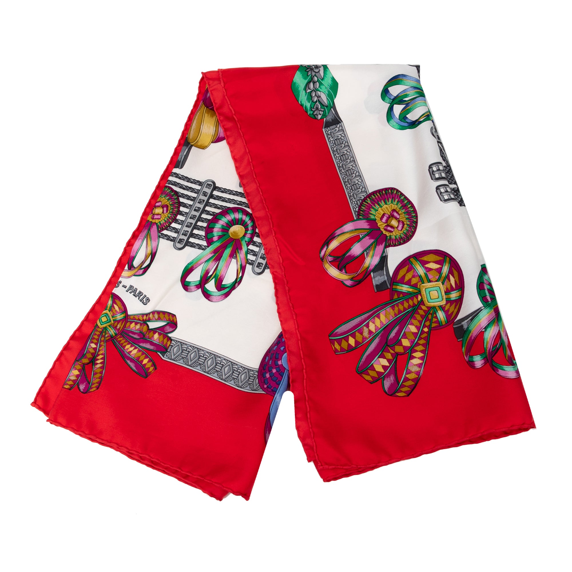 The Les Rubans du Cheval scarf features a print on 100% silk. Retail Price: 590.00