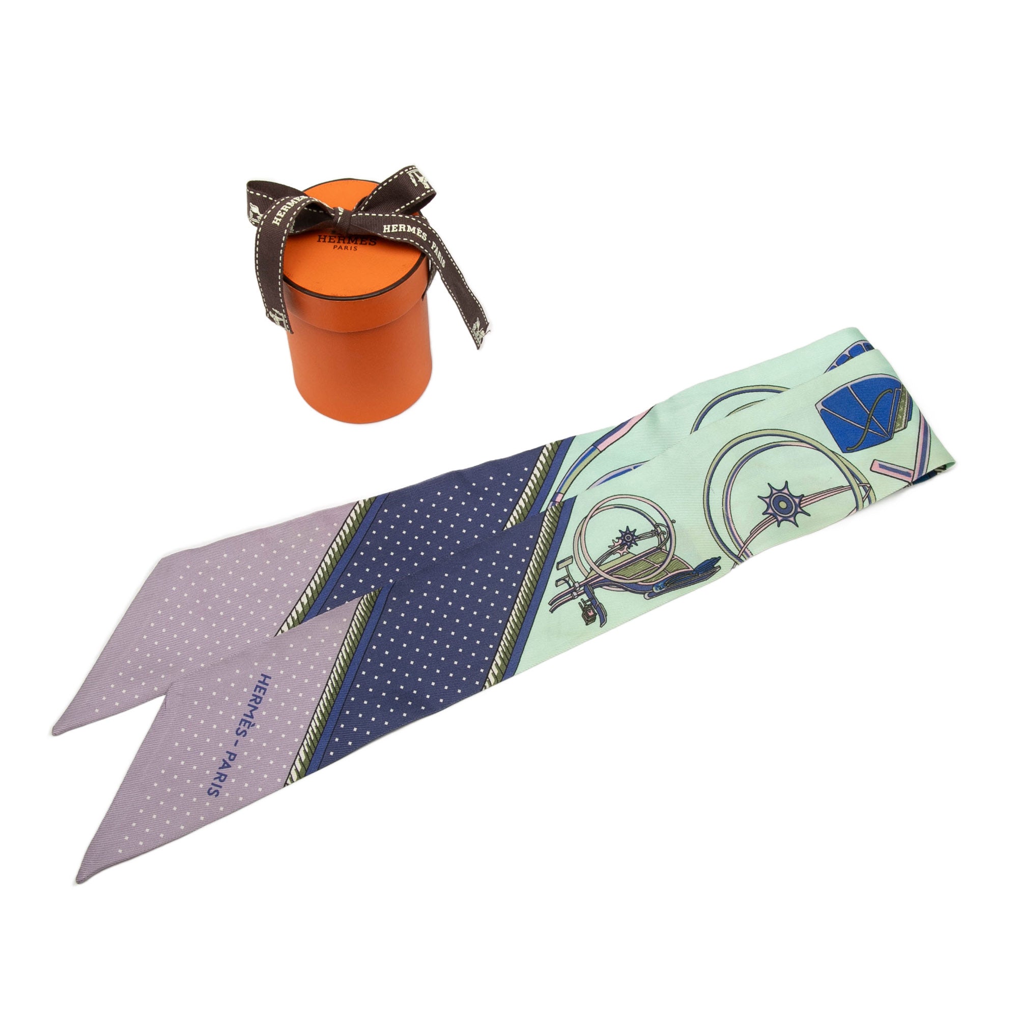 This twilly scarf features Les Voitures a Transformation print on 100% silk. Inclusion: box. Retail Price: 350.00