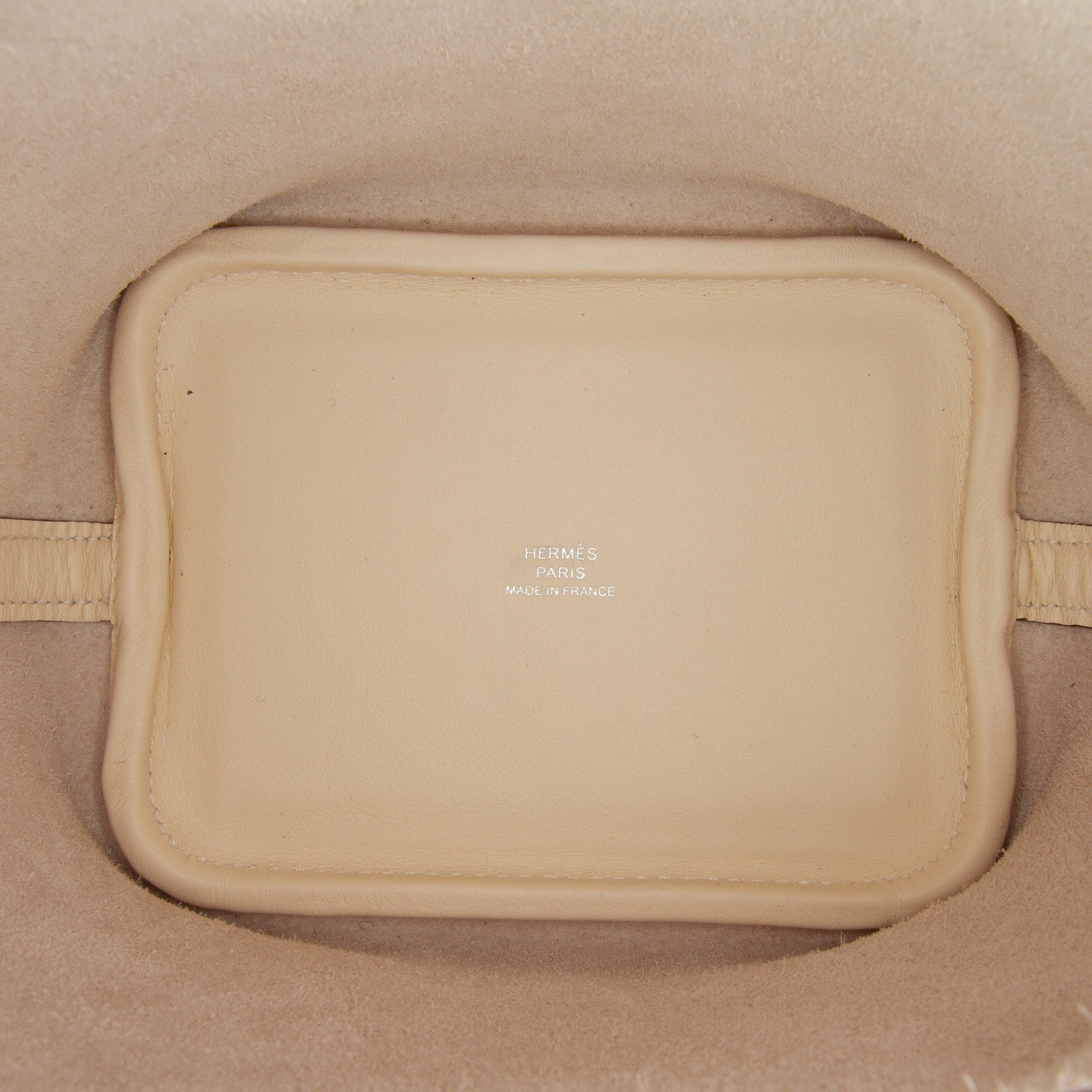 The Picotin Lock 14 features a Swift leather body in Nata color, flat leather handles, and an open top with a pull through strap closure. Inclusion: Dust bag. Retail Price: 4500.00