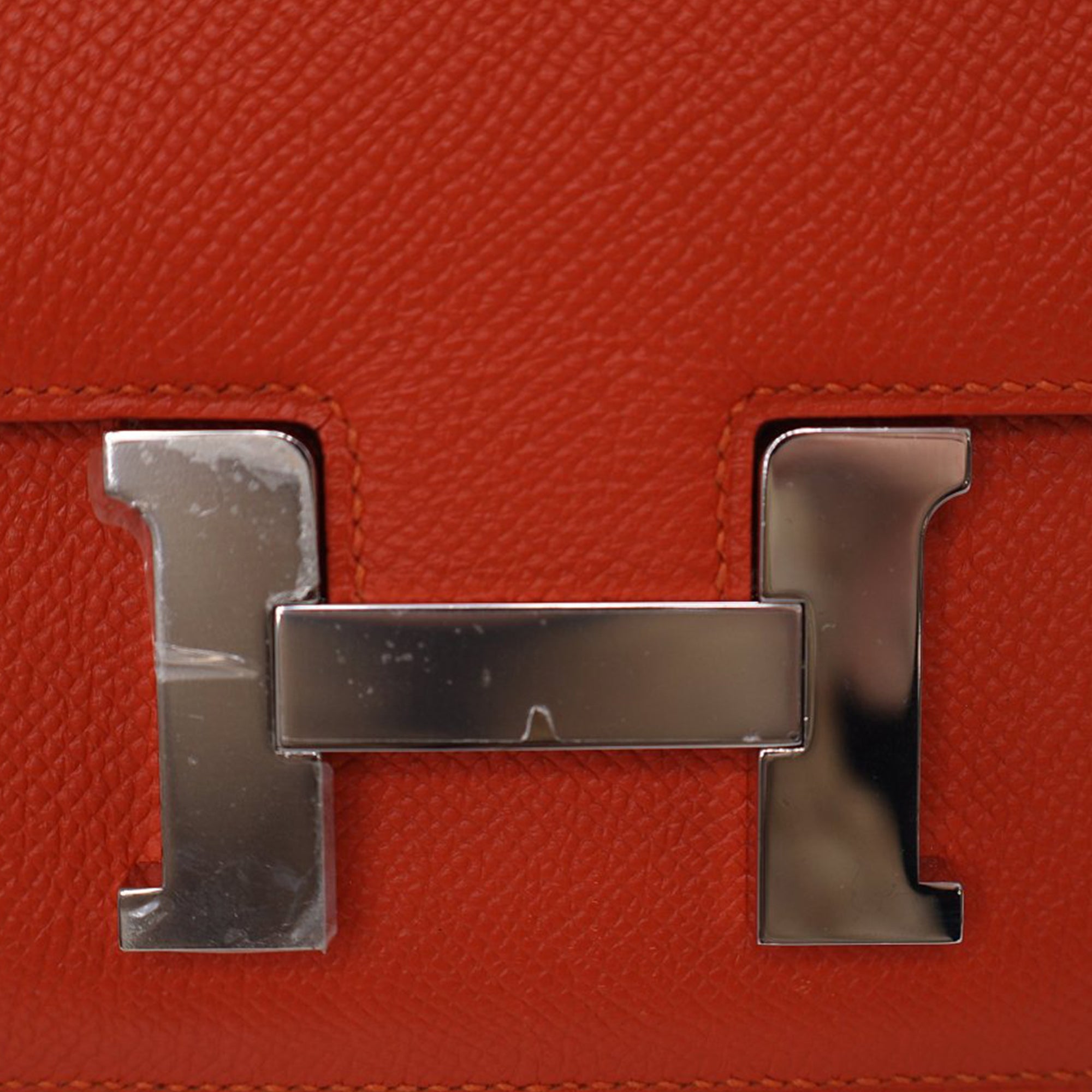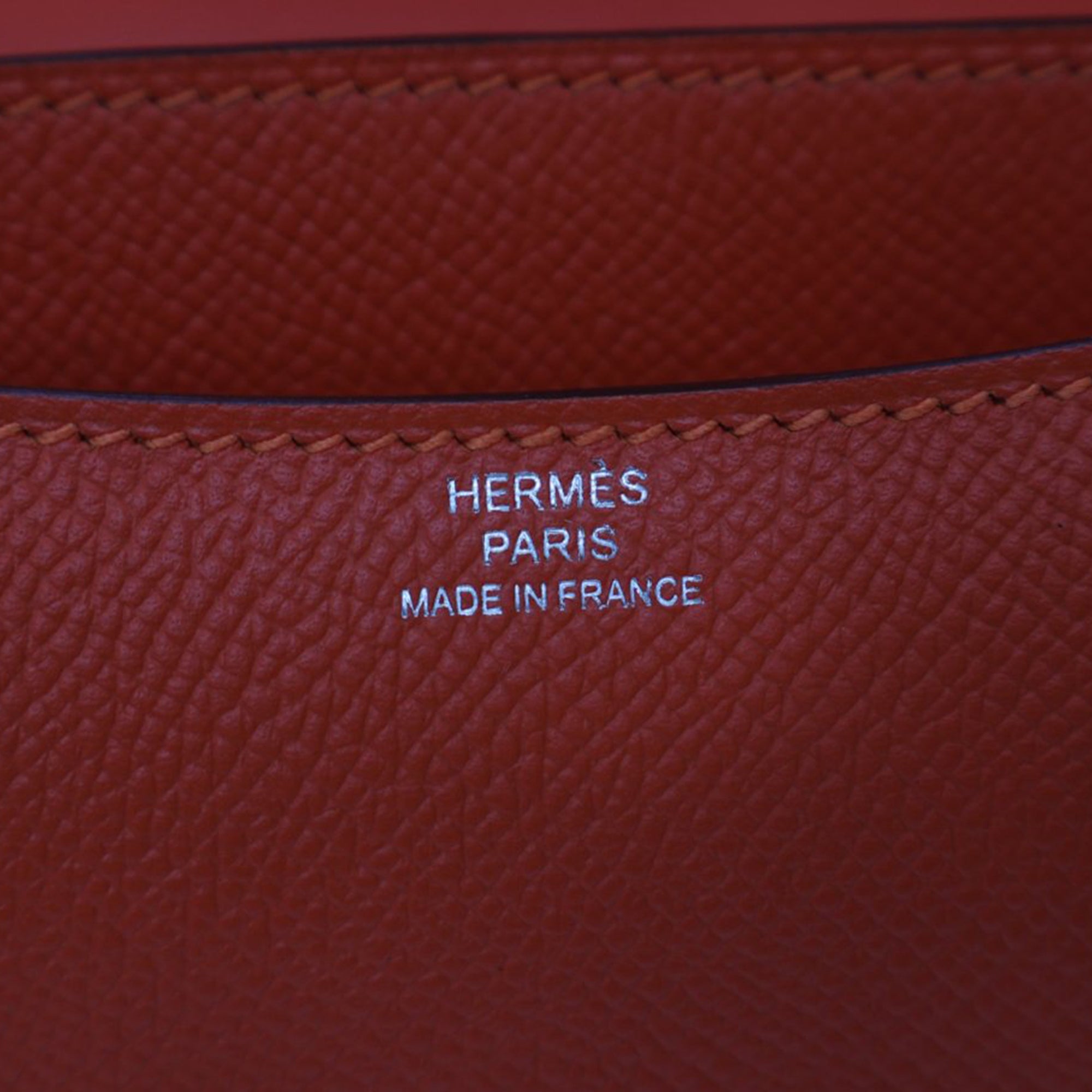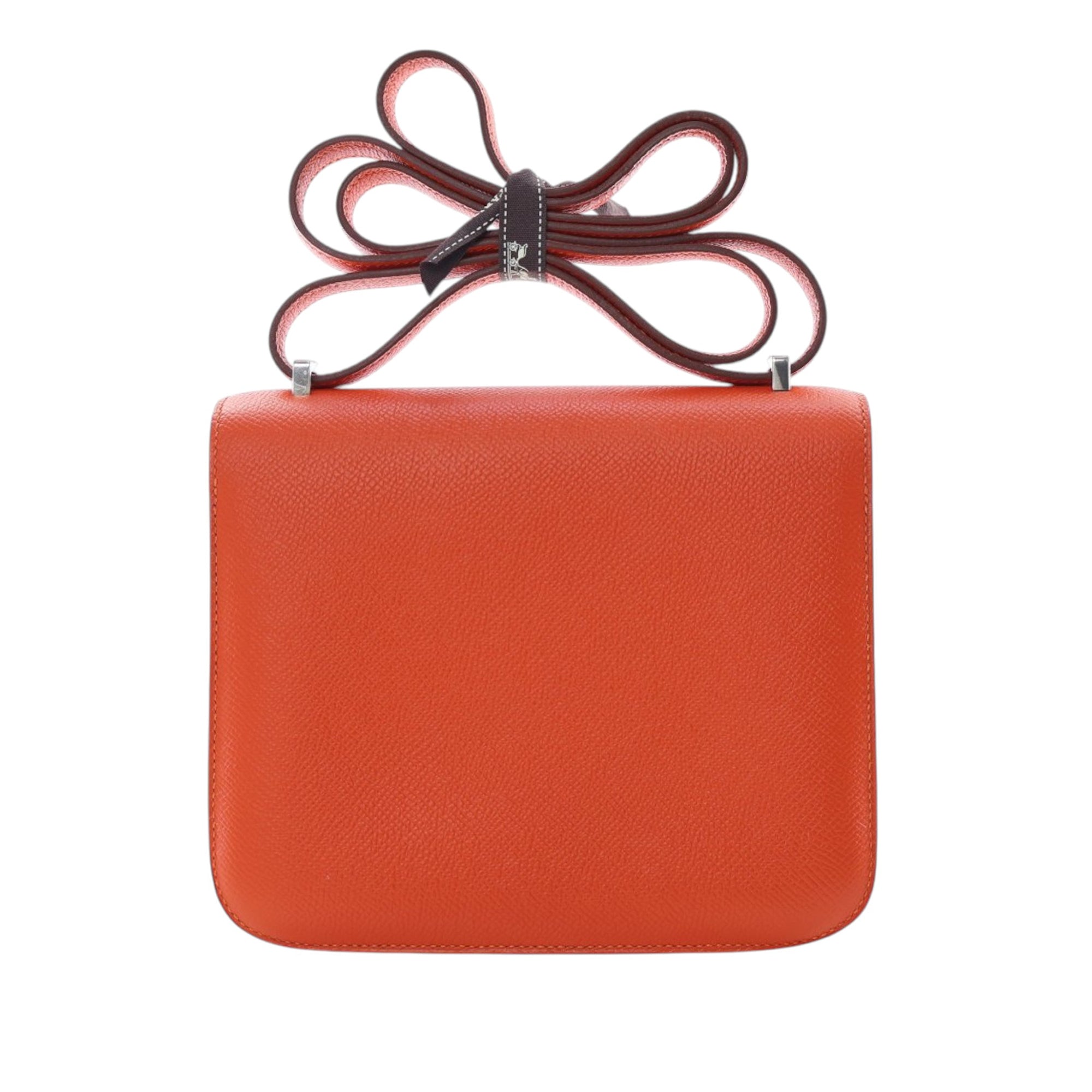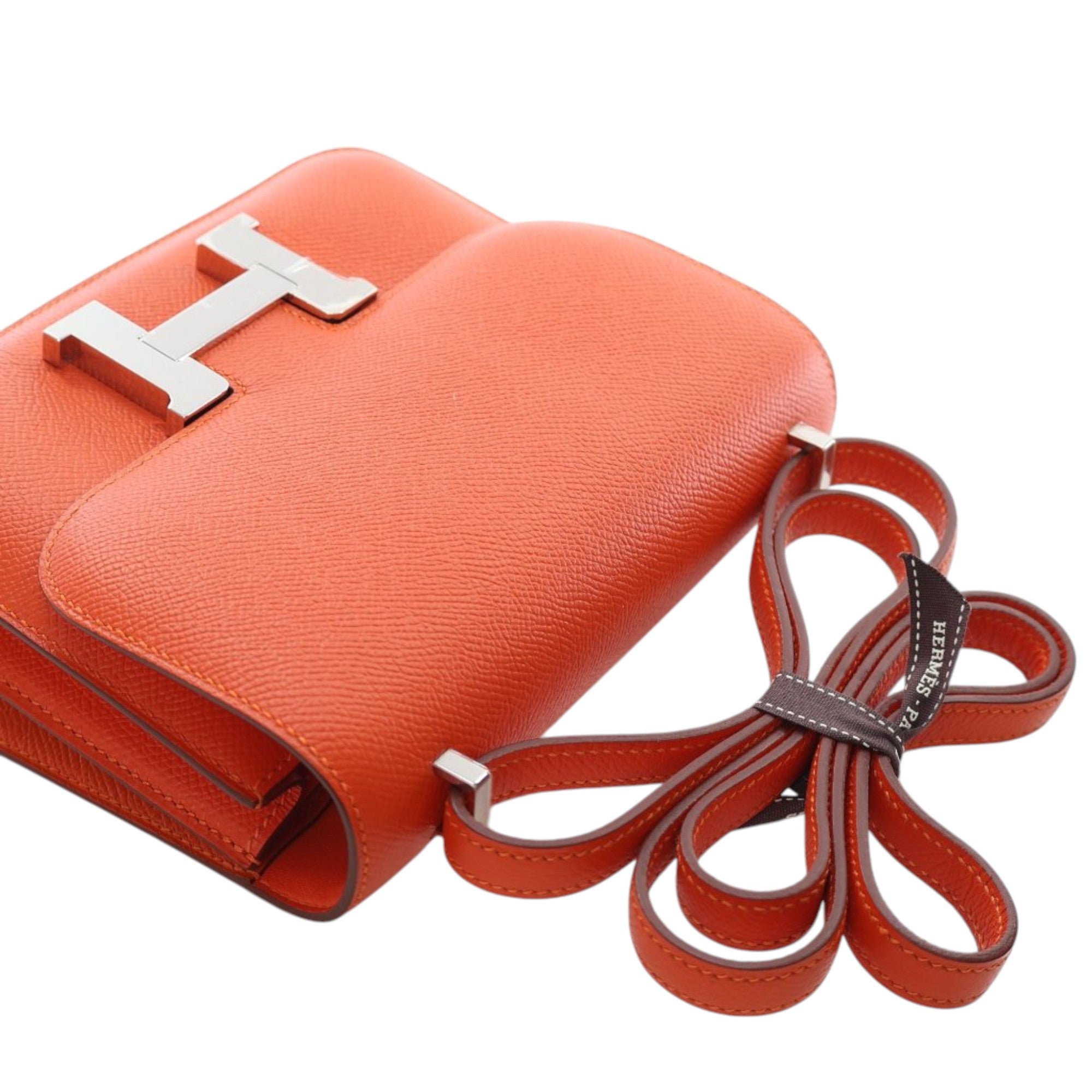 This Mini Constance 18 features an Epsom leather body in Feu color, an adjustable shoulder strap, a clasp closure, and interior slip pockets. Inclusion: Dust bag, box. Retail Price: 13500.00
