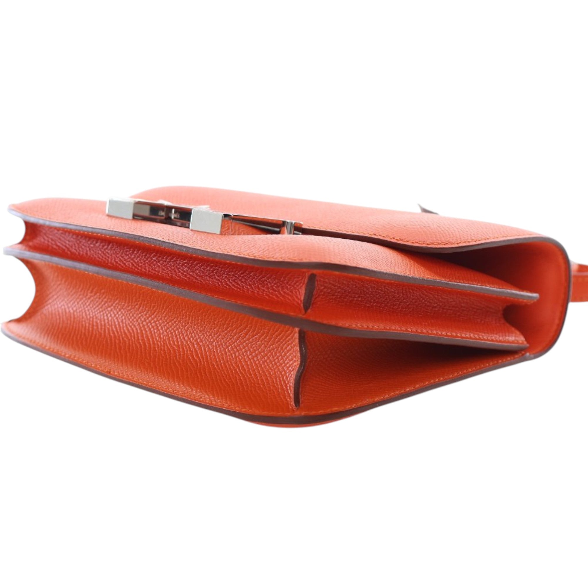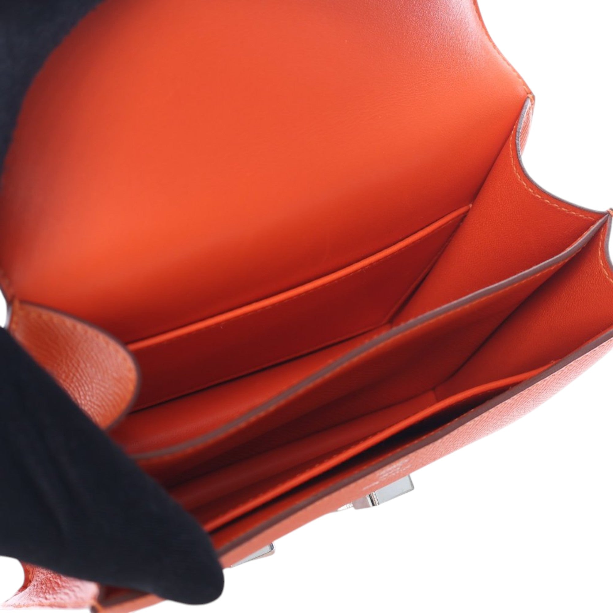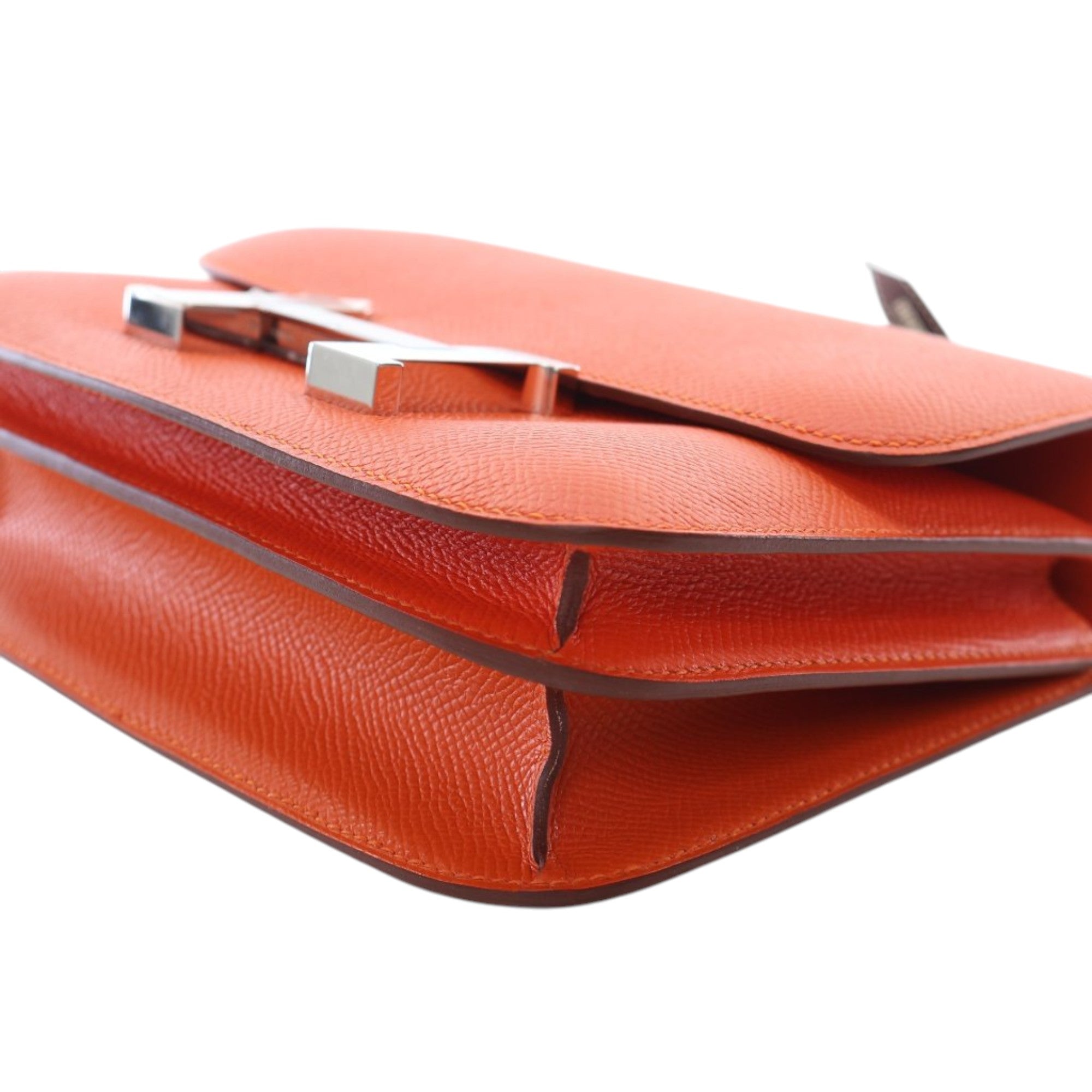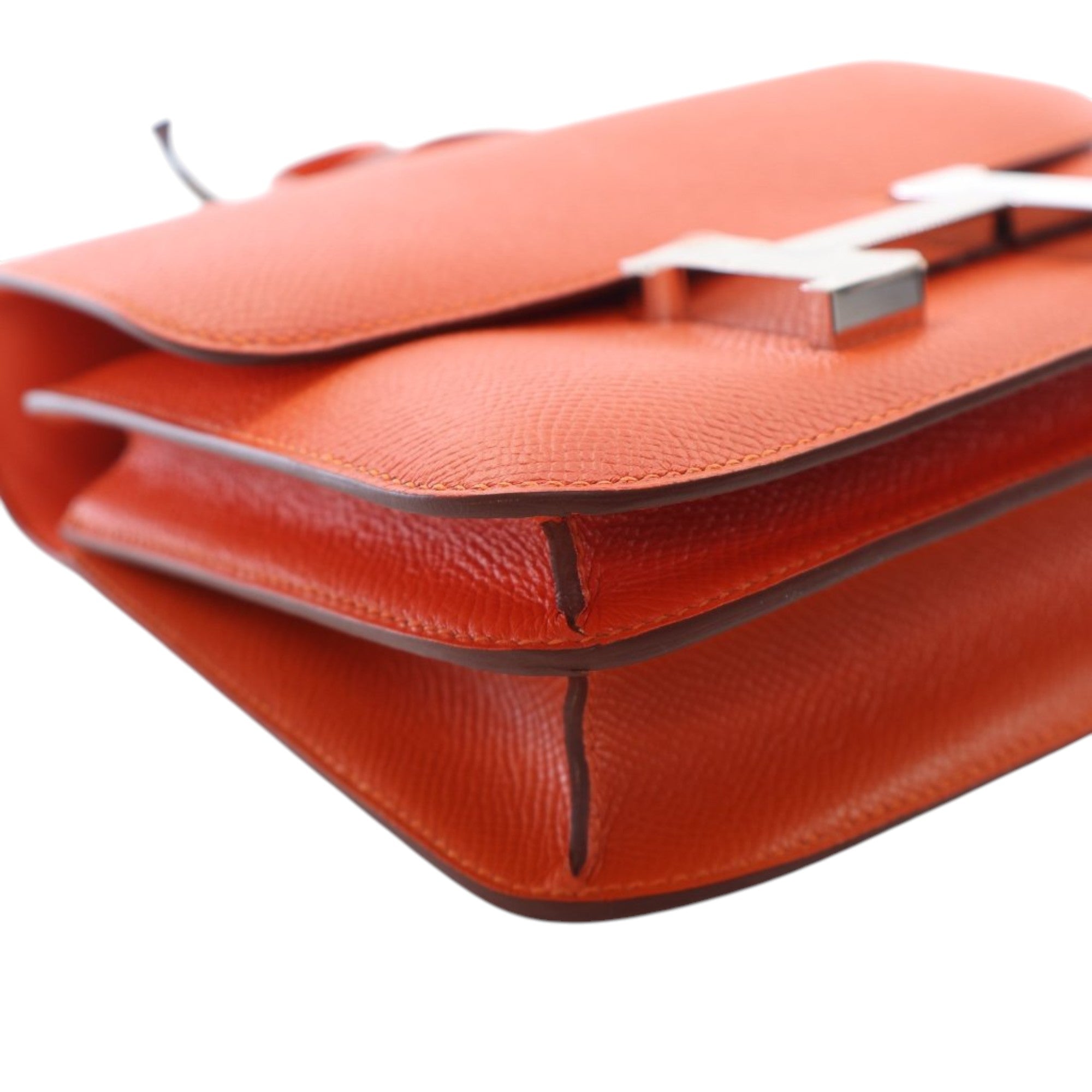 This Mini Constance 18 features an Epsom leather body in Feu color, an adjustable shoulder strap, a clasp closure, and interior slip pockets. Inclusion: Dust bag, box. Retail Price: 13500.00