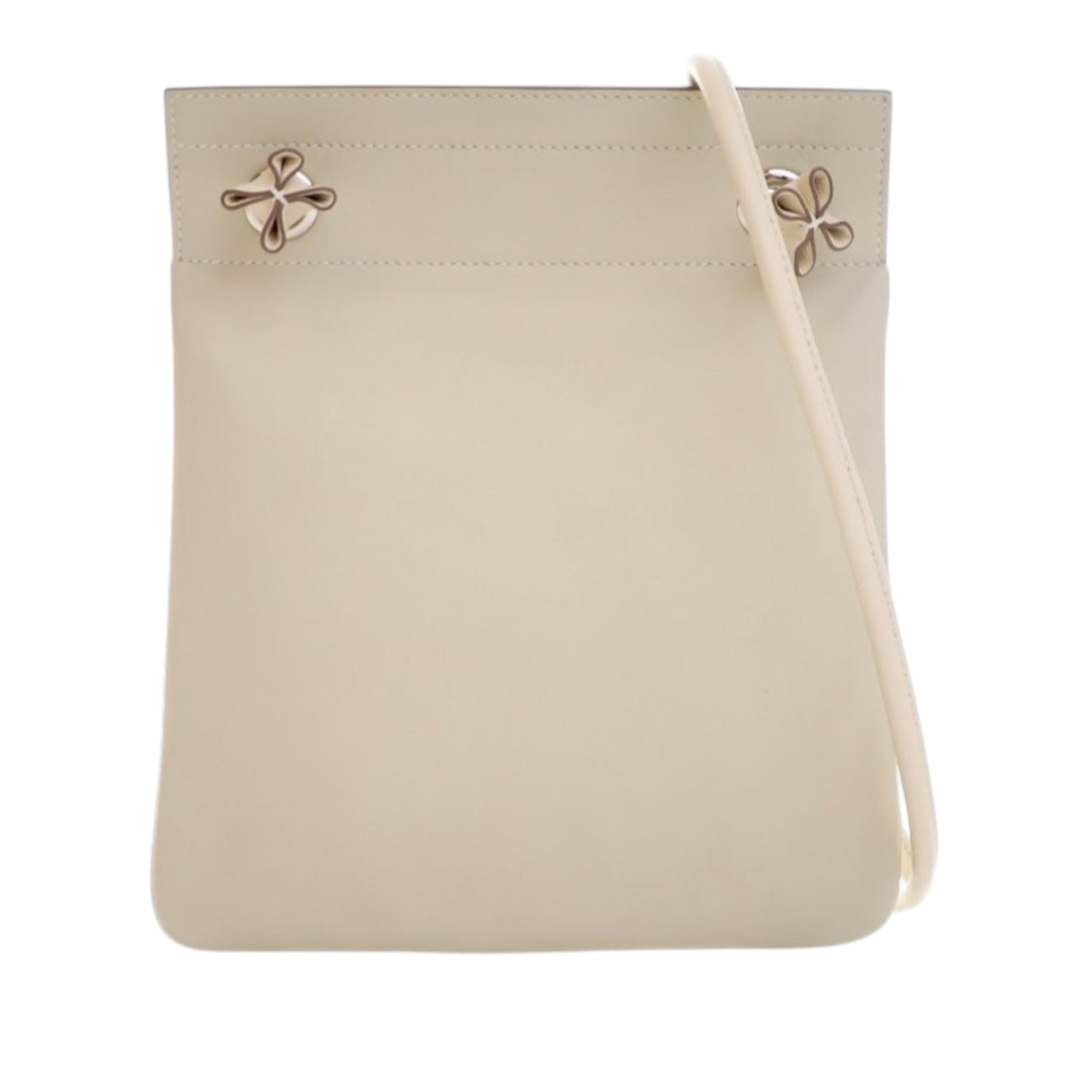 This Aline features a Milo lambskin leather body in Nata color, a rolled strap, and an open top. Retail Price: 1650.00