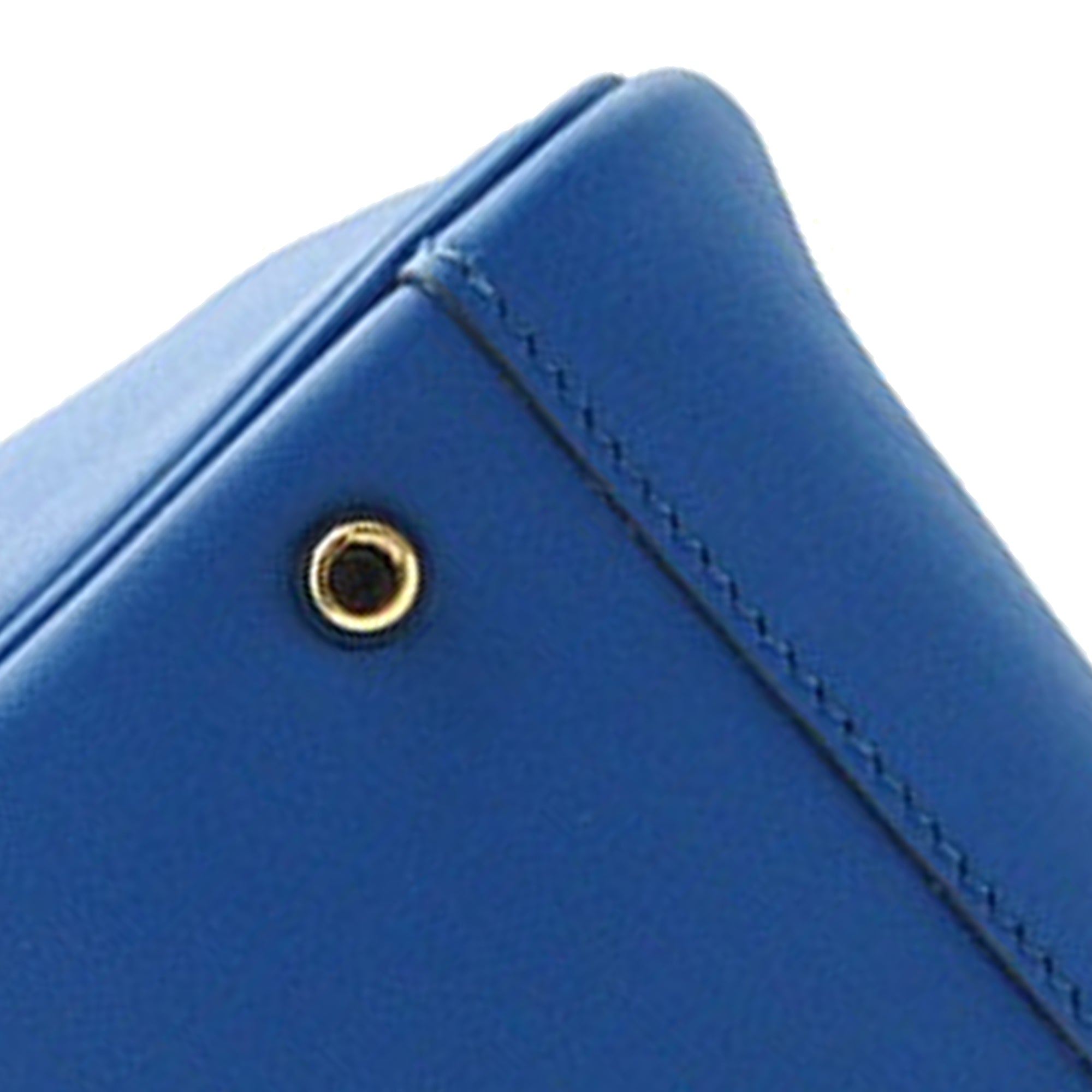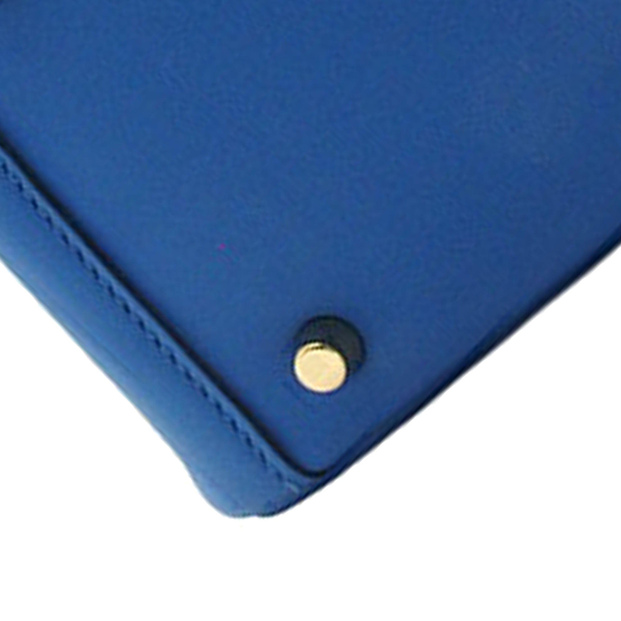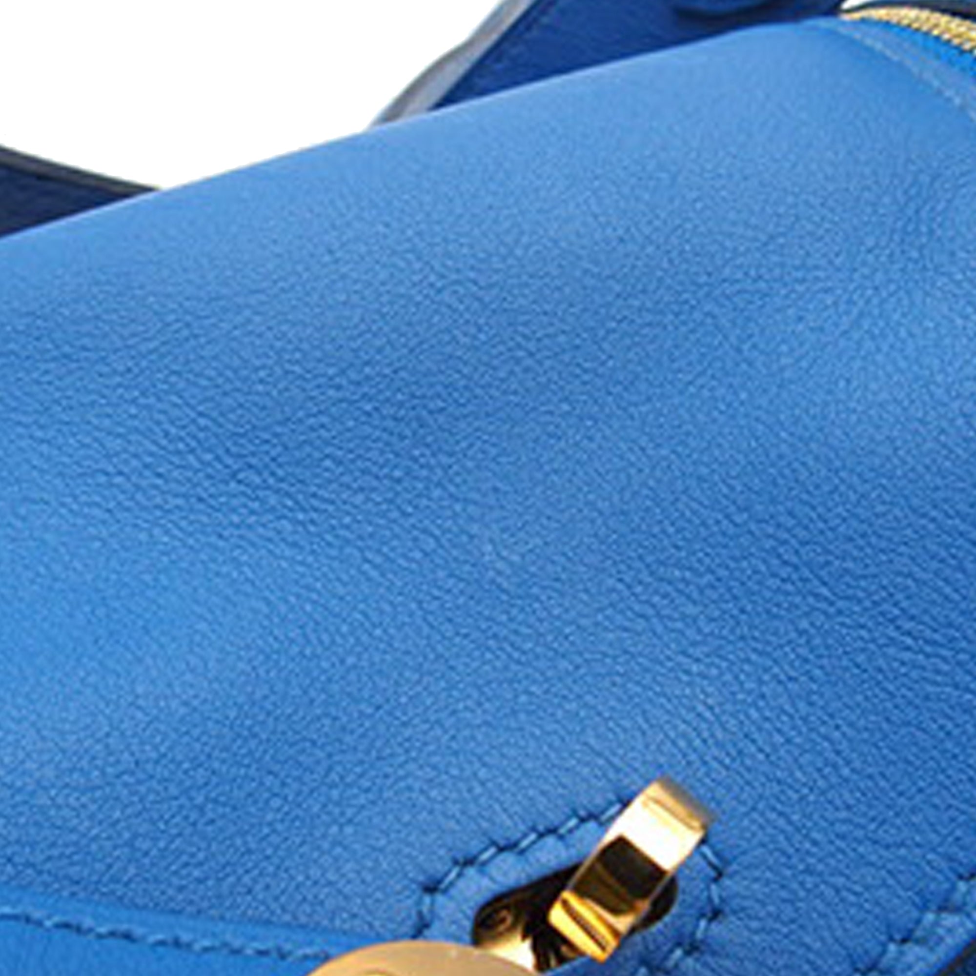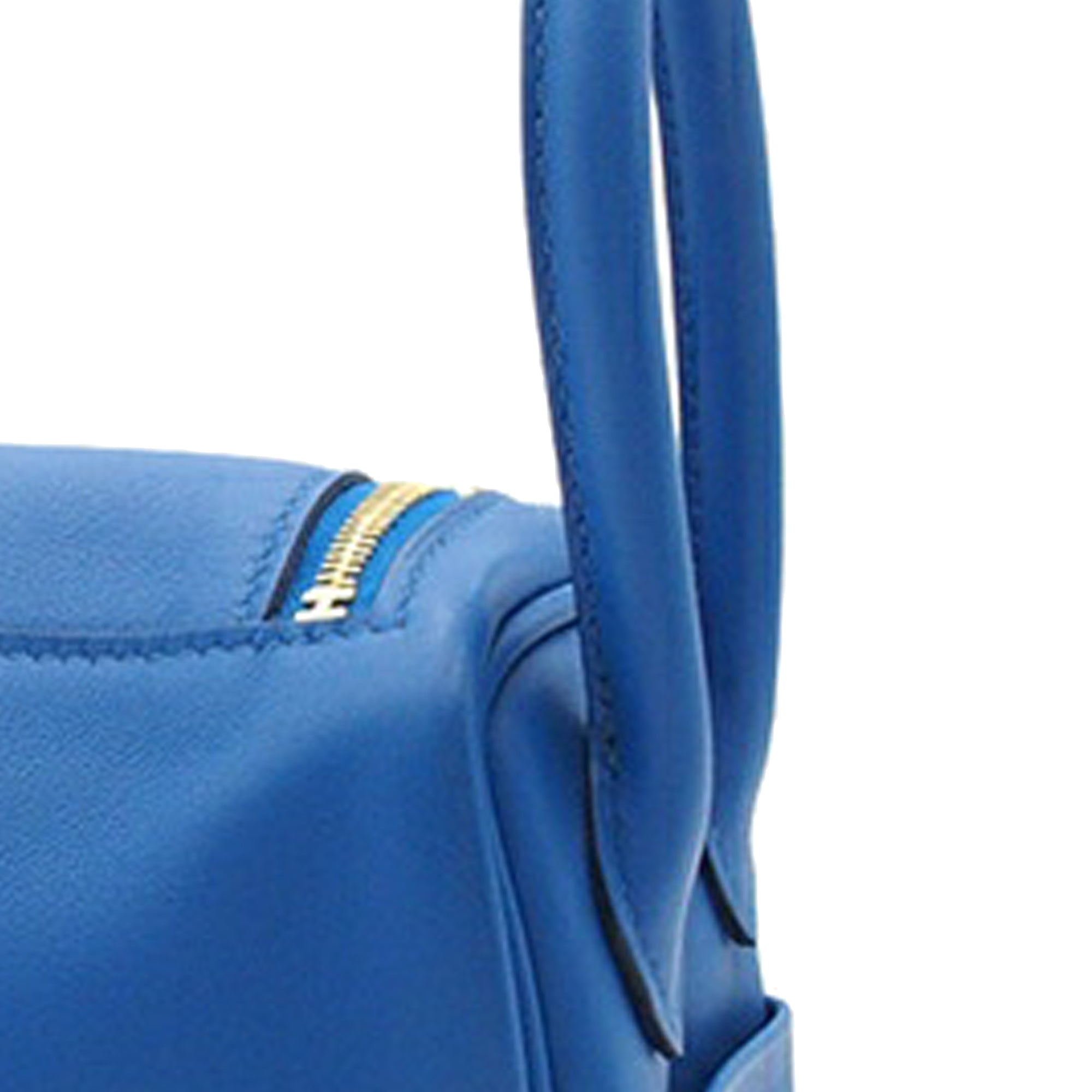 This Mini Lindy features a Swift leather body in Bleu France color, rolled leather handles, a flat leather strap, double-top zip closures with a turn lock closure, and interior slip pockets. Inclusion: Dust bag, box. Retail Price: 14502.00