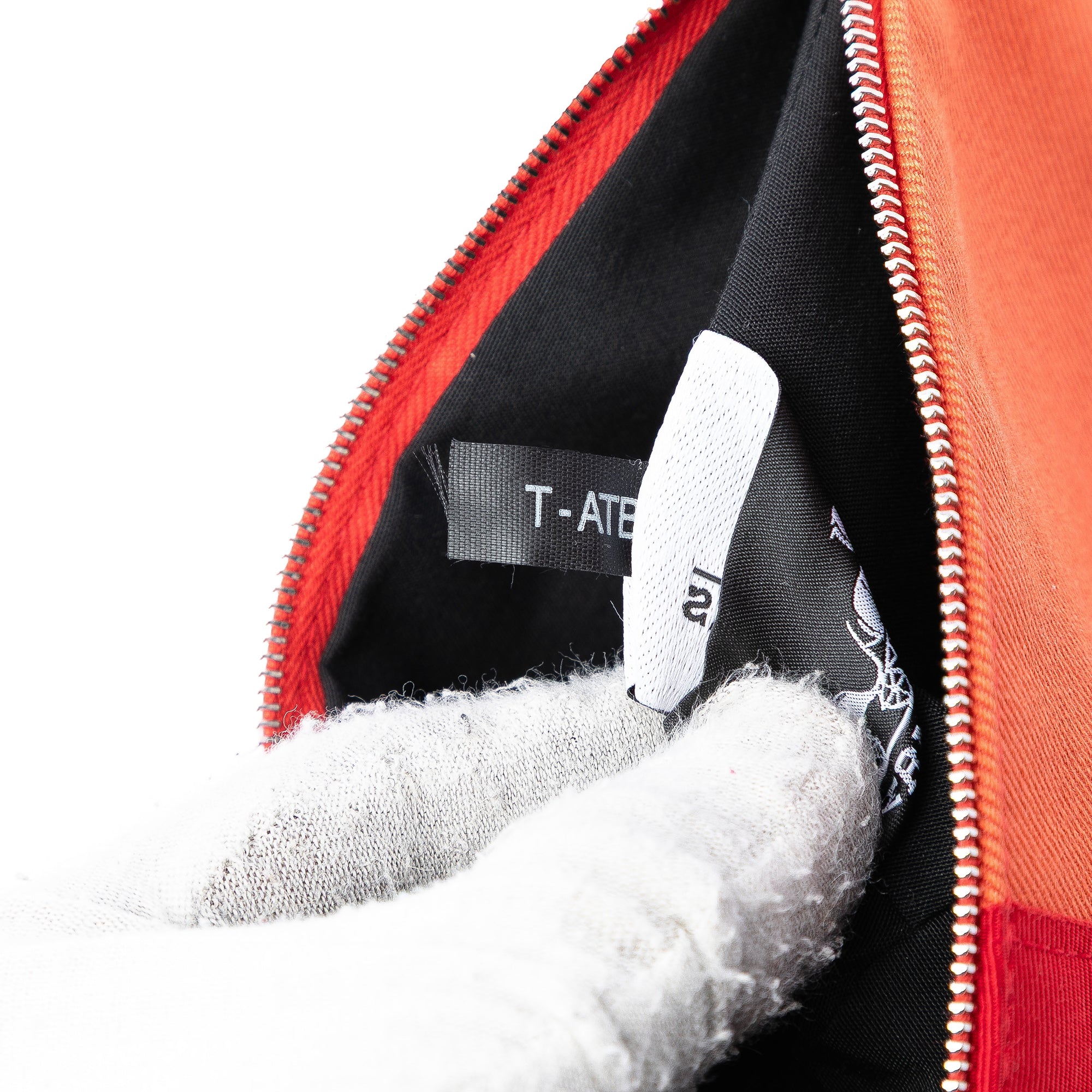 This pouch features a canvas body and a top zip closure. Retail Price: 500.00