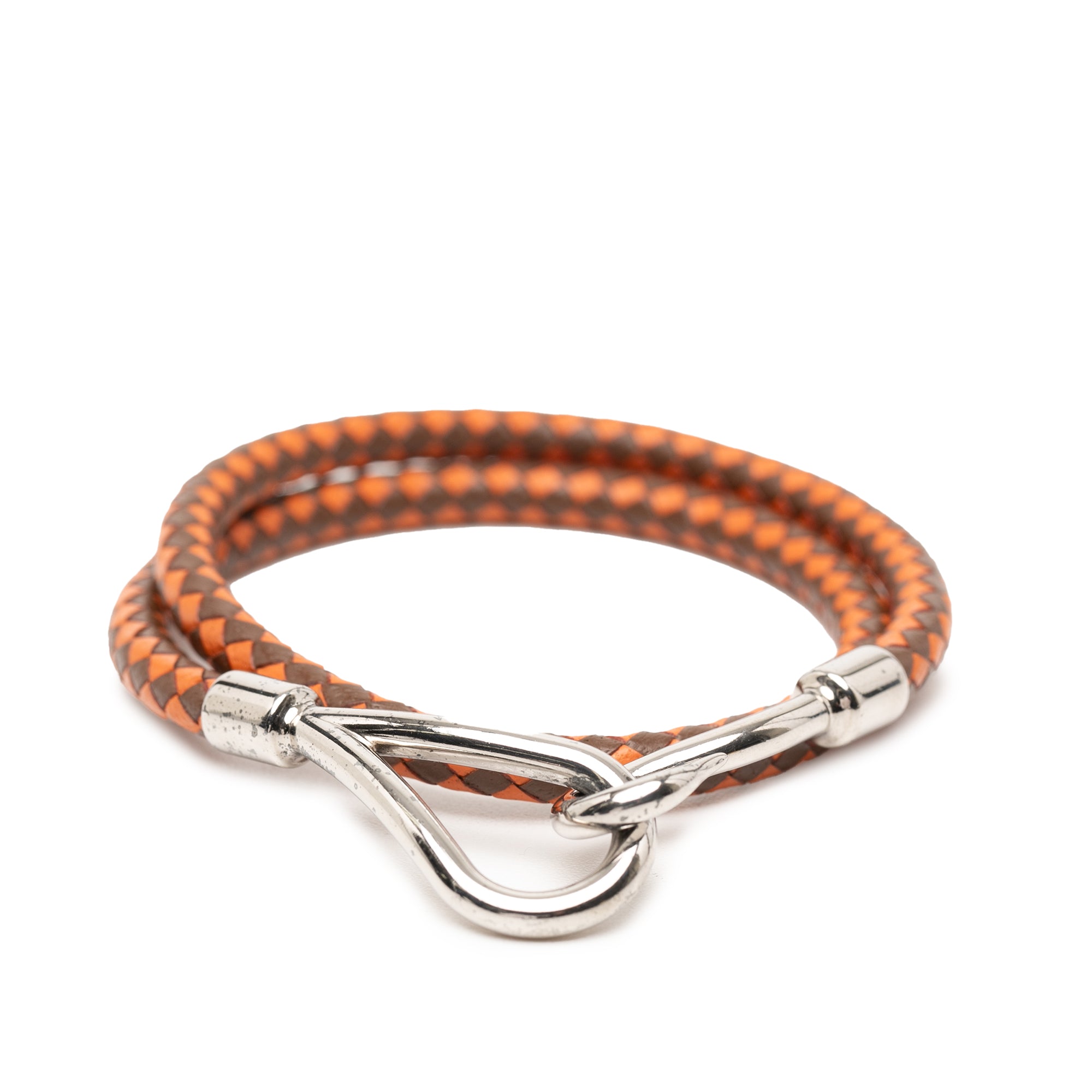 Hermès Palladium Plated and Woven Leather Jumbo Hook Double Tour Bracelet