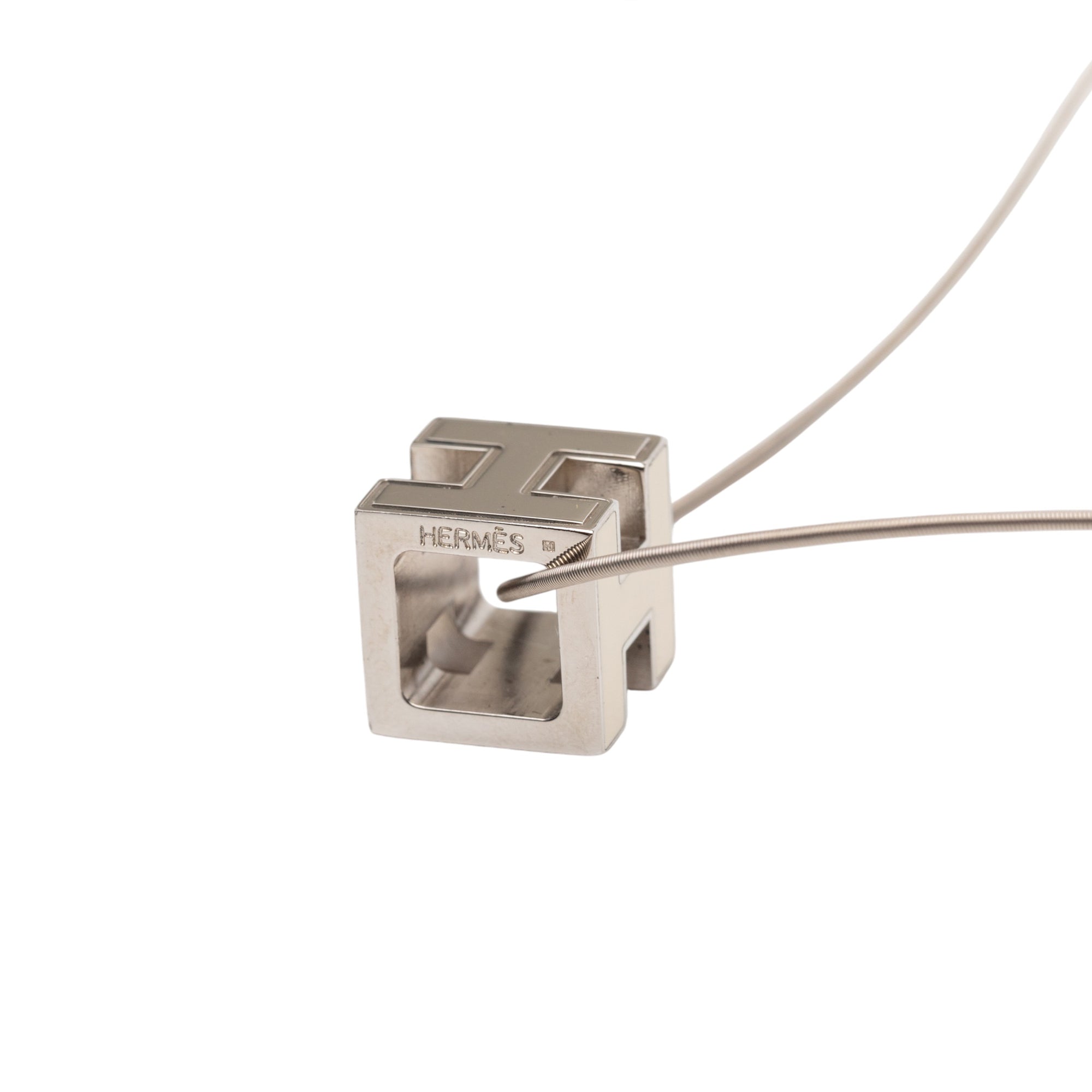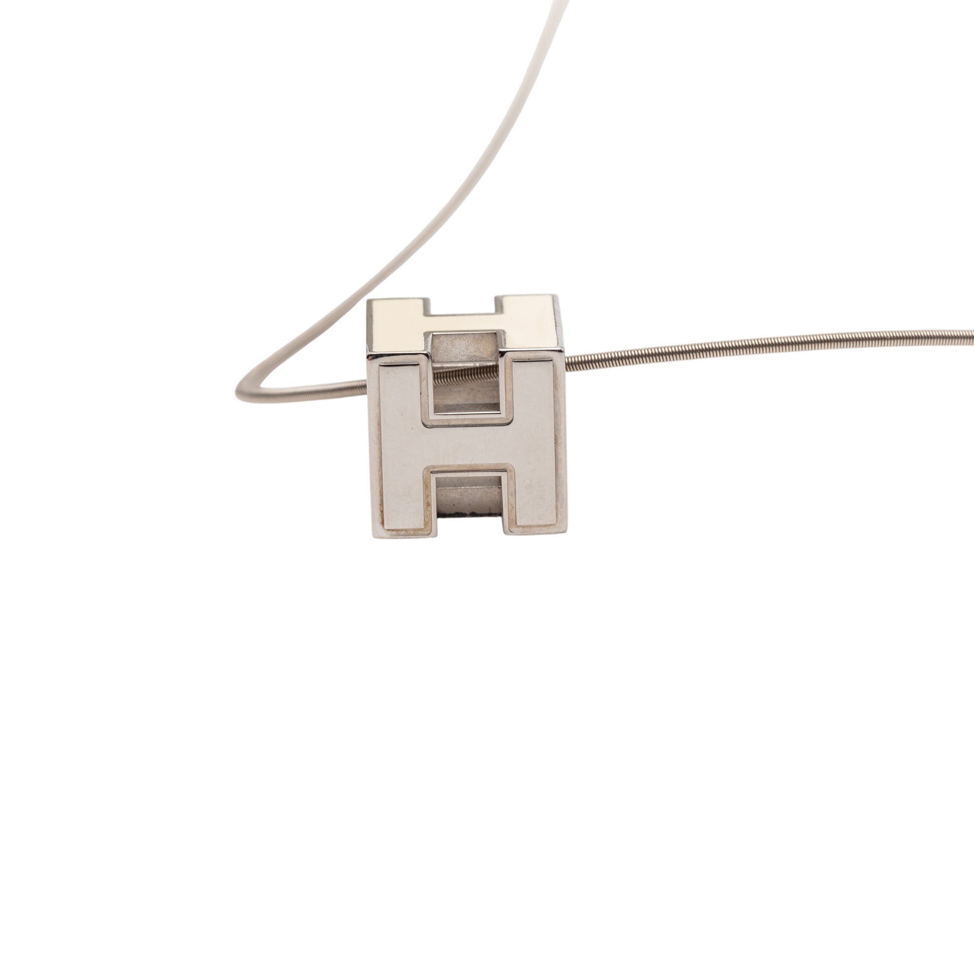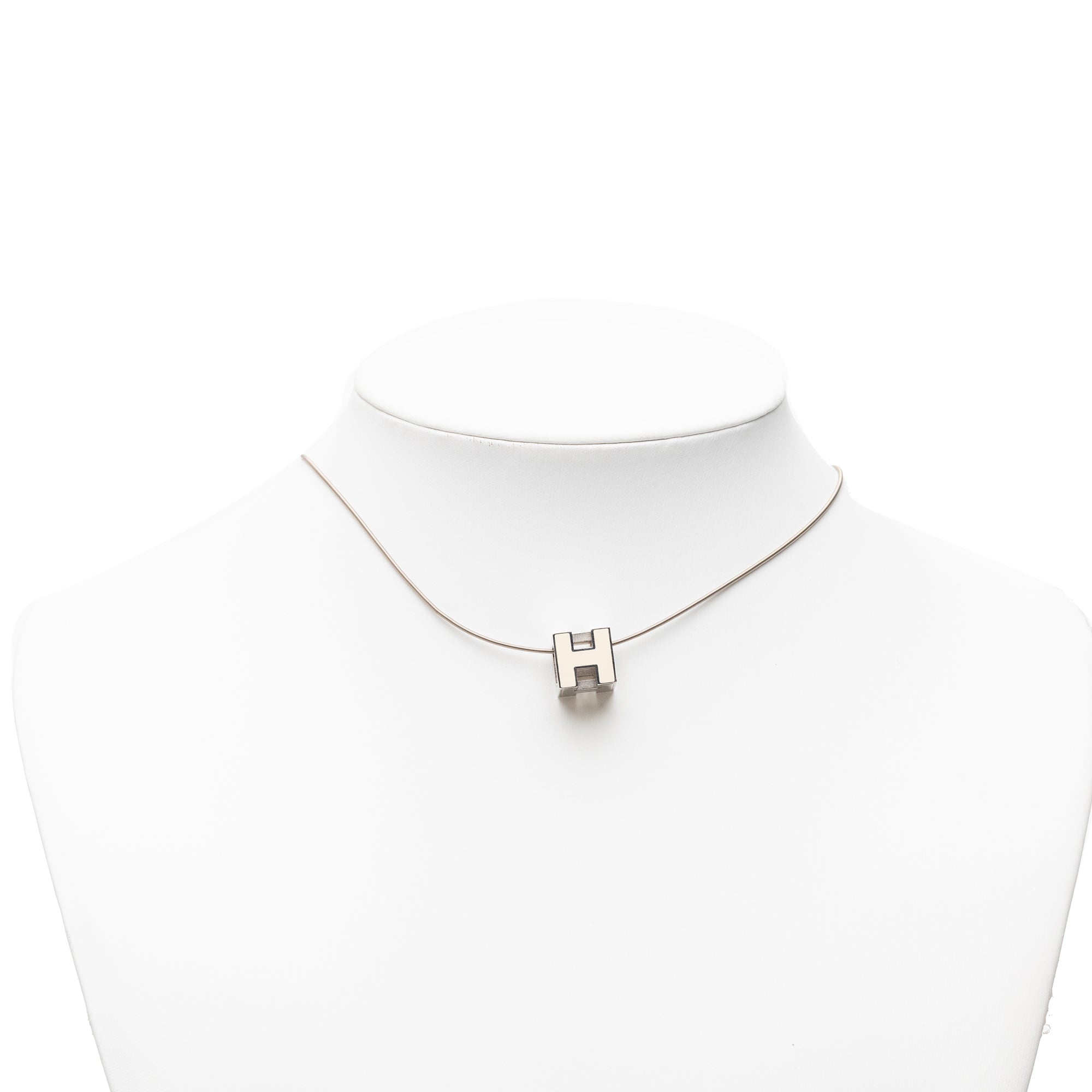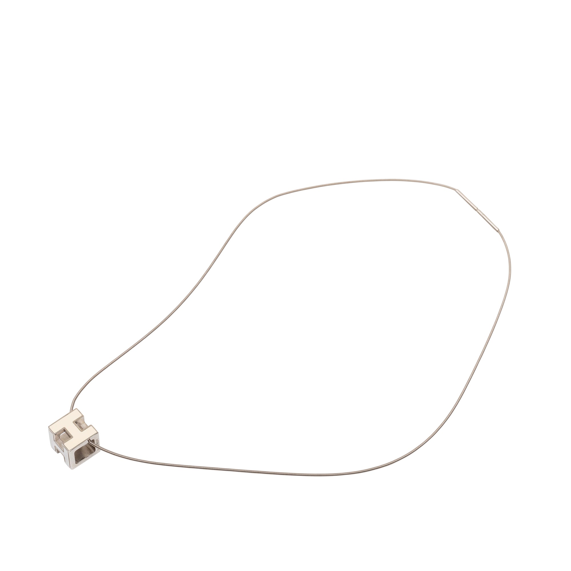 Hermès Palladium Plated Enamel Cage D H Pendant Necklace